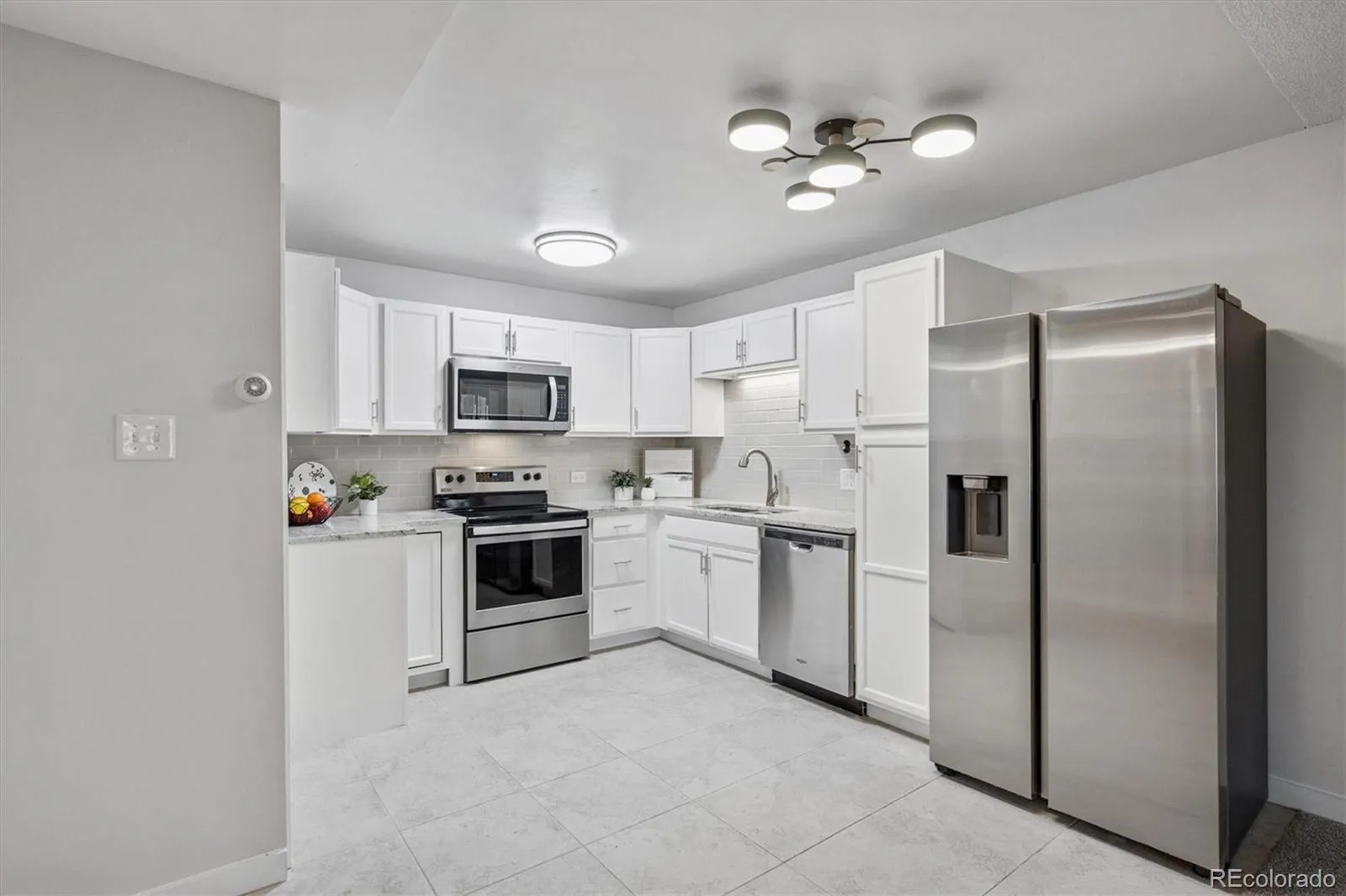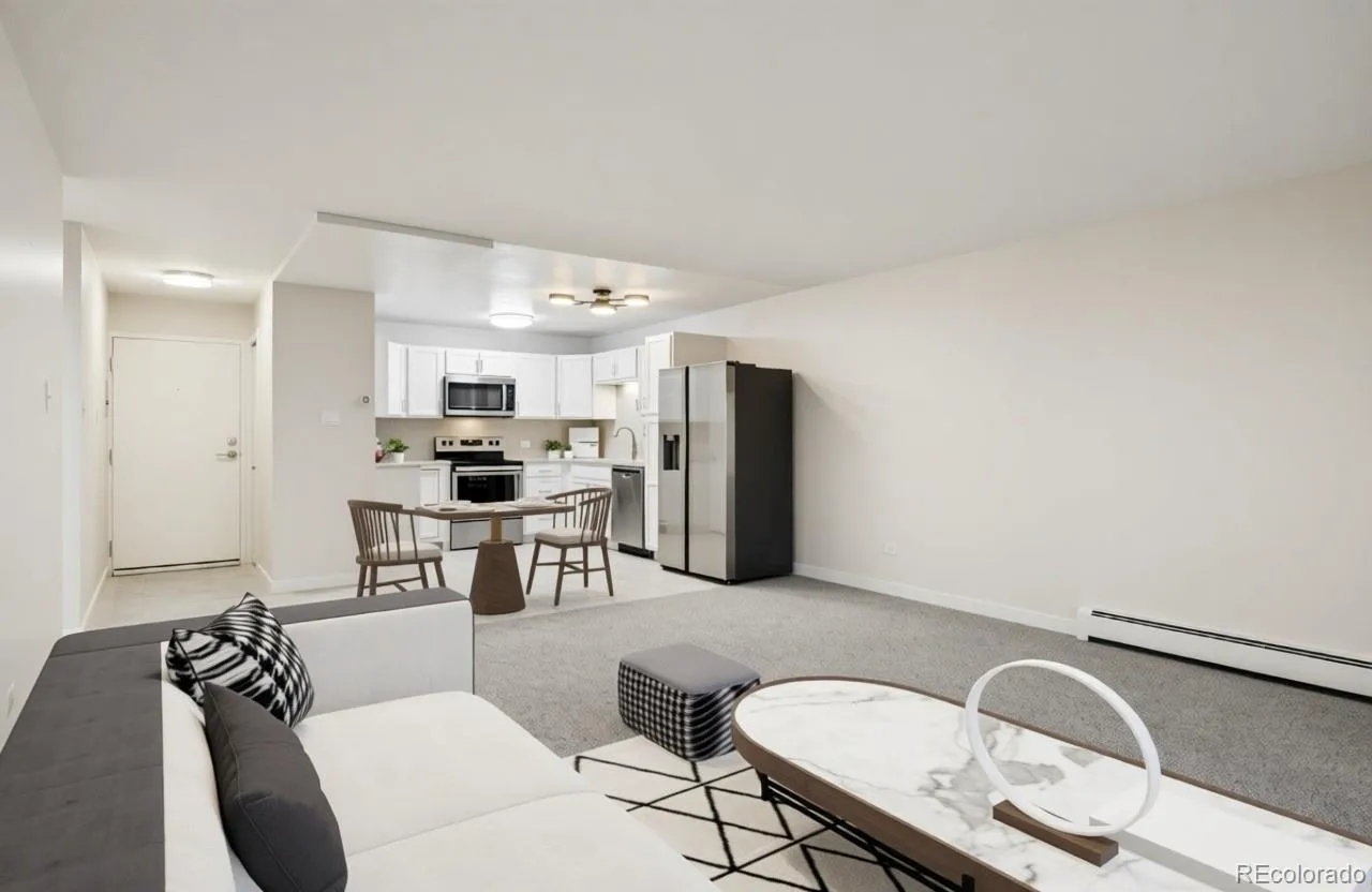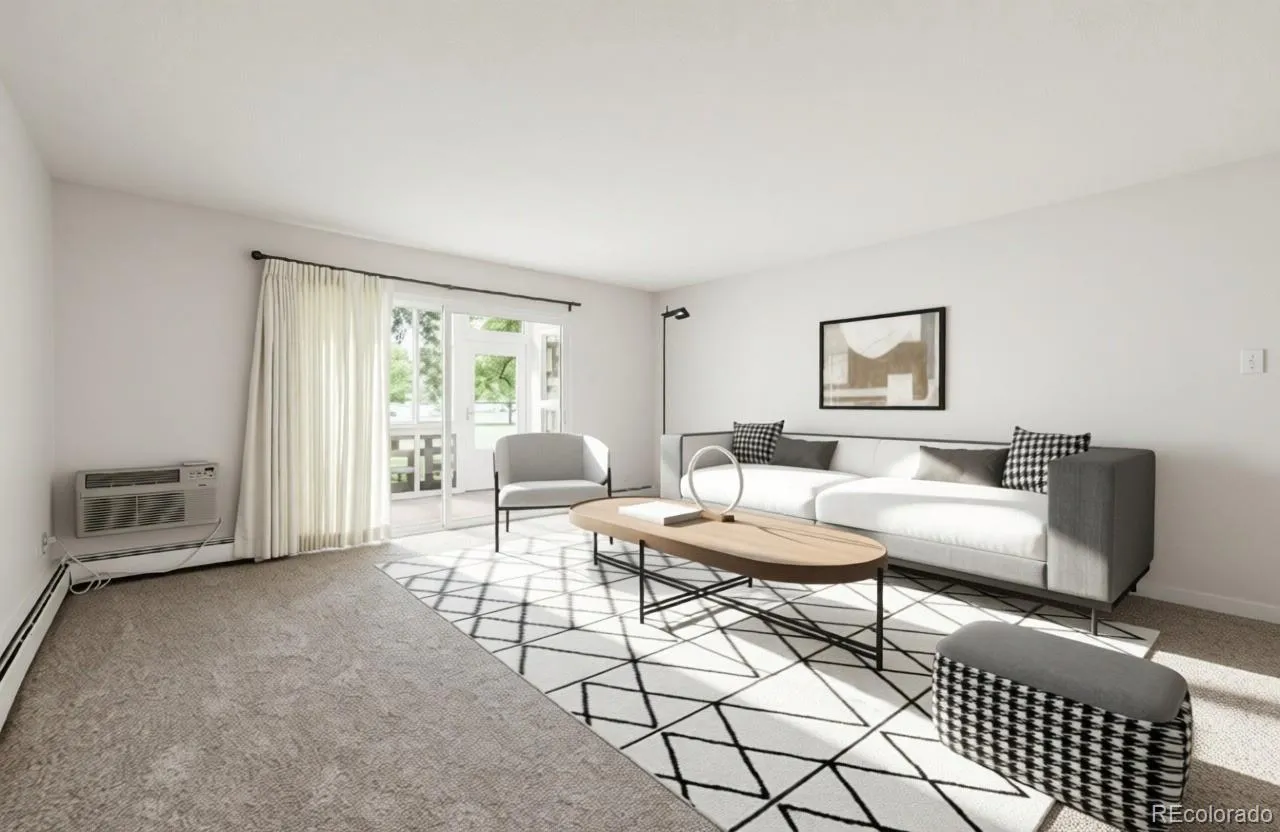 Golf Course Views from 1st Floor Condo! Remodeled and beautiful, this property is 1200 sf, with 2 bedrooms, 2 bathrooms, multi-purpose room, and 1 detached garage included! Kitchen features open floorplan- newer cabinetry freshly painted white, stone slab counters, tile backsplash, stainless appliances, tile floor, and spacious pantry. Bathrooms remodeled with tall white vanities, updated fixtures, lighting, and tile surrounds in both tub and shower. Primary bedroom is oversized with en-suite 3/4 bathroom and oversized walk-in closet. All new carpet and interior nuetral 2 tone paint color scheme. Enjoy the vast golf course scenery from this double pane vinyl enclosed lanai with tile floor. Bonus storage room in building. Additionally there are 2 updated wall ac units- one in living room, the other in primary bedroom. This condo is a must see!**Windsor Gardens is Colorado’s Largest Age 55+ Active Adult Living Condo Community. Did you know? Monthly HOA Dues include annual property taxes! And heat, water, sewer, trash, round-the-clock patrolling community responders, full time onsite association management, grounds/building maintenance, and activities department. Enjoy clubhouse amenities such as fitness center, indoor/outdoor pools, hot tub, sauna, billiards, library, craft rooms for ceramics, sewing, woodworking, and 9 hole par 3 golf course and onsite restaurant both open to the public. Stay engaged with a wide array of activities, clubs, and events scheduled every month. Additional features include garden plot program, private walking trail and nature preserve, and RV/Boat storage. The Highline Canal runs full length along south side of the complex. RTD Bus Stops located thru-out the community. FHA/VA approved. Close to restaurants, stores, shopping…Minutes to Lowry, Hwy 225, Cherry Creek…Easy access to DIA and downtown. Come see for yourself what Windsor Gardens has to offer. ©2021**