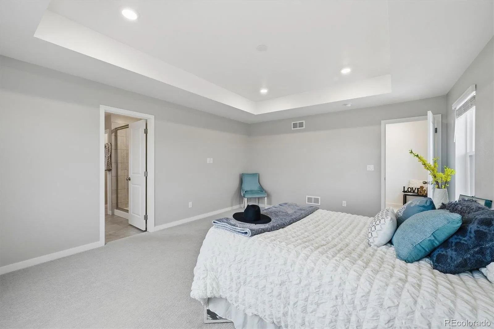 Tucked at the end of a quiet cul-de-sac, this home sits on the best lot in all of Independence. With open space behind plus extra space on each side of the home, it feels private, peaceful, and expansive—like the cul-de-sac is yours alone—with sweeping plains views from nearly every angle. Inside, the home is light, open, and thoughtfully upgraded, blending clean, modern finishes with warm farmhouse-style lighting and design touches. The main level flows beautifully, with a formal office and dining room leading into a huge living room open to the kitchen, ideal for everyday living and entertaining. The kitchen features bright white cabinetry, slab granite countertops, stainless steel appliances, a massive island with seating, and farmhouse-inspired lighting that adds character and charm. Enjoy morning coffee on the covered deck or evenings on the custom brick paver patio surrounded by lush, illuminated landscaping. The walkout basement offers high ceilings and room to grow for future living or recreation space. Upstairs are four spacious bedrooms, including two with walk-in closets, plus convenient upstairs laundry. The primary suite is a true retreat with open-space views, an upgraded walk-in shower, slab granite counters, and a huge walk-in closet with real wood built-ins. Additional highlights include upgraded luxury carpet and pad, LVP flooring, stylish shiplap accents, cordless blinds, Milgard single-hung windows, a whole-home humidifier, and farmhouse-style fixtures. New windows, exterior paint, and a Class 4 roof were completed March 2025. Central A/C, a radon system, upgraded 8-foot garage doors, and a fully insulated and drywalled 3-car garage complete the home. NO HOA fee, plus a community outdoor pool, playgrounds, fitness center, community garden & clubhouse all with quick & easy access to Parker or Elizabeth just 13 minutes away. This is more than a home—it’s space, views, thoughtful design, and a lifestyle that’s hard to find.