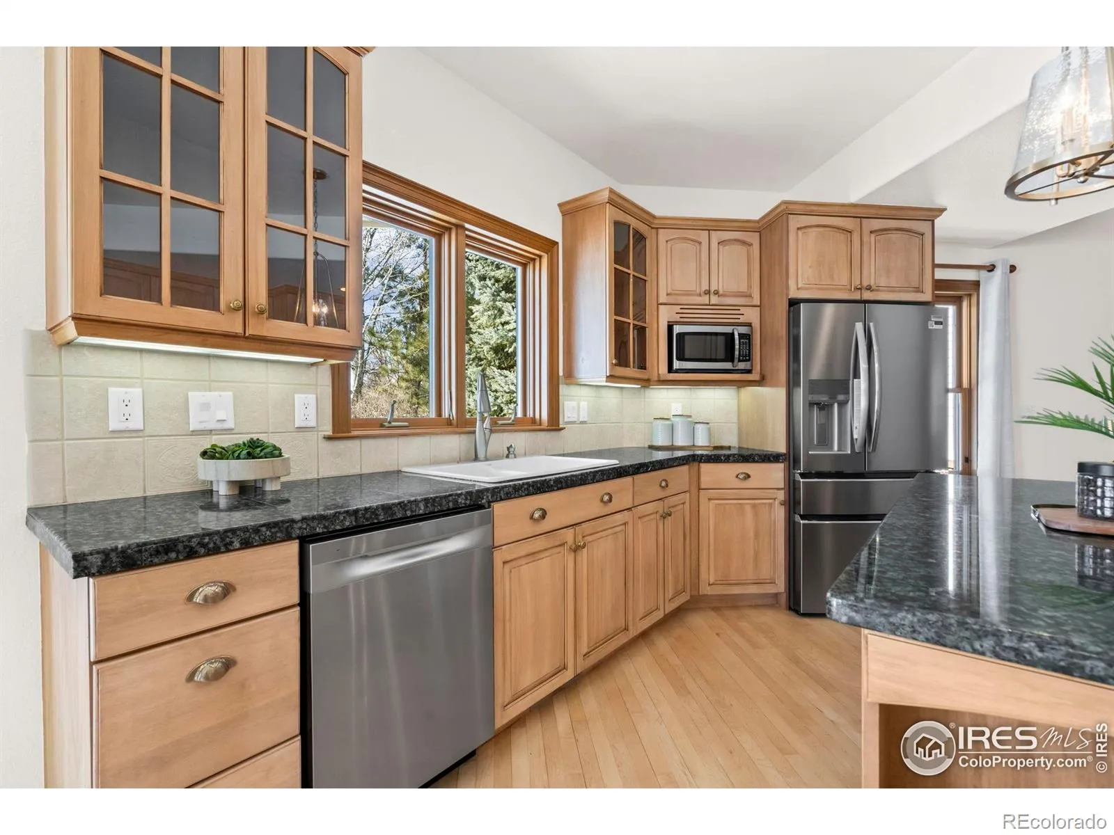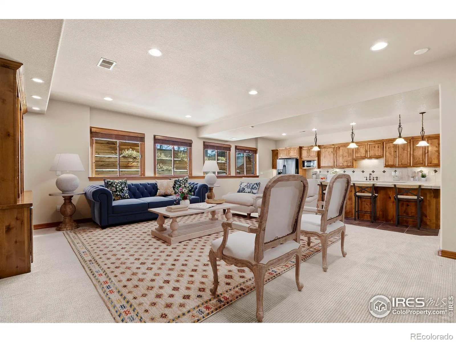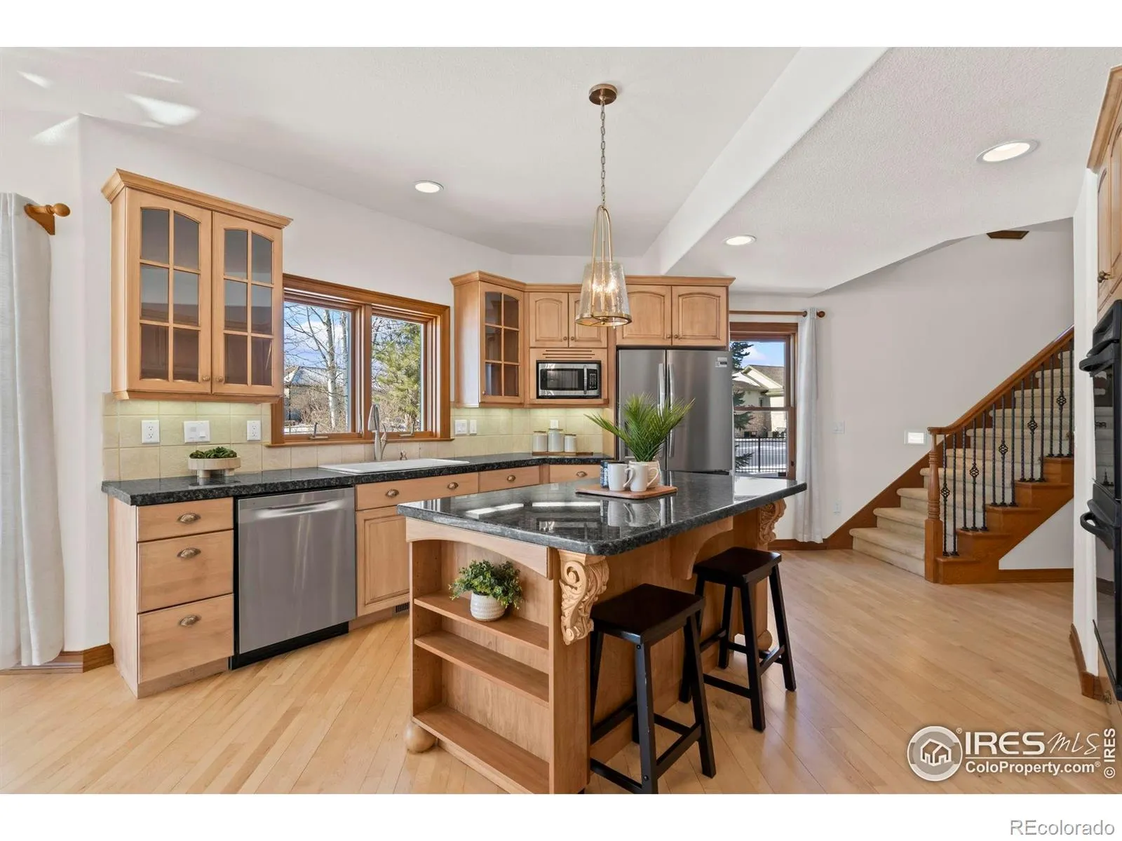 Nestled in prestigious Eagle Ranch Estates, this exquisite two-story home sits on a sprawling .72-acre lot backing to open space, offering stunning mountain views and exceptional privacy. With 6 bedrooms and 5 bathrooms, this thoughtfully designed residence provides elegant living spaces and remarkable flexibility. Step inside the light-filled entry that opens to a grand great room featuring soaring ceilings, a gas fireplace, custom built-ins, and walls of windows that frame the scenic surroundings. The main level includes a private study and a main-floor primary suite with a luxurious bath, creating a serene retreat at the end of the day. The kitchen and dining room showcase newly refinished wood floors, while the adjacent sunroom offers a perfect spot to enjoy morning coffee or relax with a view. Just off the kitchen, a separate staircase leads to a large bedroom and full bath, making this an ideal setup for multi-generational living or guests. Two additional spacious bedrooms share a Jack-and-Jill bathroom, completing the upper level.The finished basement is designed for entertaining, featuring a generous family and recreation room with a large wet bar, plus two additional bedrooms, a full bath, custom built-ins, and a large storage room/workshop with built-in shelving. Outdoor living is equally impressive with a large covered patio, beautifully landscaped fenced yard, and a dedicated dog run-all set against the backdrop of open space and mountain views. This is a rare opportunity to own a slice of luxury in one of the area’s most sought-after neighborhoods.