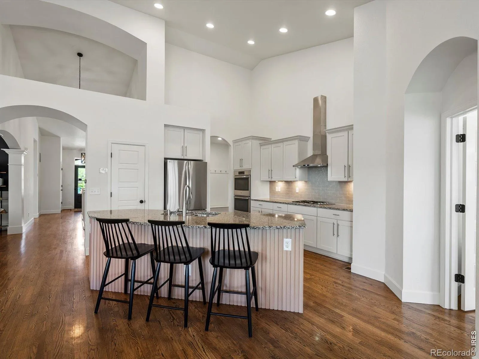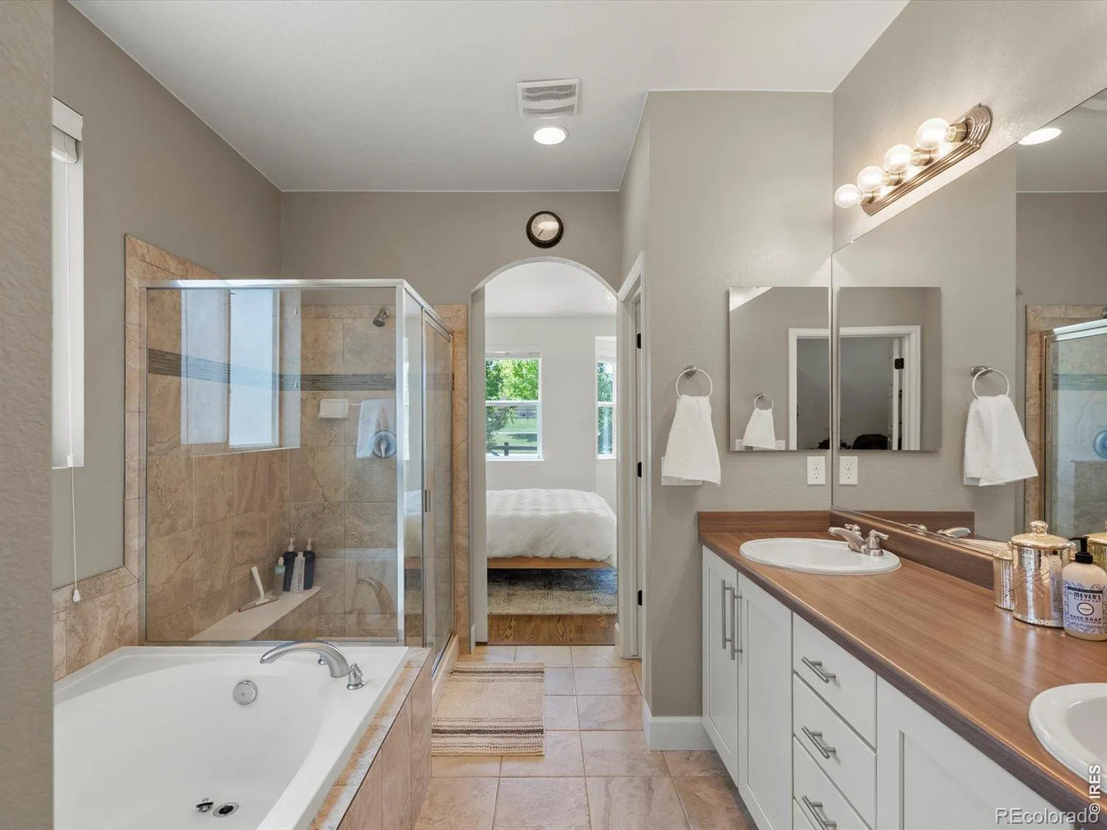 This stunning Boulder County luxury ranch style home offers the perfect combination of location and main floor living layout, plus it does not back to another home for added privacy. Ideally situated just 2 blocks from Red Hawk Elementary and a neighborhood park and the home backs to a neighborhood trail system that connects directly to the Erie Recreation Center, Erie Library, downtown Erie, and local coffee shops, providing both convenience and an active Colorado lifestyle. This property is located in one of the few Erie neighborhoods with no metro district taxes, saving homeowners thousands of dollars each year compared to metro tax district homes, while still giving you a modern interior and layout. Inside, you are welcomed by beautiful real oak hardwood floors, vaulted ceilings, and a bright open concept floor plan with direct sight lines through the main living areas. Designed for effortless main floor living, this spacious ranch features an expansive kitchen, dining, and living area ideal for entertaining, along with a formal dining room complete with butler’s cabinetry and service space. The main floor primary suite includes hardwood floors, vaulted ceilings, a five piece bath, and a walk in closet. Also on the main level are a secondary bedroom, a full bathroom, and a convenient laundry room with countertop workspace. The fully finished basement significantly expands the living space with ample room for a media area, pool table, playroom, home gym, or recreation space, along with two additional bedrooms, each with its own private en suite bathroom, making it ideal for guests or multi generational living. Step outside to the covered patio and enjoy snow capped back range mountain views and phenomenal sunsets! Recent updates include a new roof installed in 2023 and a new AC condenser installed in 2024. This meticulously maintained Erie ranch home combines privacy, stylish finishes, thoughtful upgrades, and an unbeatable Boulder County value and location.