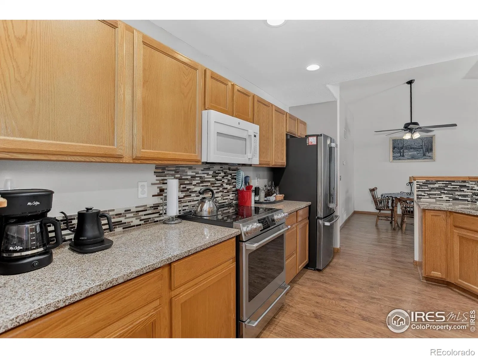 This well-cared-for & beautifully updated 1/2 duplex is ideal for someone who wants comfort, quality, and a truly low-maintenance lifestyle. Located on a corner lot in west Loveland, just blocks from Mariana Butte Golf Course and Boedecker Lake, this home offers single-level accessible living with thoughtful updates already done. Inside you’ll find hardwood floors, an updated kitchen with granite counters and higher-end appliances, refreshed bathrooms, and a dedicated office space. The finished two-car garage includes ample storage, and both the covered front and back porches extend your living space outdoors. The major systems have been recently updated, including a Class 4 roof and a newer furnace, and the HOA handles irrigation, sprinkler & lawn maintenance along with leaf and snow removal. Whether you travel often or simply want your weekends back, this home offers an easy lifestyle in a location that holds long-term value.