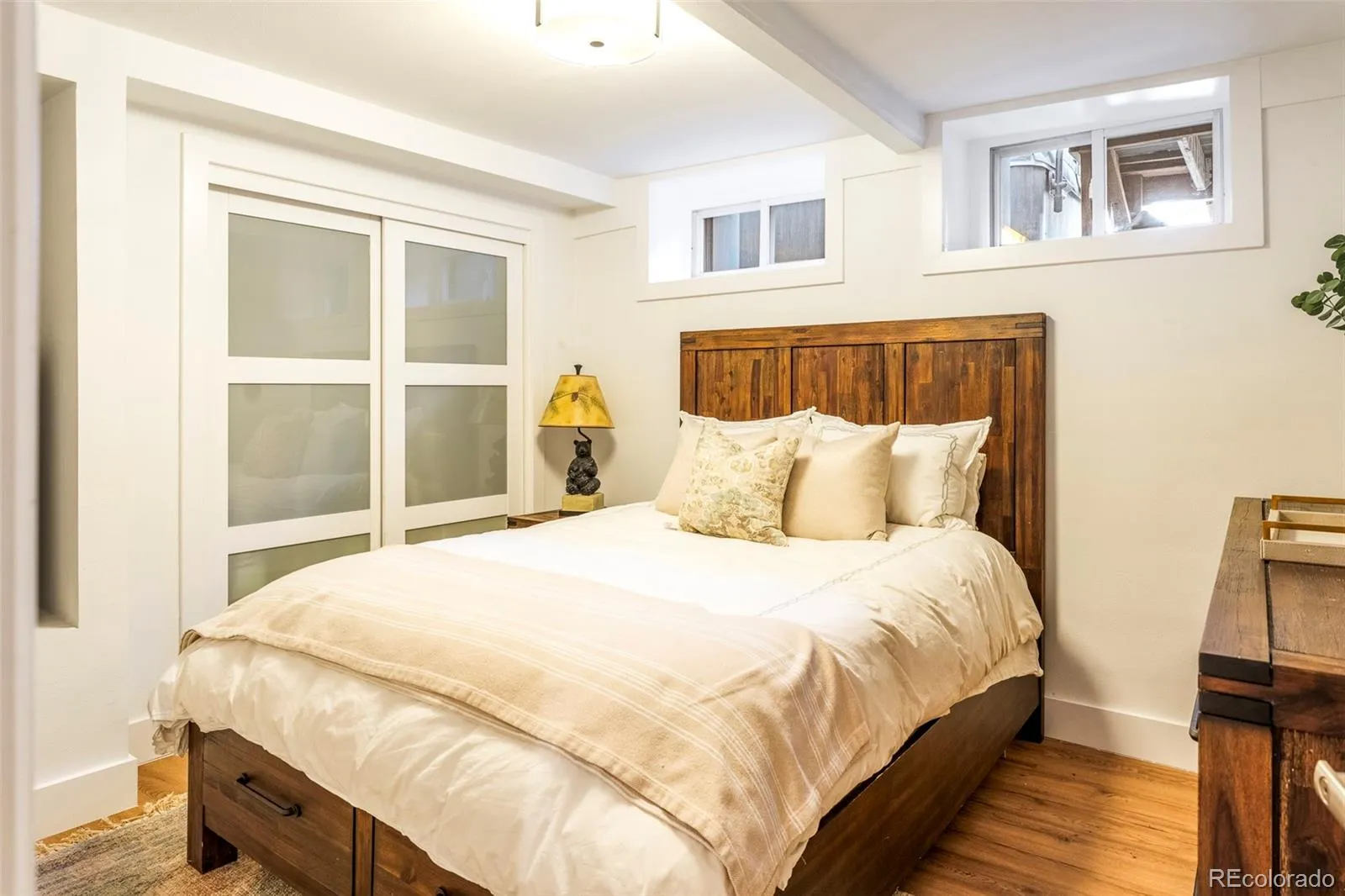 Classic charm meets city sophistication in this thoughtfully updated LoHi bungalow. A cozy entryway nook sets the tone, drawing residents into a striking living space anchored by a dramatic floor-to-ceiling marble fireplace. Hardwood floors flow seamlessly through the open-concept layout, illuminated by recessed lighting and enhanced by tall ceilings that amplify the home’s airy feel. The kitchen impresses with stainless steel appliances, a classic tile backsplash and rich cabinetry. Two spacious main-floor bedrooms present the potential for one to be used as a home office or walk-in closet. A beautifully updated full bath is adorned with designer details. The lower level hosts a third bedroom, a ¾ bath with a walk-in shower and flexible living space ideal for guests or relaxation. Outdoors, a fenced backyard oasis awaits, designed for entertaining with a private patio and raised garden beds. Residents enjoy a coveted location just moments from LoHi’s vibrant dining, shops and nightlife.