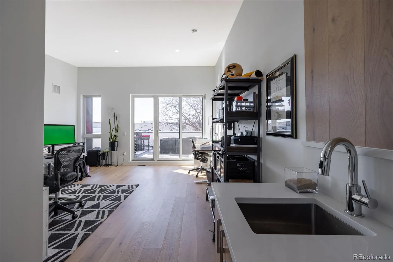 This beautifully designed 3-bedroom, 4-bath townhome, built in 2024, offers modern luxury living in one of Denver’s most sought-after neighborhoods—just steps from Sloan’s Lake Park. Thoughtfully crafted with elevated finishes and warm, contemporary design, this home blends style with an unbeatable location. The open-concept main living areas feature white oak engineered hardwood flooring. The kitchen is both functional and striking, showcasing natural stone countertops, upgraded GE appliance package, and premium Delta kitchen and bath fixtures. Designer tile work, curated West Elm and Crate & Barrel light fixtures and mirrors, and modern earthy wood tones add a refined, cohesive aesthetic throughout. One of the home’s most impressive highlights is the west-facing rooftop terrace, offering sweeping views of the Rocky Mountains and Sloan’s Lake—an ideal setting for sunset entertaining, morning coffee, or quiet evenings under the Colorado sky. Large windows throughout the home flood the interiors with natural light, further enhancing the thoughtful design. The primary suite serves as a calm retreat with spa-inspired ensuite primary bathroom with modern finishes and generous sized primary closet with custom built-in shelving. Each bedroom is well-appointed with its own bathroom, providing privacy and flexibility for guests, roommates, or work-from-home needs. Additional features include quartz and stone surfaces in kitchens and baths, a 2-car garage with a 220-volt circuit, fully-lined crawlspace & professionally landscaped surroundings for added curb appeal. Location truly sets this home apart. Enjoy a short walk to neighborhood favorites including Side Pony, Alamo Drafthouse Cinema, Stoney’s Sloan’s Lake, Odell Brewing Co., and The Patio at Sloan’s, along with walking and biking trails, and vibrant lakefront living. This townhome delivers contemporary city living at its finest—combining premium finishes, thoughtful upgrades, and an exceptional Sloan’s Lake lifestyle.