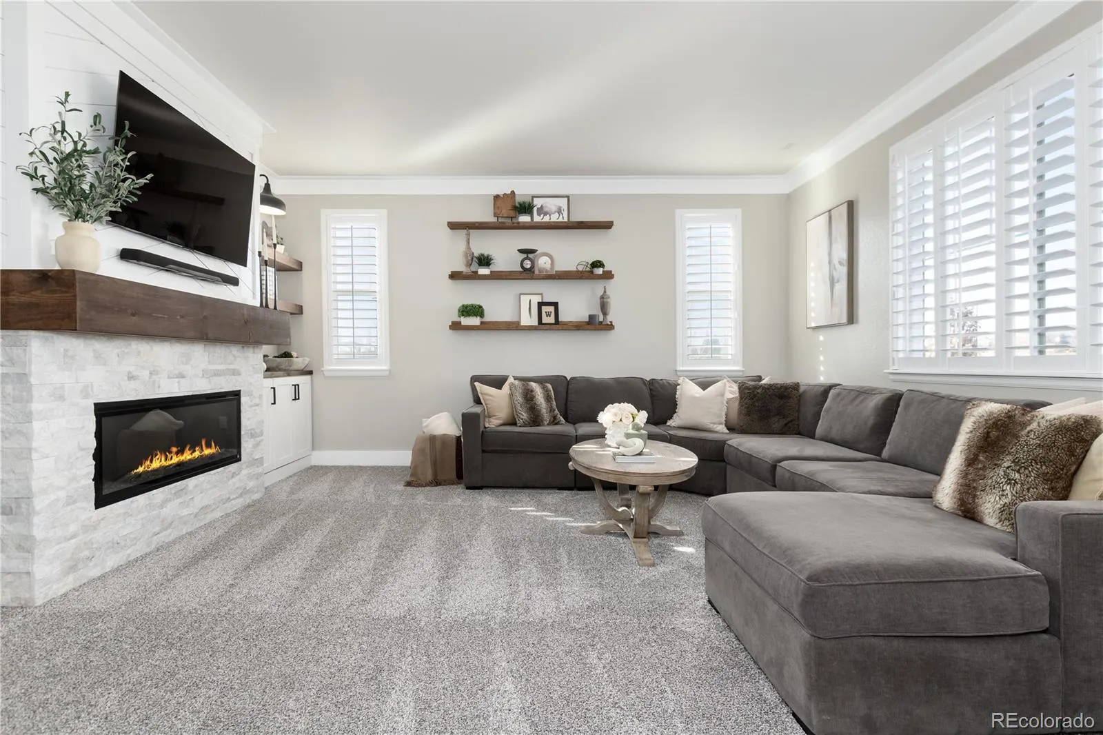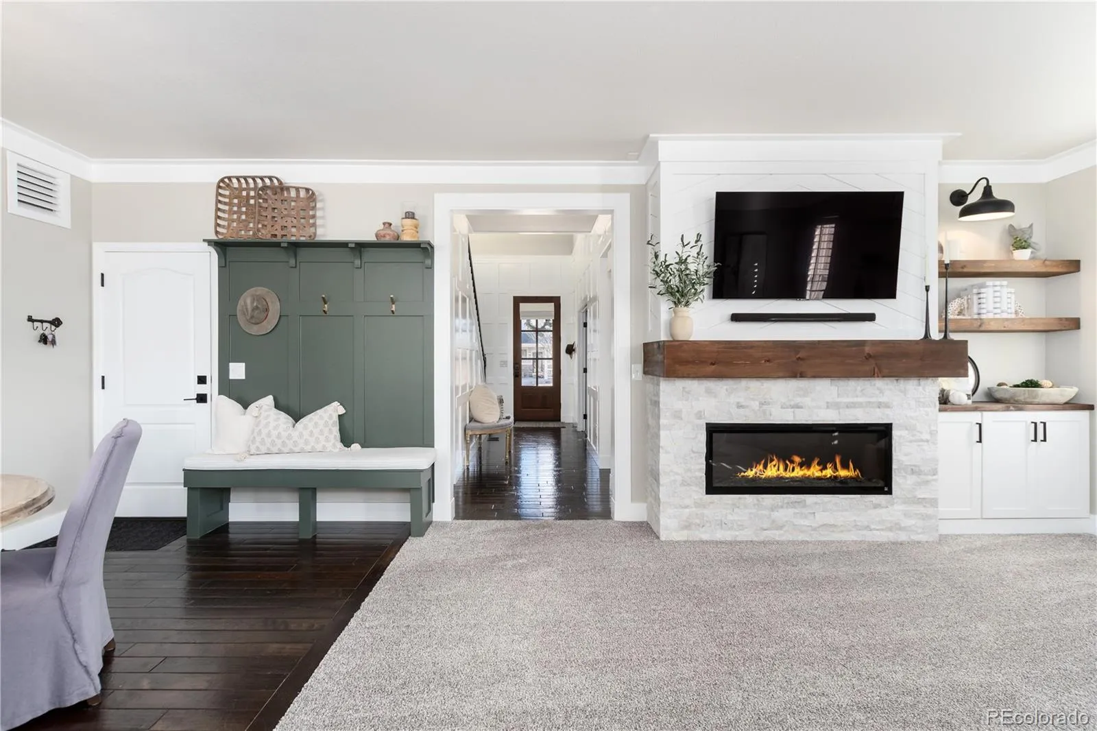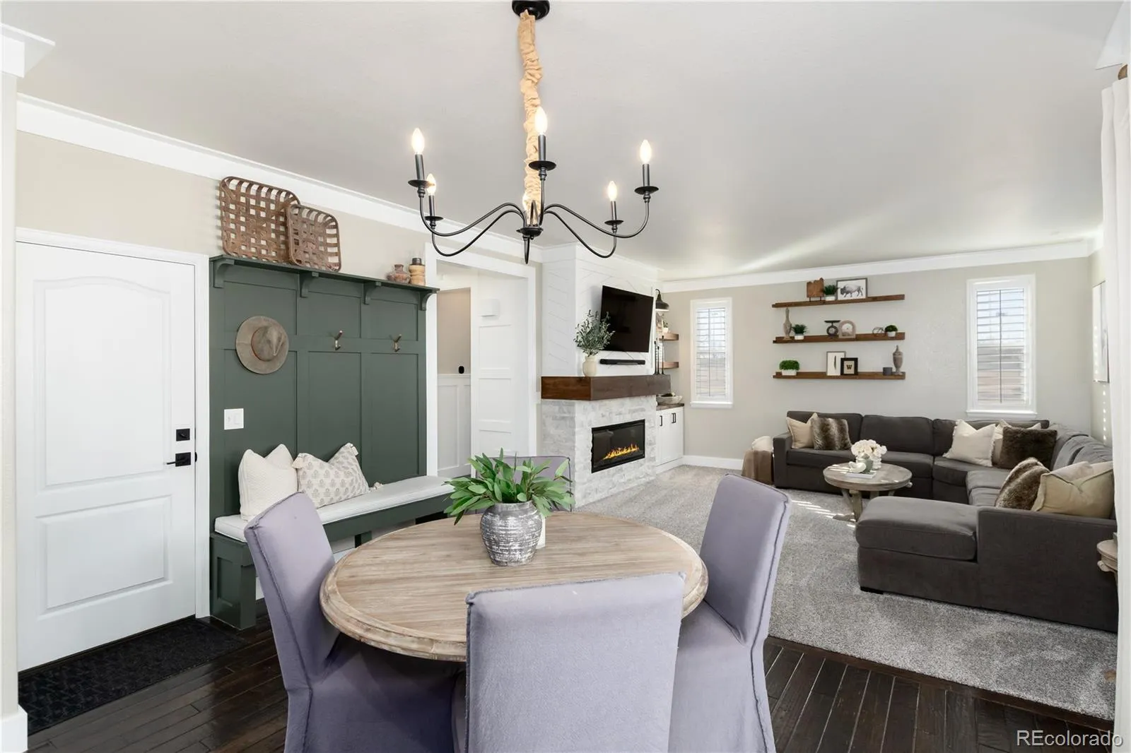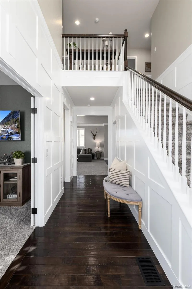 Beautifully remodeled 4-bedroom, 3-bath home in sought-after Erie Commons, offering stunning mountain views and exceptional updates throughout.The main level features a dedicated office, a spacious family room with a cozy fireplace, and a beautifully remodeled kitchen showcasing quartzite countertops, new cabinetry, updated appliances, stylish backsplash, and modern lighting. The kitchen flows seamlessly to the back patio, creating the perfect indoor-outdoor connection for entertaining or relaxing while enjoying the scenic views.Upstairs, you’ll find four bedrooms, including a generous primary suite with an en-suite bathroom updated with contemporary finishes. Additional recent upgrades include new light fixtures, baseboards, shutters, interior paint, and new carpet throughout. A finished basement adds a large recreation room—ideal for entertaining, a play space, or home gym. Exterior improvements include fresh paint, an extended concrete patio and walkway, added trees and shrubs, and a charming trellis. The roof was replaced in 2023. Ideally located across from a park with basketball, soccer, and baseball fields. Enjoy outstanding community amenities including a pump track, skate park, playground, sledding hill, and walking loop, plus a nearby library and recreation center. This home combines modern comfort, functional living spaces, and an unbeatable location.