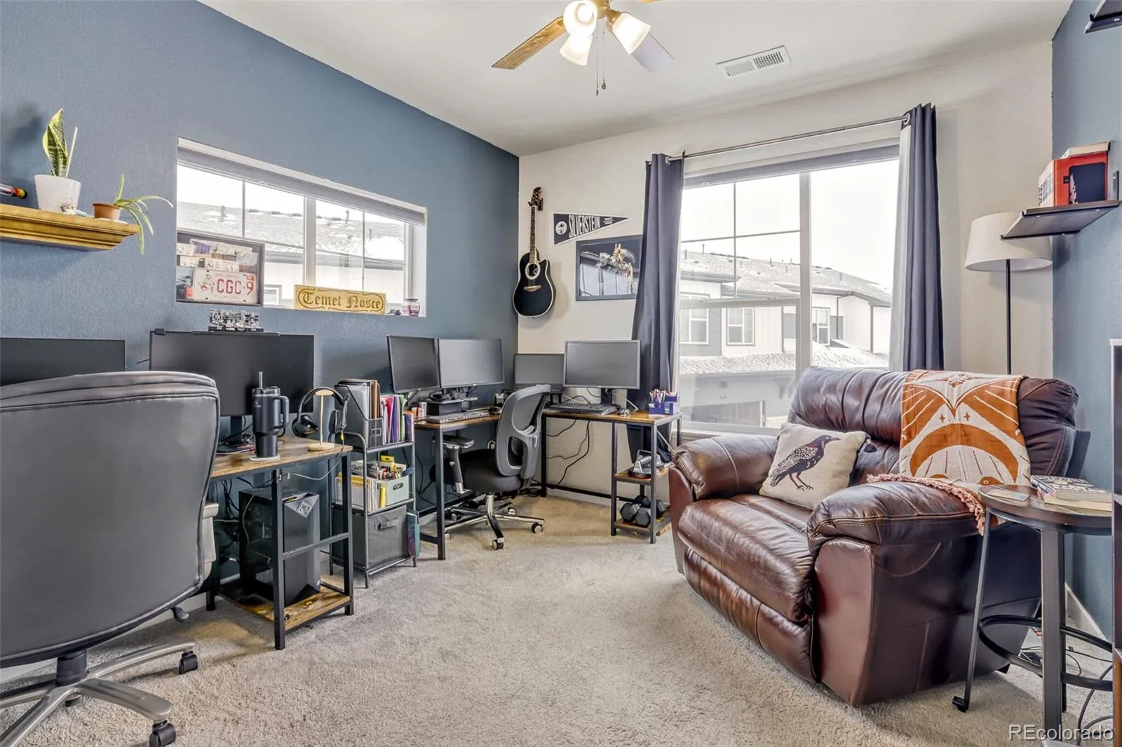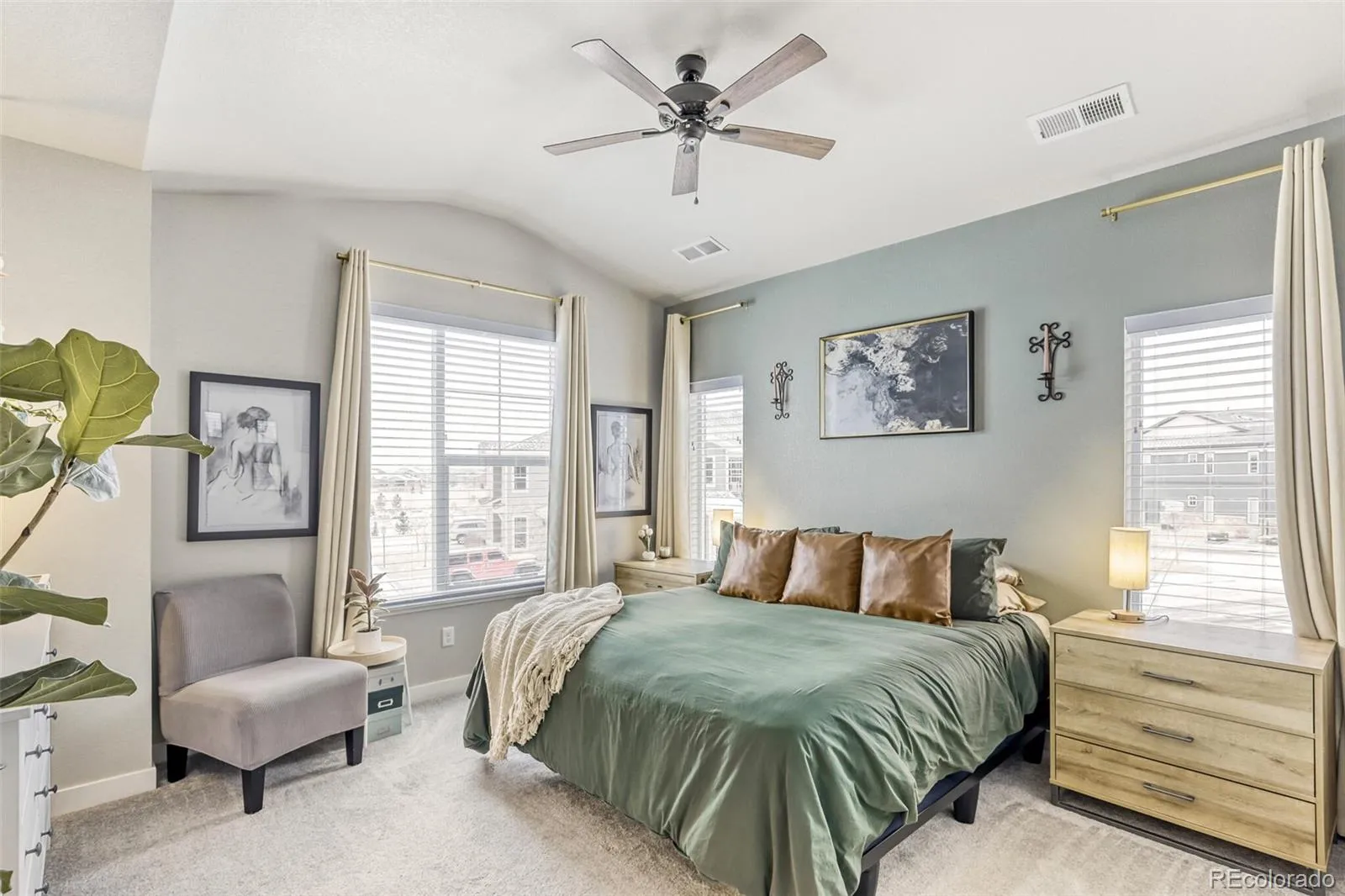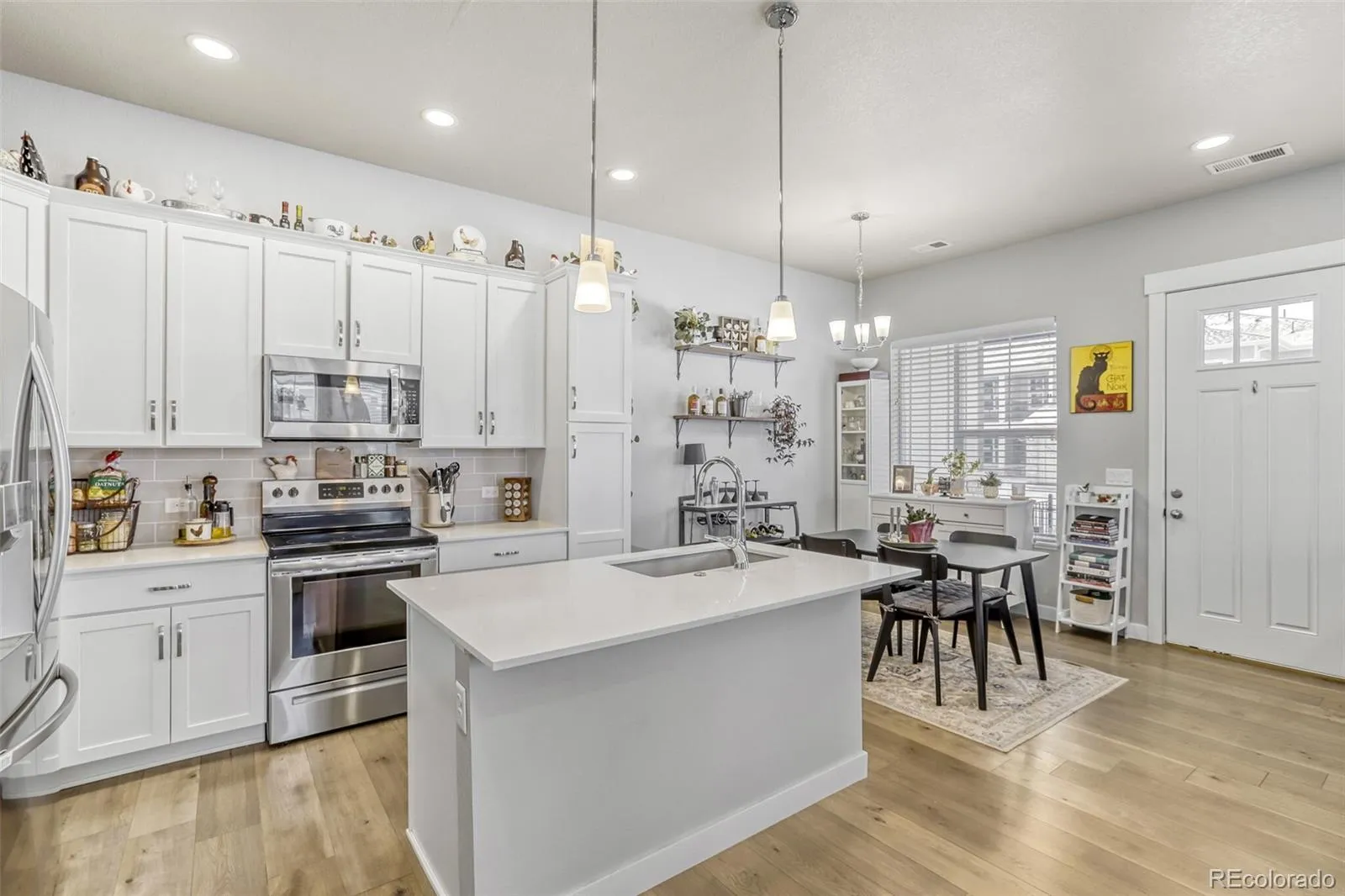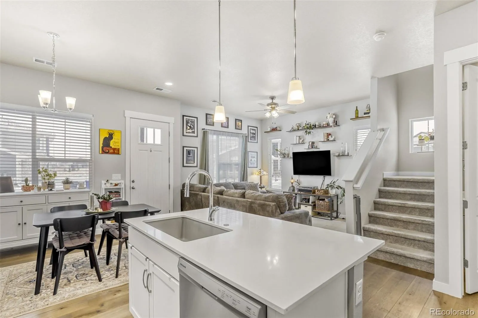 Bright end-unit townhome with extra windows, abundant natural light, and a fenced front porch! The open main level is designed for easy living and entertaining with quartz countertops, a kitchen island, pantry, and an attached 2-car garage. Upstairs you’ll find a versatile loft—perfect for a home office, workout space, or lounge—plus a private primary suite with en-suite bath and walk-in closet, two additional bedrooms, a full bath, and convenient upper-level laundry. Notable upgrades include a tankless water heater, upgraded carpet pad, and striking 12×24 floor tile plus 12×24 wall tile set to the ceiling with a designer accent strip—giving the bathrooms a clean, high-end finish. The fenced porch adds privacy and is ideal for morning coffee, pets, or relaxing at the end of the day. Community amenities continue to expand, including a pool planned/in progress (buyer to verify details with HOA). Low-maintenance living in a convenient Loveland location just minutes to The Promenade Shops at Centerra, dining, and commuter routes.