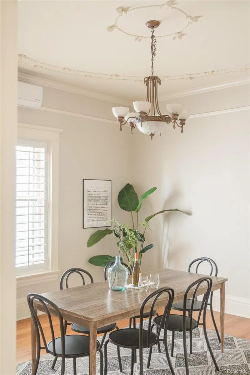 **Seller to pay 6 months of HOA dues with acceptable Offer** Step into timeless elegance in this beautifully preserved home located in Denver’s historic Perrenoud building, built in 1901 by the Perrenoud sisters. This rare gem offers a perfect blend of architectural detail and modern updates. Inside, you’ll find a spacious great room and formal dining room, two generous bedrooms, and a luxurious five-piece bath featuring a steam shower, jetted tub, and dual vanity. The updated generously-sized kitchen exudes Nancy Meyers’ signature charm and grace and includes an in-unit washer/dryer for convenience. Original details throughout the home such as rich hardwood floors, custom built-ins, vintage lighting, and an ornate fireplace, showcase the building’s historic character. Recent upgrades include fresh paint, newly refinished kitchen floors, and brand-new mini-split cooling/heating units ensure year-round comfort. Enjoy your morning coffee or an evening nightcap on the private balcony. Building amenities include a large fitness room, wine cellar, assigned garage parking as well as attic and basement storage, and access to a serene shared courtyard. The Perrenoud’s architectural grandeur still shines through with its showstopping stained glass atrium, Italian marble entry steps, mosaic tile floors, and one of Denver’s few functioning birdcage elevators. Located in the desirable East High School district and just moments from some of the city’s best spots: Watercourse, Steuben’s, Ace, and Marczyk’s Fine Foods and easy access to City Park, Downtown, Cherry Creek, and LoHi.