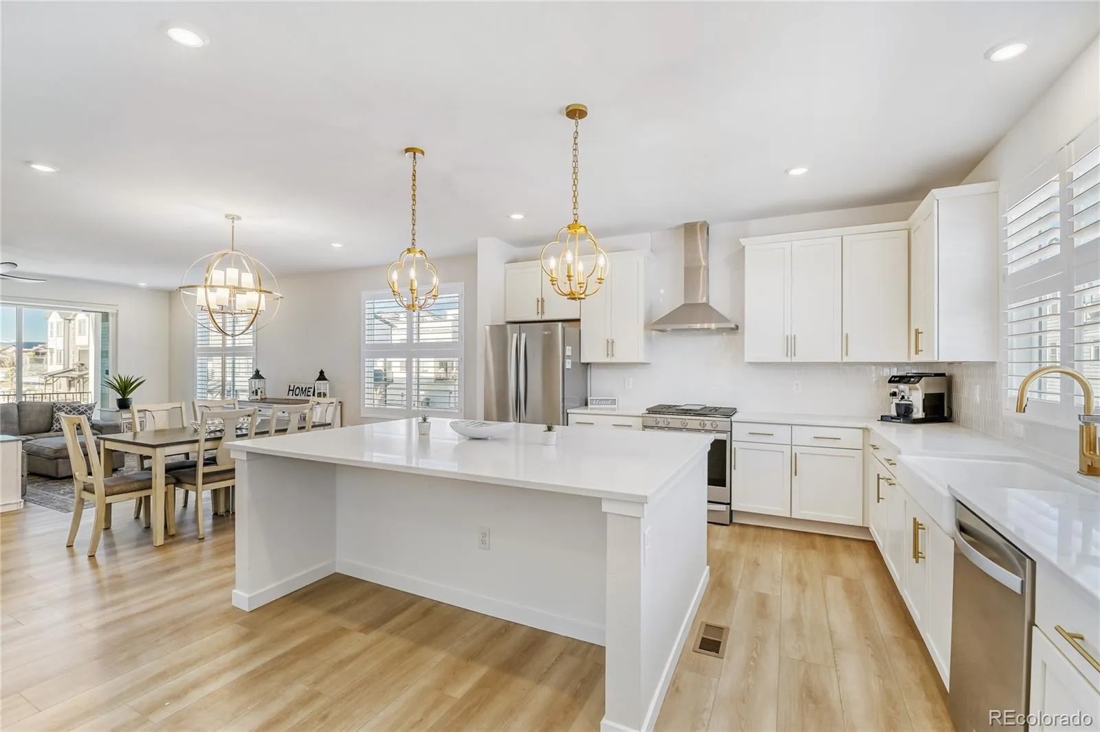 Welcome to this stunning end-unit townhome in Broomfield’s highly desirable Baseline community, where modern luxury meets everyday functionality and mountain views. This former model home features thoughtful upgrades throughout, including a first-level front entrance patio, a second-floor deck perfect for BBQing, and a private rooftop deck offering mountain views and gorgeous sunsets. The flexible “Baseline” floorplan includes a first-level bedroom and bathroom ideal for guests, a home office, gym, or craft space. The open and spacious second/main floor features the living room, dining room, kitchen, and bathroom with high-end quartz countertops, custom real wood shutters, an oversized kitchen island with custom cabinetry, half bath, large walk-in pantry, and a bonus area with a built-in desk. The third floor offers three bedrooms, including the owner’s suite with mountain views, a private bathroom, and a large walk-in closet, plus an additional bathroom and laundry room with front-load washer and dryer. A bonus area on the way to the rooftop deck offers space for a small office or Peloton, while the rooftop deck is perfect for entertaining with a wall-mounted TV and outdoor cover. This home includes comfort and safety upgrades such as a climate-controlled crawl space with vapor barrier, French drain, padded flooring, battery-backup sump pump, and a transferable 25-year warranty. Additional highlights include a tankless water heater, whole-house soft water system, reverse osmosis in the kitchen, Quantum Fiber and Comcast CAT6 internet options, and a finished, fully insulated garage with storage, Tesla universal wall charger, second charger rough-in, and 200 amp service. Located near trails, parks, open space, shopping, dining, and commuter routes, this home offers premium features rarely found in a townhome and is one of the few with true mountain views. Hurry and set your showing today before this gem is gone!