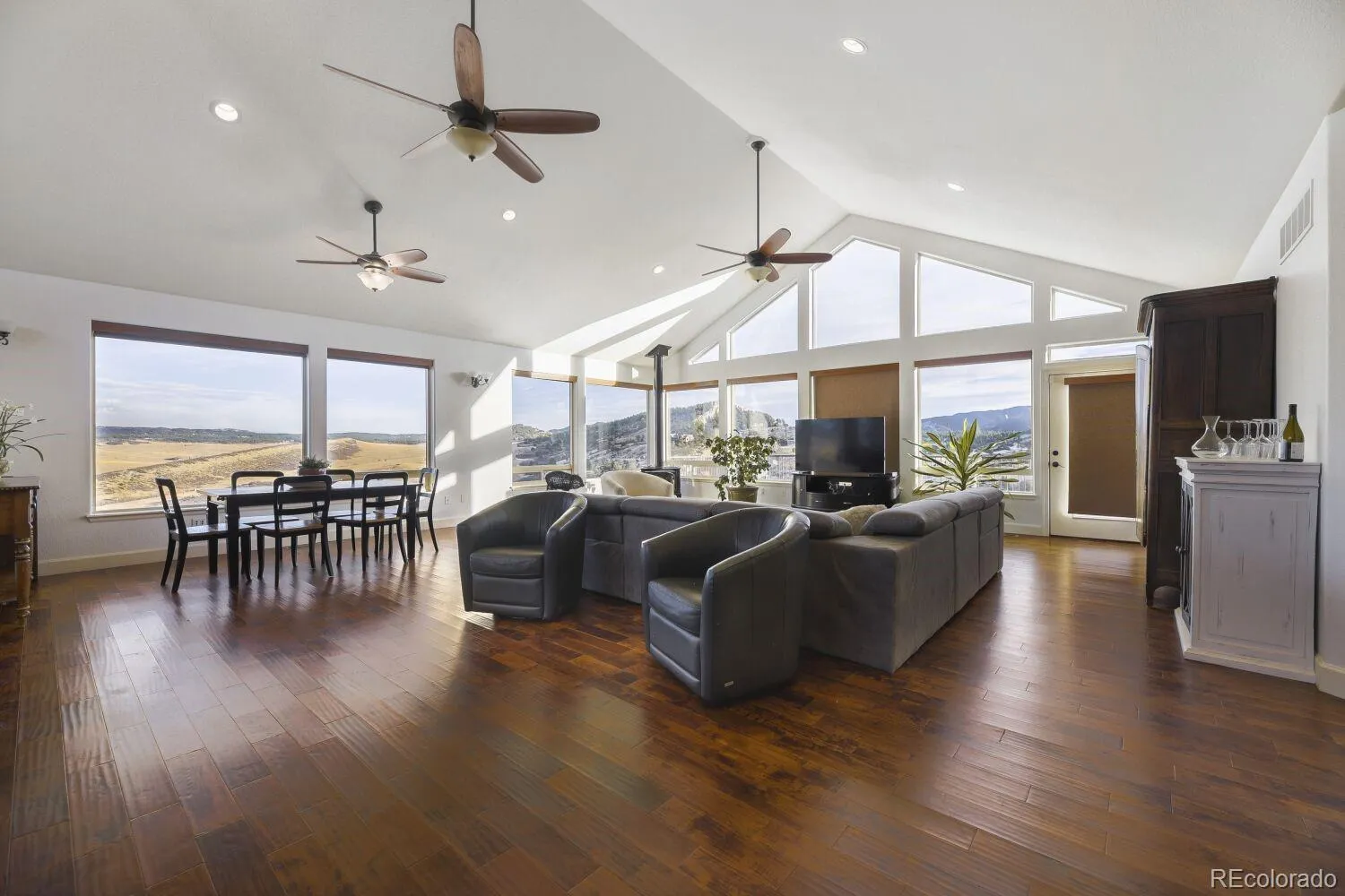 VIEWS! VIEWS! VIEWS! IMPRESSIVE INTEREST RATE BUYDOWN AVAILABLE, subject to acceptable terms. Hilltop Mountain Ranch retreat in the highly desirable Perry Park area, just two minutes from Perry Park Golf and Country Club. This custom home showcases an open-concept design with truly spectacular panoramic mountain views from nearly every room.