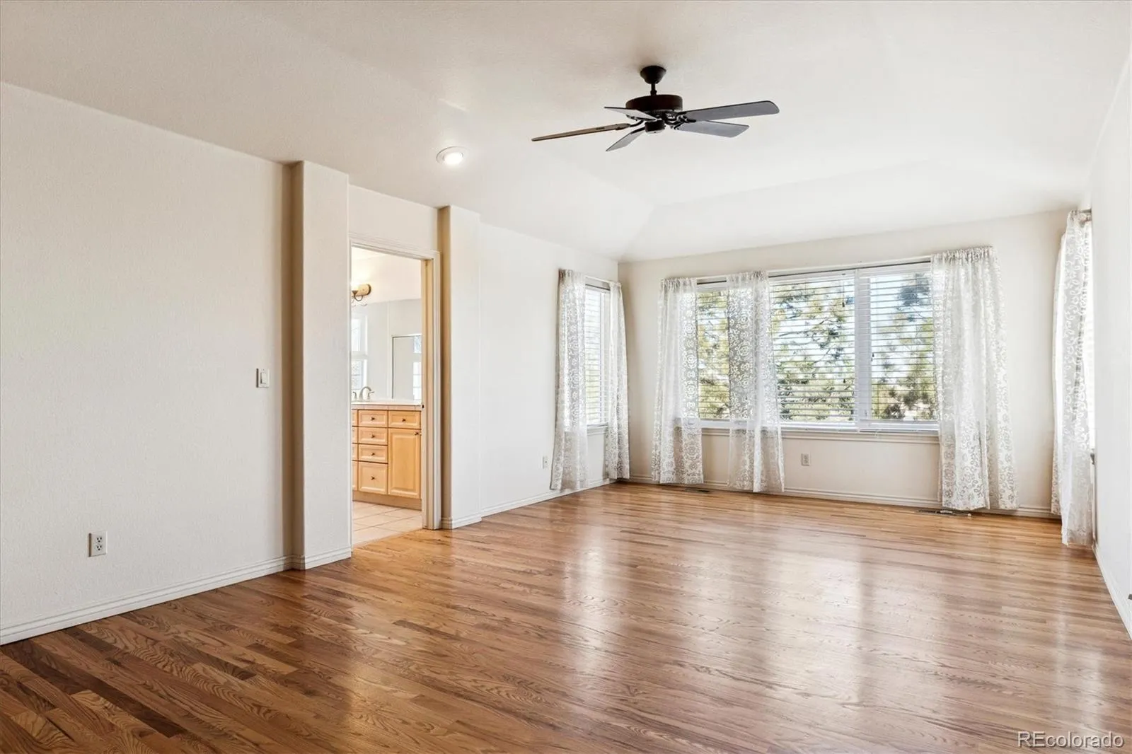 reside. The primary suite features large picture windows, vaulted ceilings, a 5-piece bath and a walk-in closet. Three more large bedrooms, plus