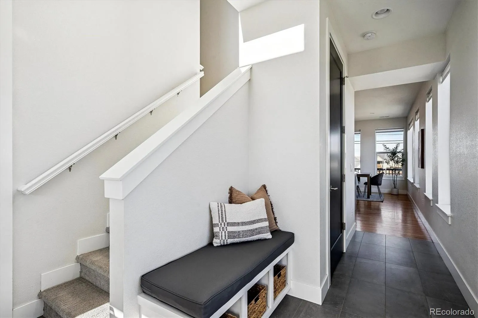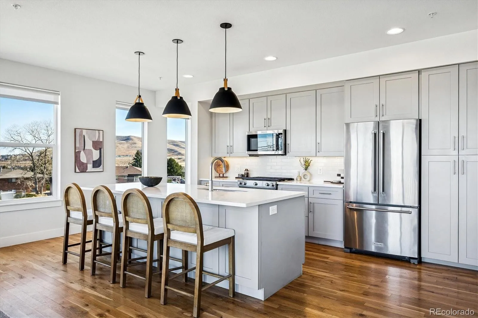 views of the foothills and downtown. The home’s location offers the best of Golden living, with quick access to over 10 miles of trails, newly-refreshed Heritage Dells Park, and a pedestrian-only path into downtown Golden (Kinney Run). Situated on a corner lot in the newer community of Bachman Farm, this beautifully sunlit modern home features oversized windows, soaring ceilings, large kitchen, island with seating, primary suite with walk in closet, second bath with double sinks, upper level laundry, and high quality finishes throughout. Seller upgrades include custom Shade Store window coverings, ceiling fans and lighting, custom shelving alongside the floor to ceiling fireplace wall, custom Murphy bed, and custom closets. Impeccably maintained, the home has fresh exterior paint and stain, professionally cleaned and resealed grout, native landscaping, fire pit area, dog run, and an under-deck storage shed. The HOA covers yard maintenance (front and back) and snow removal on sidewalks and driveways, making this home ideal for lock and leave convenience. Heated garage, fire mitigation system, large crawl space for extra storage, and walkable to coffee shops, dry cleaners, nail salon, climbing gym, dentist, daycare, and more- so many reasons to love this home!
