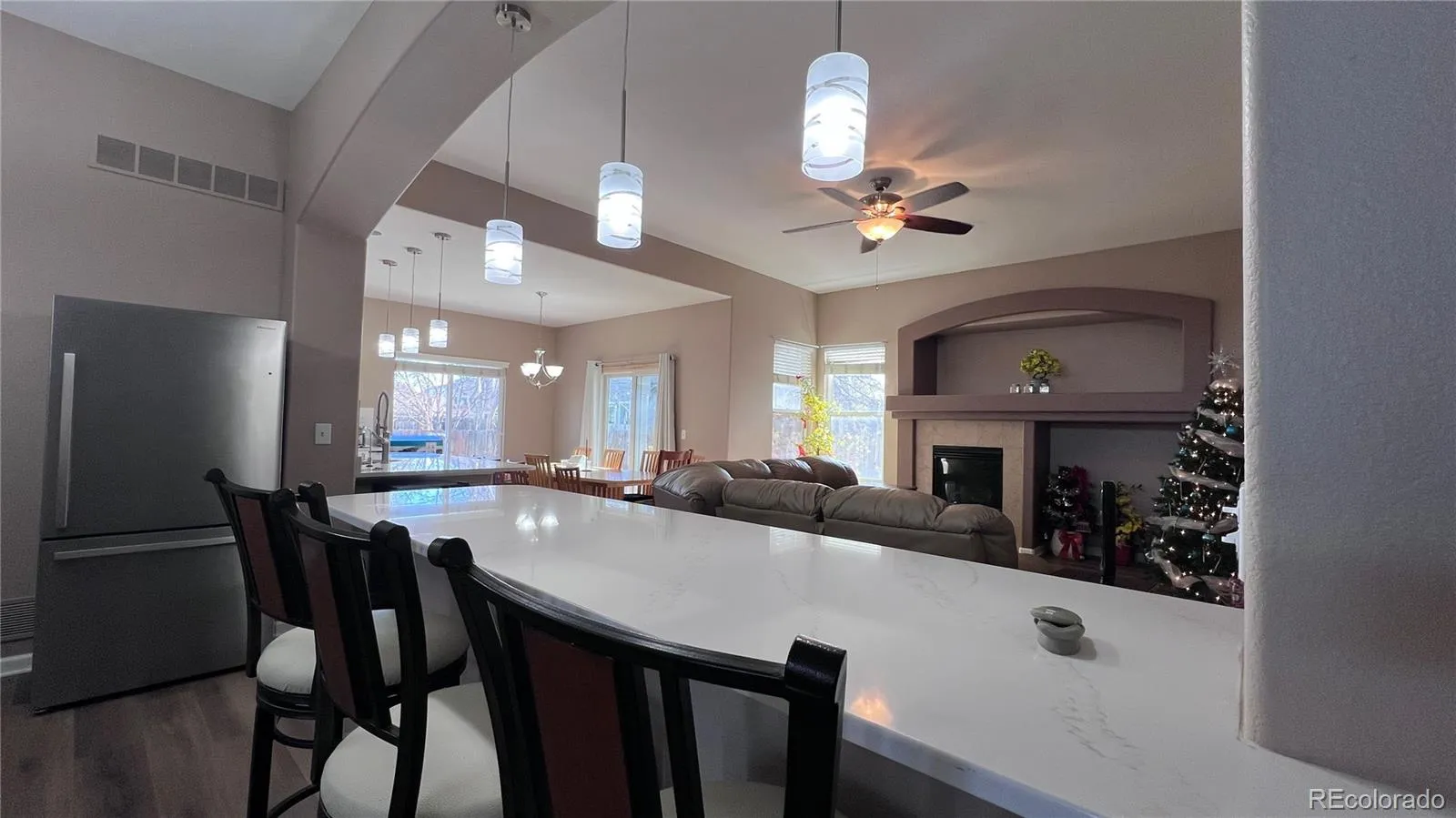 This home offers an open-concept main floor with a modern kitchen showcasing new quartz countertops and stainless steel appliances. The primary suite on the main level features a luxurious five-piece bathroom, complemented by two additional bedrooms and a full bathroom.