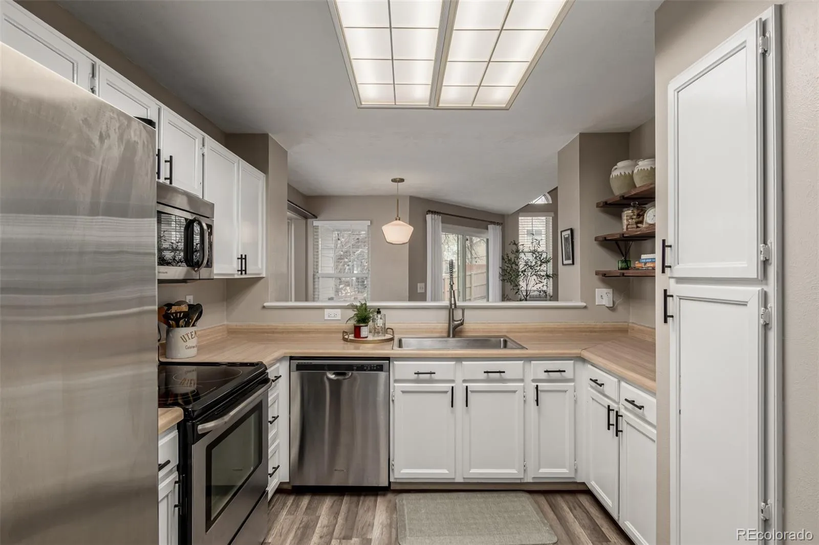 Welcome to this beautifully updated townhome in the charming Stony Creek community, offering carefree, low-maintenance living surrounded by greenspace and walking trails. This inviting home features an impressive list of recent upgrades that provide modern comfort, efficiency, and style. Major system updates include a tankless water heater installed in 2021, delivering unlimited hot water, and a newer furnace (2021) for enhanced heating efficiency. Inside, the home shines with fresh interior paint and professionally scraped popcorn ceilings, creating a bright, modern feel. Vaulted ceilings and skylights flood the space with natural light, enhancing the open and airy layout. The kitchen is thoughtfully designed with custom open shelving and a newly installed backsplash, blending functionality with contemporary appeal. New carpet (2021), updated interior doors, and modern light fixtures and ceiling fans throughout most of the home elevate the overall ambiance. The upstairs bathroom has been refreshed with a new vanity and toilet, offering a clean and modern retreat. Two window A/C units are included for added comfort during warmer months.