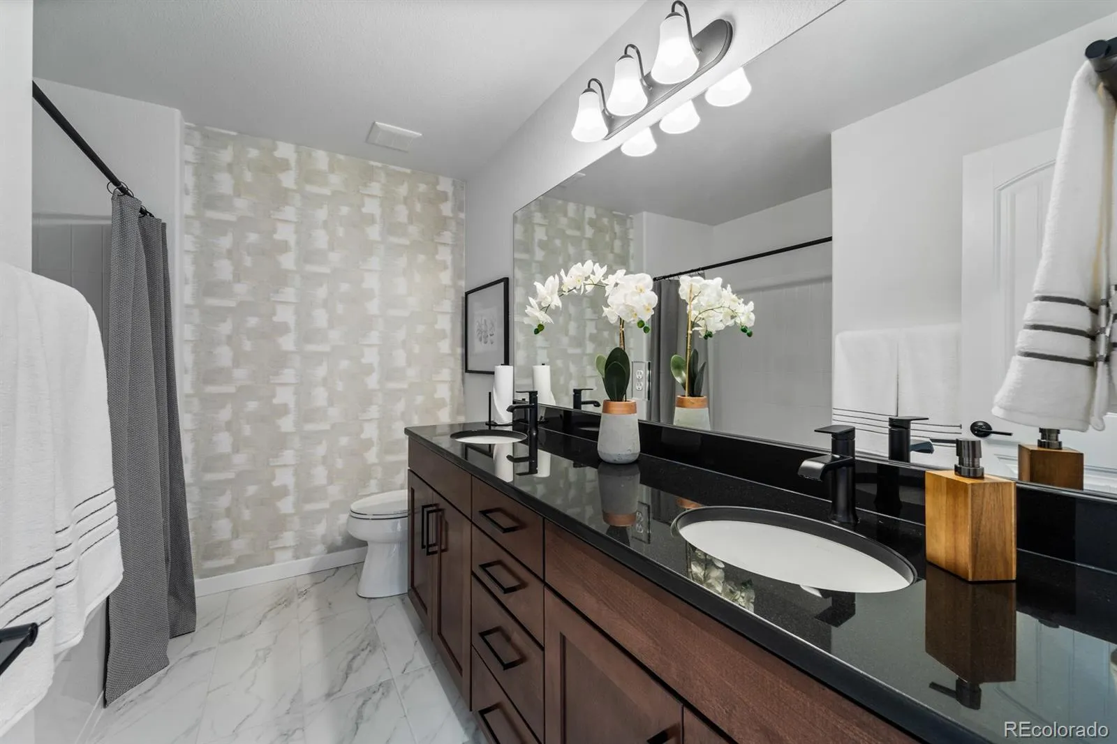 Experience luxury living in this stunning Vantage Homes former model, perfectly positioned to capture breathtaking, unobstructed views of Pikes Peak. Located in the highly sought-after School District 20, this meticulously crafted home offers a rare combination of designer finishes, functional elegance, and outdoor beauty. Step inside to soaring ceilings, expansive windows, and an open concept floor plan that fills the home with natural light and showcases the mountain vistas from nearly every room. Thoughtfully designed upgrades include gourmet kitchen appliances, quartz countertops, custom cabinetry, luxury plank flooring, and a spa inspired primary bath delivering both style and comfort. Entertain effortlessly in the spacious living and dining areas, or take the party outside to your fully landscaped backyard oasis. With a covered patio, professionally designed landscaping, full fencing and uninterrupted views, the outdoor space is an extension of the home’s high-end design. From top-rated schools and nearby trails to modern amenities and a vibrant community, this home offers not just a place to live but a Colorado lifestyle worth investing in. With the turnkey condition and model quality finishes, this is the one you’ve been waiting for.