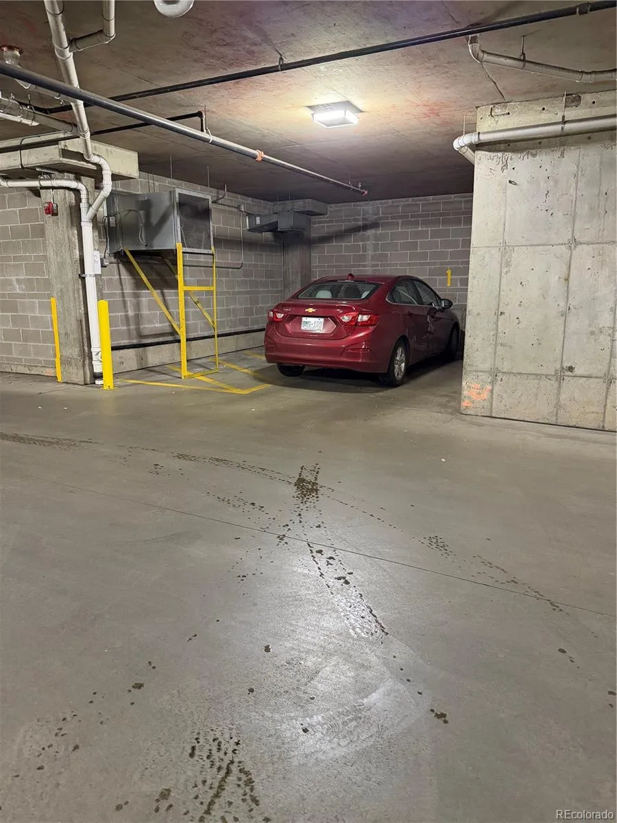 There is one parking space in the secured underground garage, and an additional outside covered space attached to the building. The building is secure and can only be accessed with a fob or key. The patio/balcony overlooks the common area that has a fireplace, and seating for entertaining on our beautiful Colorado days!