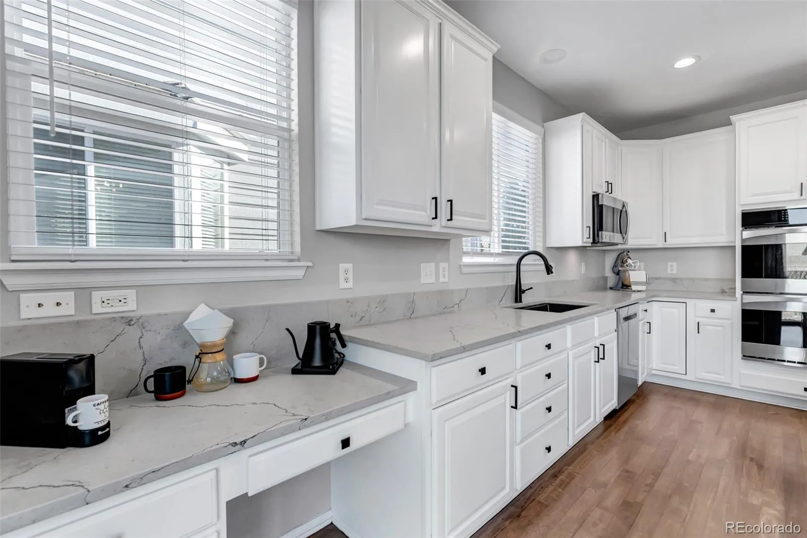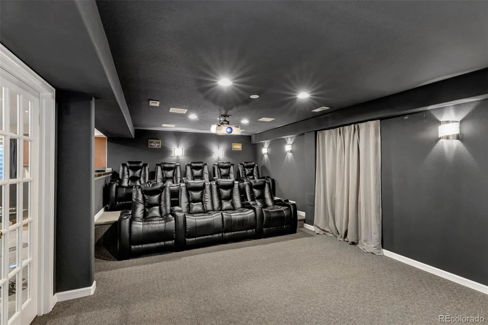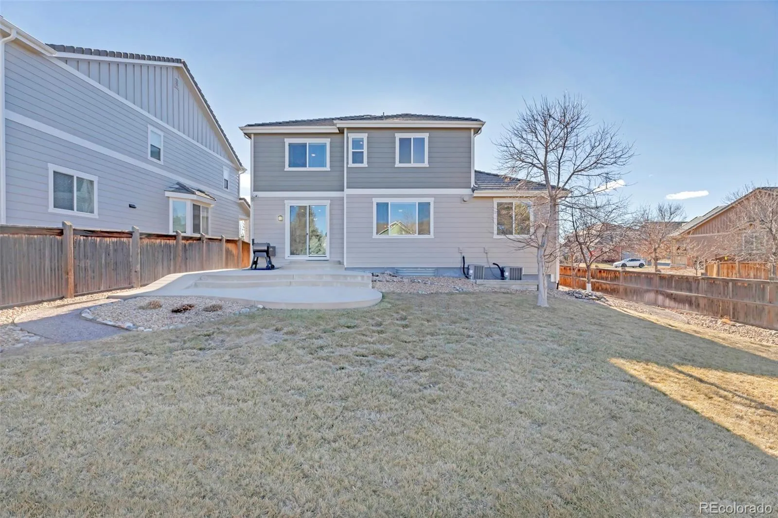 Prepare to fall in love with this impeccably updated 6-bed, 4.5-bath residence set on nearly a 1/4 acre in a peaceful cul-de-sac on a premium corner lot. Offering 4,344 sq ft of finished living space, this home showcases modern sophistication with nearly $100,000 in upgrades throughout. Pikes Peak views set the stage, while the south-facing driveway leads to a finished 2-car main garage and 1-car garage. The main garage is outfitted with polyaspartic flooring, water-resistant paint, and an EV charger for added functionality. Inside, sun-filled open-concept living with refinished hardwood floors (2023) and custom Marvin Infinity sliding doors (2023) seamlessly connects indoor and outdoor living. Entertain on the brand-new deck (2025) with accent lighting for unforgettable evenings, and enjoy the curved patio overlooking a lush, private backyard. The chef’s kitchen (2022) is a true showstopper featuring custom Italian quartz countertops, a premium Café induction cooktop, high-end appliances, and sleek modern finishes. Spa-inspired bathrooms (2022–2024) elevate daily living with Italian marble, designer paint, contemporary hardware, and statement lighting. Every detail has been curated for modern comfort, including updated fans, chandeliers, and smart-home features such as auto-dimmable lighting, smart thermostats, and exterior security enhancements (2022–2025). The professionally finished basement offers a recreation area, wet bar, and custom home theater. A durable concrete tile roof completes this exceptional property. Ideally located within walking distance to Gold Rush Elementary, parks and trails and just minutes from downtown Parker, shopping, dining, and major highways. This is elevated Parker living—where space, luxury, views, and smart design converge in a highly sought-after family-friendly community. Opportunities like this are rare—experience it in person and schedule your private showing before it’s gone.