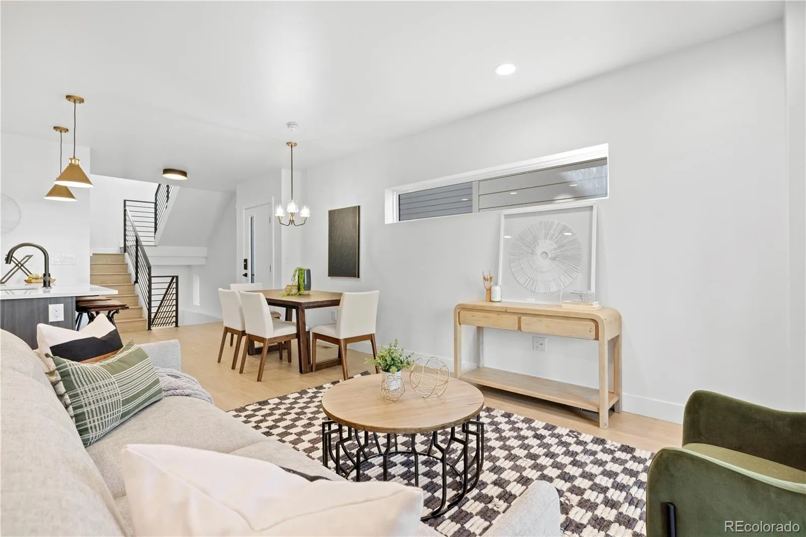 The main level showcases an open-concept living, dining, and kitchen area filled with natural light and finished with sleek, modern materials — perfect for entertaining or everyday living.