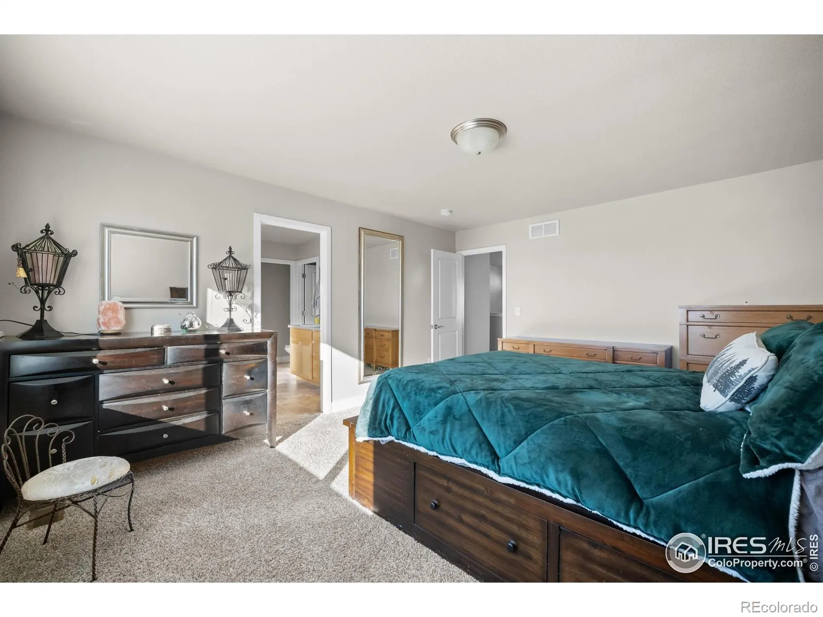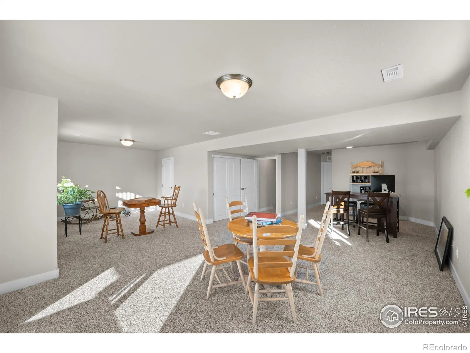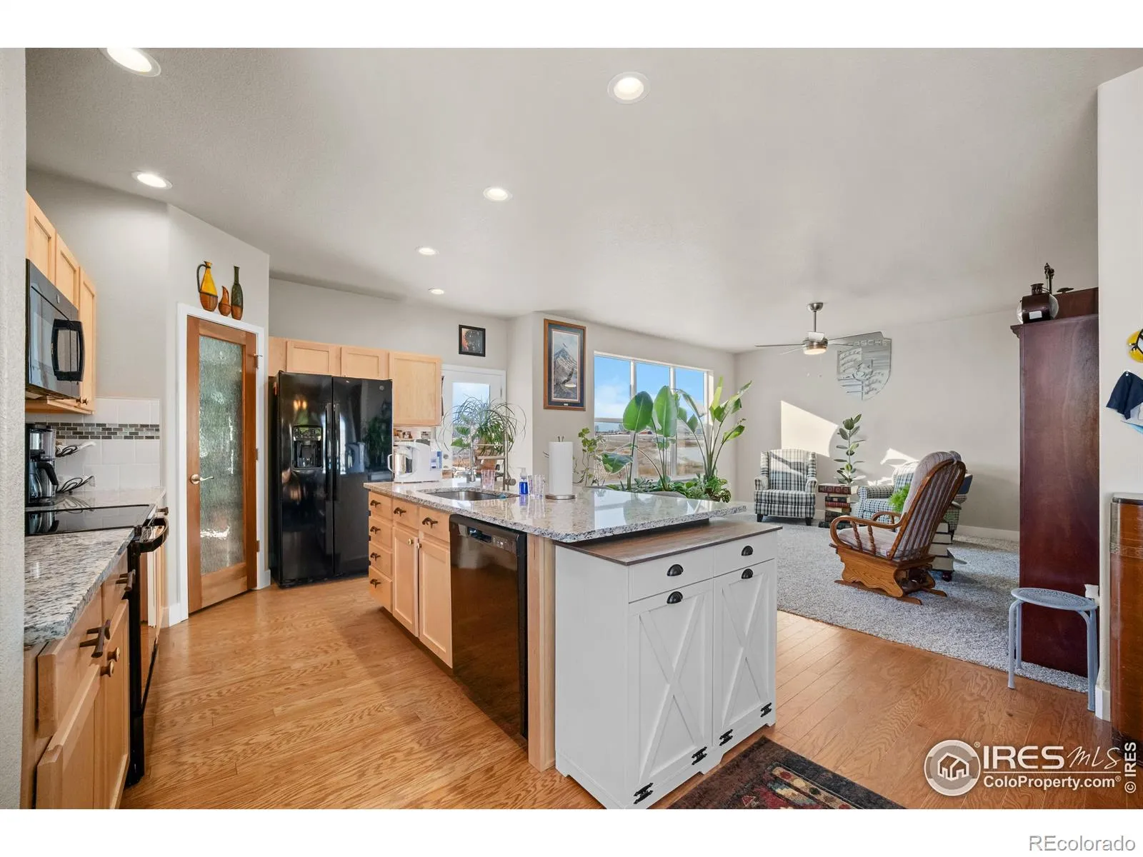 $15,000 CLOSING CREDIT INCLUDED IN THE PRICE!! This lot may be the most private lot you can have in a subdivision, (no neighbors behind you or to the side of you), yet have expansive views and sunset views to the west and easy access to the Walking Trails! This is one of those “GEM” homes….from the moment you walk in, you feel warm and welcome. This home sits up higher in the front (but without the steep typical stairs) & gives you a Walk-Out Basement in the back, making for lots of sunlight & spectacular views. There is a large Entry Way with a Built-In Coat & Shoe Nook, a half Bath & a Front Office with Glass French Doors. Then heading past the upstairs Staircase, is the Open Kitchen & Living Room/Great Room. The Dining Nook has true antique Barnwood from an old Loveland Barn and a very cool Chandelier made of Resin Antlers, looking out a HUGE picture window to the East. A Large Kitchen Island with Gray & White Granite with Garnet Red Flecks immediately catches your eye! Black Appliances including; Side by Side Refrigerator, Microwave, Dishwasher and Smooth Top Stove/Oven. Adjoining Great Room is good size with Beautiful Wood Built-In Bookcases that will stay & also has a HUGE picture window looking out to the South & the Back Door to the Covered Deck. Upstairs is another Living Room Space in the Loft, the Laundry Room with Blue Matching Washer & Dryer Set & 4 Bedrooms! The Large Primary Bedroom and Bath boast a Large Walk-In Closet with 2 CUSTOM SHOE SHELVES, an Oversized Soaking Tub, Separate Walk-In Shower and door to the Toilet. All Upstairs Bedrooms are good size rooms. Finished Walk-Out Basement has a large Open Room that has room to add a Kitchenette or Wet Bar Area, a Full Bathroom & a Large Storage Room. (Storage Shelves are not included). Front & Backyard Low-Maintenance Landscaping is gorgeous! Fully Fenced 6′ White Vinyl Fencing on 3 sides & White Vinyl Split Rail Fence on East Side, plus another covered Back Patio & close to Park/Playground.