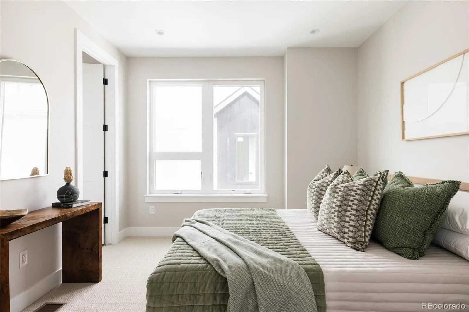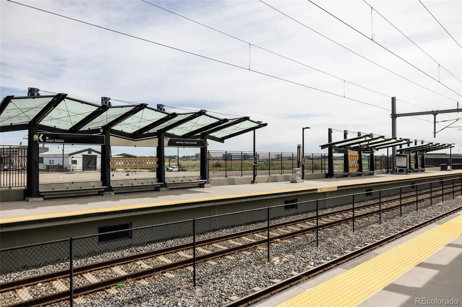 You don’t want to miss this brand new modern townhome in Denver’s vibrant Central Park neighborhood. Natural light pours into the expansive main floor where the kitchen, dining, and living areas connect seamlessly—perfect for everyday living and effortless entertaining. The kitchen is a true centerpiece, featuring quartz countertops, a large island, designer tile backsplash, and a premium stainless steel appliance package. The adjacent dining area boasts a custom wet bar with a wine fridge, sink, and floating white oak shelves—ideal for dinner parties or cozy nights in. Tucked behind a sliding farmhouse-style door is a second flex space, perfect for a home office, reading retreat, or compact home gym. Just off the living room, step out onto the private deck and enjoy fresh Colorado air and sunshine year-round. Modern black railings add a contemporary edge throughout, tying each space together with sleek, cohesive style. Upstairs, find a convenient laundry area and two spacious ensuite bedrooms—each offering generous walk-in closets and spa-like baths with elevated finishes. Ideally located in the heart of Central Park, this home is just steps from Sprouts, 29th Ave Town Center, outdoor concerts, the weekend farmers market, parks, trails, and top-rated schools. With the light rail one block away, you’re only 16 minutes to Downtown Denver and 22 minutes to DIA. Whether you’re home or away, this impeccably designed, low-maintenance “lock & leave” residence delivers urban convenience with neighborhood charm.