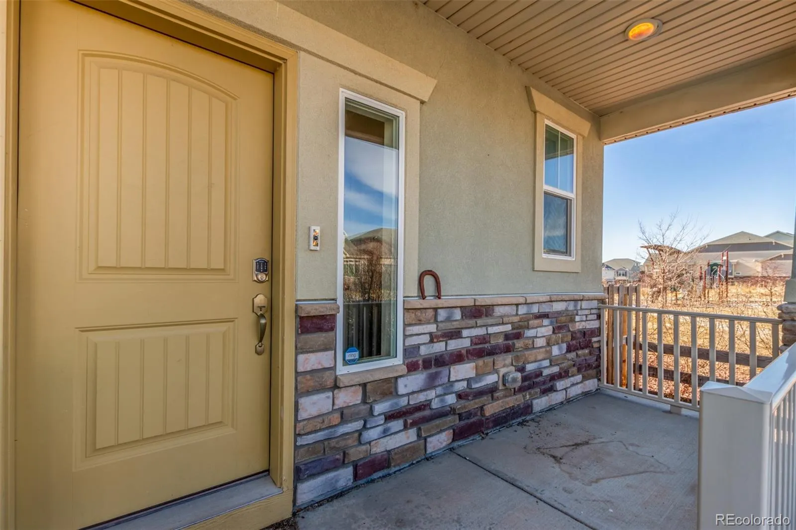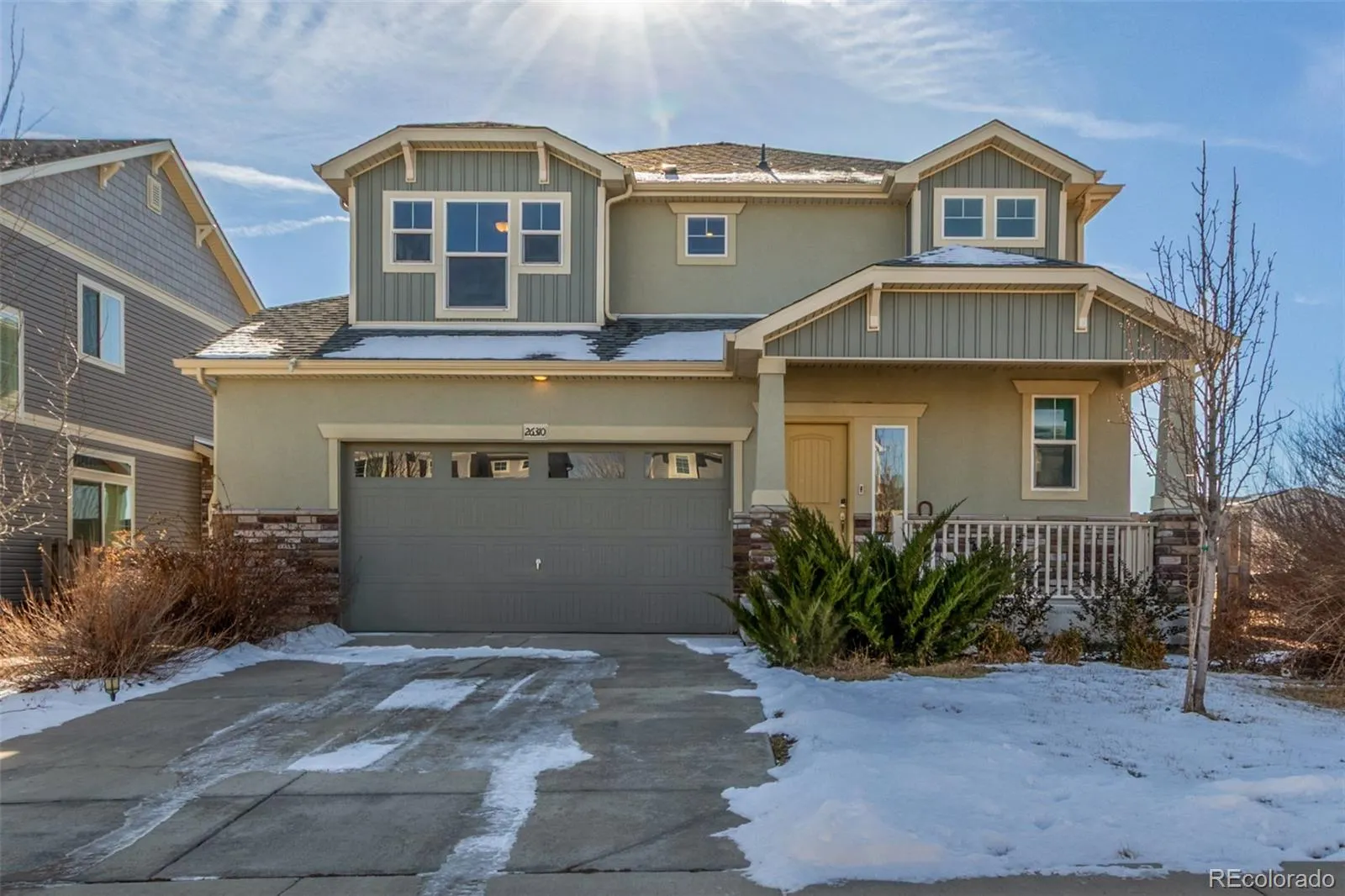 Set along a quiet greenbelt in the Adonea community, this light-filled home pairs intentional upgrades with an open, elevated layout designed for modern living. A charming front porch and mature landscaping create a warm first impression, offering a sense of arrival that feels both grounded and refined. Inside, tall ceilings, warm wood flooring, and a soft color palette establish an atmosphere of calm and cohesion. A flexible dining space unfolds just off the entry, equally suited for gatherings, a home office, or a creative studio. Beyond, the open concept living area centers around a cozy fireplace and surround sound wiring, creating a natural gathering place for evenings of music, movies, or relaxed entertaining. An upgraded southern facing window package draws abundant natural light across the main level, enhancing the home’s airy and connected feel. The kitchen anchors the heart of the home with an upgraded granite countertop package, stainless steel appliances, and an oversized island that invites conversation and connection. Ample cabinets, recessed + pendant lighting, and a walk-in pantry blend elegance with functionality. Upstairs, three bedrooms and a versatile loft provide room to retreat, recharge, or reimagine. The primary suite introduces a contemporary barn door that opens to a serene ensuite with dual granite sinks and a spacious walk-in closet, creating a private sanctuary at the end of the day. Downstairs, the unfinished basement presents a canvas for future expansion. Outdoors, a covered patio extends the living space into the backyard, offering an inviting setting to unwind while overlooking the peaceful greenbelt. The 2-car garage includes a 240v EV charger, seamlessly blending modern convenience with forward thinking design. This luxurious and open Aurora home delivers an elegant lifestyle rooted in light, space, and thoughtful upgrades, where every detail has been curated to support a life well lived.