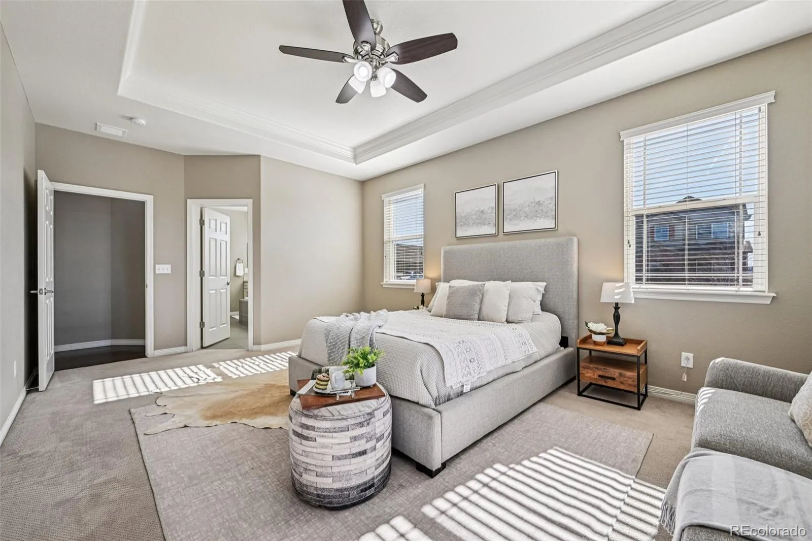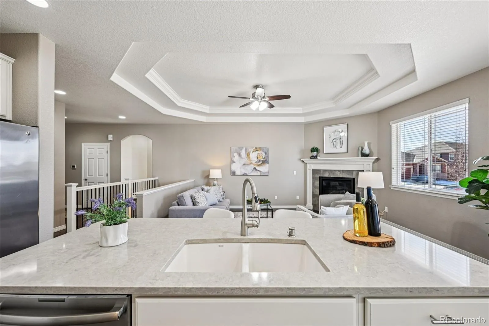 This beautifully designed, meticulously maintained, ranch style home on a prime corner lot location in Village on the Green is a must see! With 4 bedrooms, 3 bathrooms, and a full unfinished basement ready to nearly double your living space, this home offers comfort today and endless potential for tomorrow. Polished hardwood floors and neutral, easy color tones welcome you in. The spacious, open-concept kitchen anchors the main living area, featuring tall white cabinetry, quartz countertops, stainless steel appliances, a walk-in pantry, large center island, and inviting eat-in nook. The living room, with its tray ceiling and cozy gas fireplace, is seamlessly connected – the cook is always included, never excluded! A bonus butler’s pantry provides additional storage and effortless entertaining in the formal dining area. The large, private primary suite is a retreat with it’s five-piece ensuite bath with dual vanities, soaking tub, and generous walk-in closet. Two secondary bedrooms are thoughtfully placed on the opposite side of the home with their own full bath, while the fourth bedroom with double doors is ideal as a home office or guest space. Step outside to enjoy the stamped concrete patio and fully fenced yard with views of the neighborhood park – close enough to enjoy, yet perfectly positioned for privacy. Additional highlights include a functional mudroom with cabinetry and included washer and dryer, located directly off the oversized garage. And don’t forget – the 2,100+ square feet of unfinished basement space offers a blank canvas for future expansion. Located within walking distance to King Soopers, restaurants, and shopping conveniences, this well cared for home offers an abundance of convenience and charm—no need to look any further…this is the one!