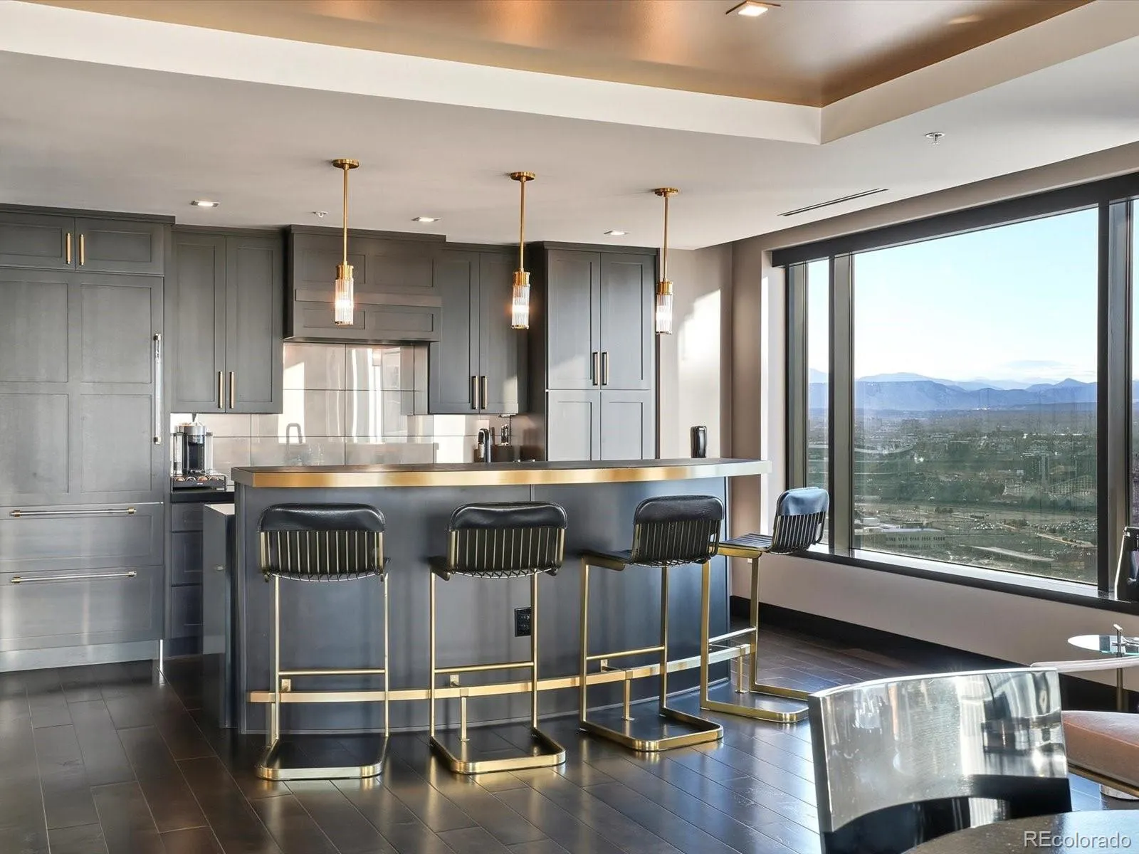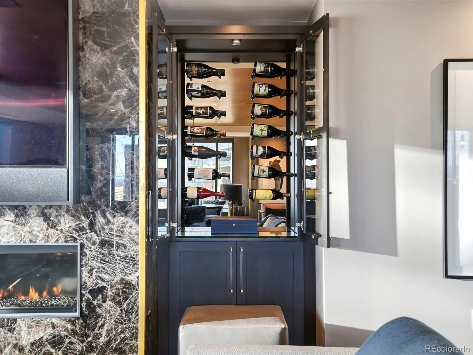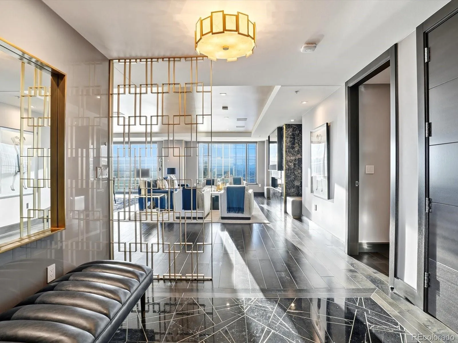 Welcome to Residence 2320 at the Four Seasons Private Residences Denver—a rare, fully turnkey, designer-furnished home paired with the legendary Four Seasons lifestyle. Completely reimagined with nearly $1M invested in finishes, systems, and furnishings, this no-compromise renovation delivers a residence that feels brand new, with fewer than 100 total days of occupancy. The showpiece great room features an oversized gas fireplace wrapped in full-slab onyx, custom quartz columns with brass accents, a bespoke gold-leaf ceiling, and a built-in wine & spirits display. The kitchen was designed as a true “club” style entertaining space with a French La Cornue range, Sub-Zero refrigeration, Wolf microwave, Miele dishwasher, Brizo faucet, Ann Sacks backsplash, custom cabinetry with brass hardware, Black shagreen leather custom designed bar, and a dramatic waterfall-edge black-granite countertop with integrated sink. Smart-home lovers, rejoice: the residence includes a fully integrated Crestron system with multi-room AV, and integrated HVAC and lighting controls. The primary suite is a private retreat with automated shades and a spa-inspired bath wrapped in Calcutta slab granite and marble, Ann Sacks tile flooring, and high-end Kohler & Waterworks fixtures—finished with a glass-enclosed shower and elevated, hotel-level polish. The guest bedroom features stunning panoramic views of the Rocky Mountains and is equipped with a nicely appointed ensuite bath. Ownership here is about more than a beautiful home, it’s about the Four Seasons lifestyle: 24-hour concierge, valet, security and engineering, plus access to signature amenities including two fitness centers, outdoor pool, spa facilities, and a residents-only house car, with a-la-carte services like housekeeping and in-home dining. Luxury. Turnkey. Iconic. This home delivers the feel of a private, newly-built designer residence wrapped in the service, discretion, and convenience that only Four Seasons can provide.