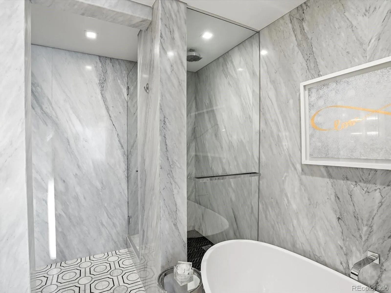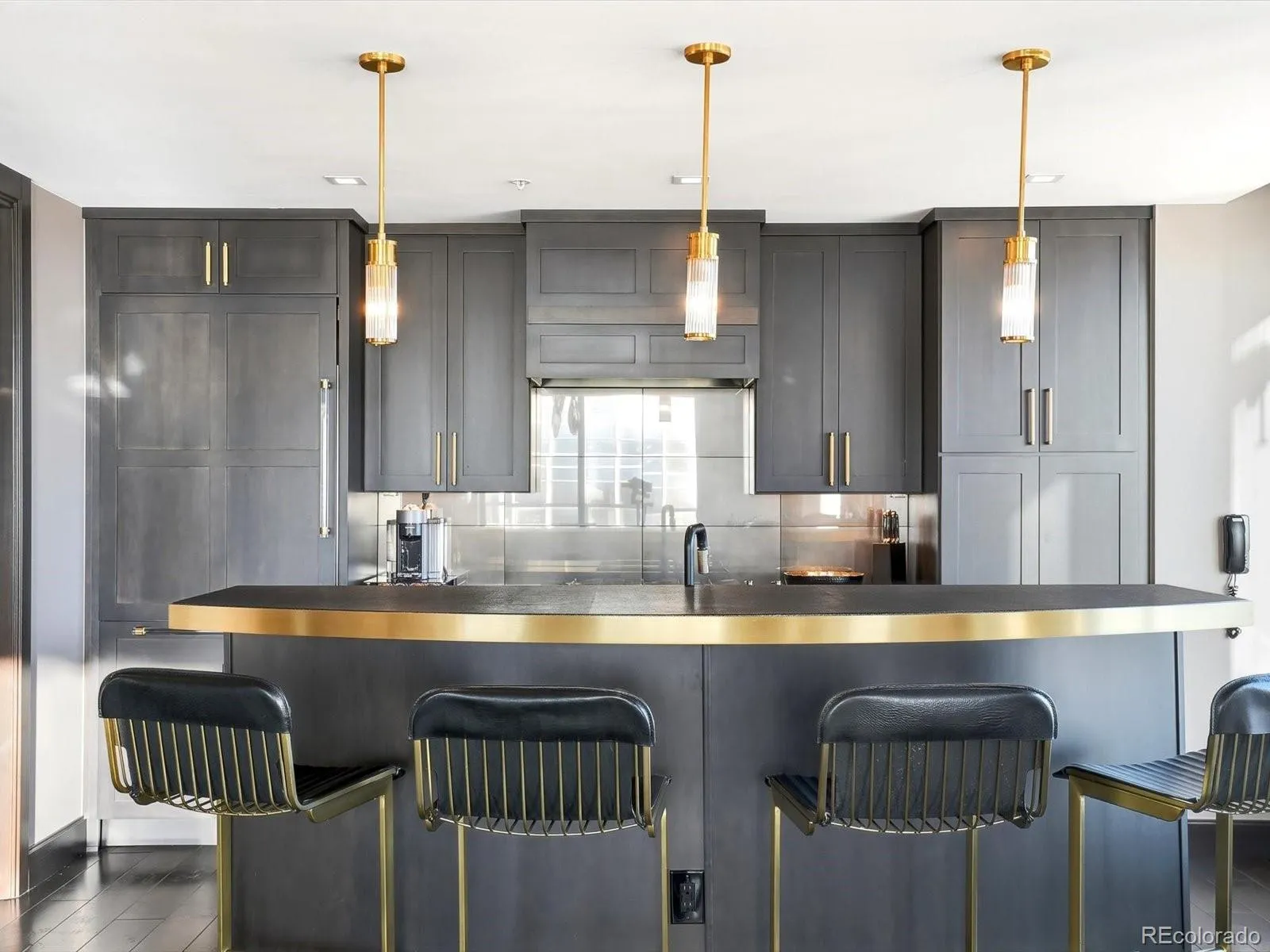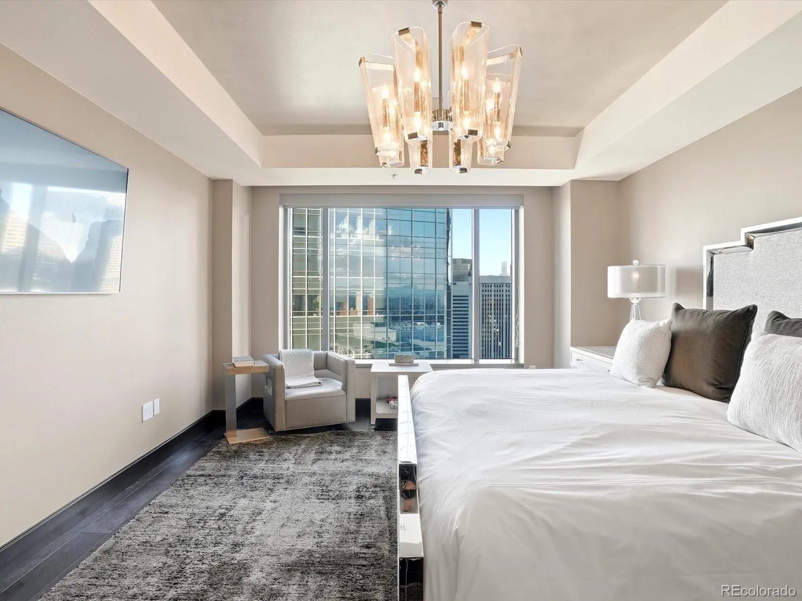 Welcome to Residence 2320 at the Four Seasons Private Residences Denver—a rare, fully turnkey, designer-furnished home paired with the legendary Four Seasons lifestyle. Completely reimagined with nearly $1M invested in finishes, systems, and furnishings, this no-compromise renovation delivers a residence that feels brand new, with fewer than 100 total days of occupancy. The showpiece great room features an oversized gas fireplace wrapped in full-slab onyx, custom quartz columns with brass accents, a bespoke gold-leaf ceiling, and a built-in wine & spirits display. The kitchen was designed as a true “club” style entertaining space with a French La Cornue range, Sub-Zero refrigeration, Wolf microwave, Miele dishwasher, Brizo faucet, Ann Sacks backsplash, custom cabinetry with brass hardware, Black shagreen leather custom designed bar, and a dramatic waterfall-edge black-granite countertop with integrated sink. Smart-home lovers, rejoice: the residence includes a fully integrated Crestron system with multi-room AV, and integrated HVAC and lighting controls. The primary suite is a private retreat with automated shades and a spa-inspired bath wrapped in Calcutta slab granite and marble, Ann Sacks tile flooring, and high-end Kohler & Waterworks fixtures—finished with a glass-enclosed shower and elevated, hotel-level polish. The guest bedroom features stunning panoramic views of the Rocky Mountains and is equipped with a nicely appointed ensuite bath. Ownership here is about more than a beautiful home, it’s about the Four Seasons lifestyle: 24-hour concierge, valet, security and engineering, plus access to signature amenities including two fitness centers, outdoor pool, spa facilities, and a residents-only house car, with a-la-carte services like housekeeping and in-home dining. Luxury. Turnkey. Iconic. This home delivers the feel of a private, newly-built designer residence wrapped in the service, discretion, and convenience that only Four Seasons can provide.
