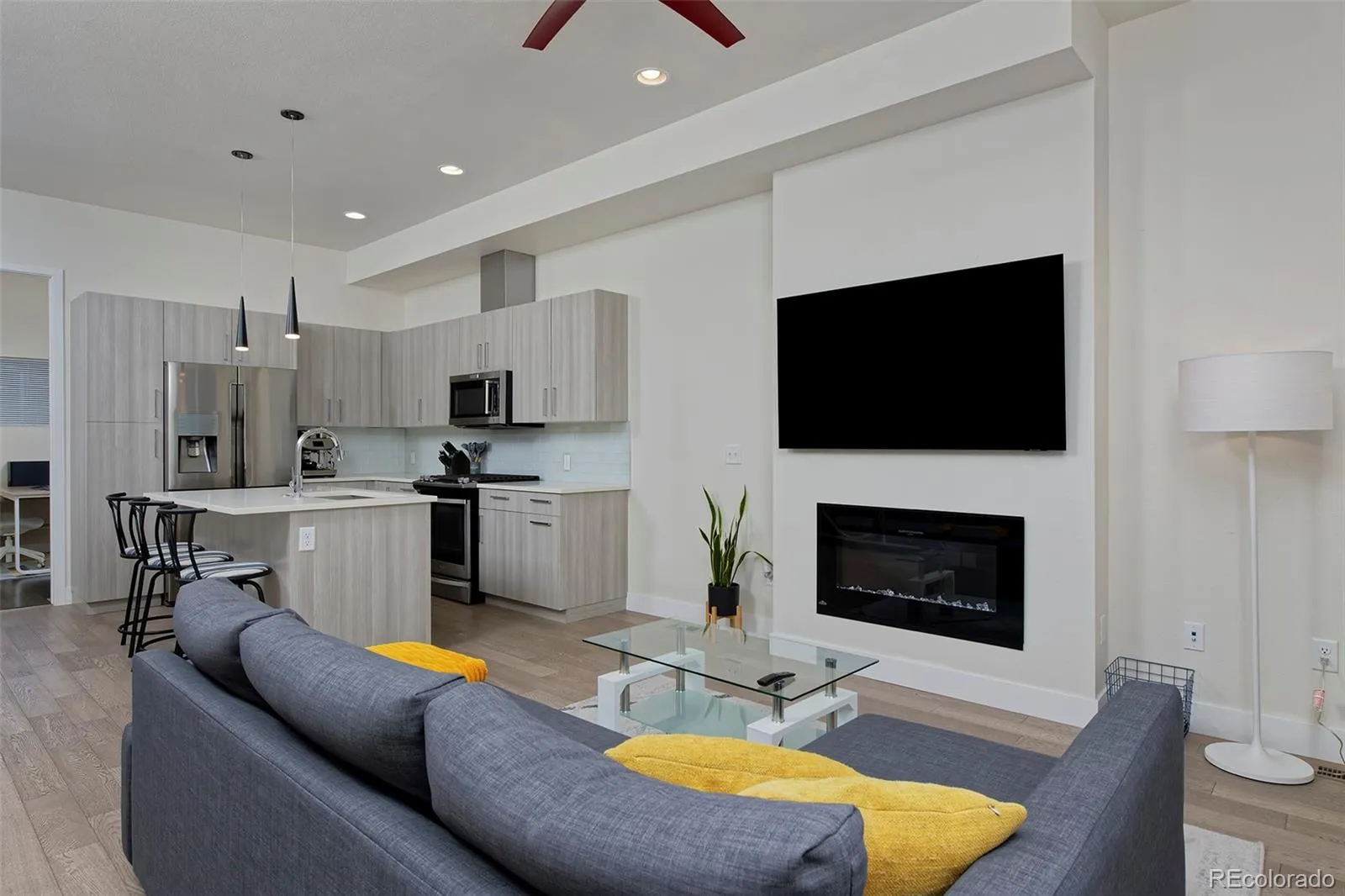Move-in ready, 3 bedroom and 3 bathroom townhouse with a huge private rooftop deck overlooking the community courtyard. This unit has been impeccably maintained and features tasteful, like-new finishes throughout with a modern aesthetic. Large southern facing windows on each level flood the unit with natural sunlight year round. The main floor has a spacious open floor plan with high ceilings and recessed lighting. The kitchen has a large center island with bar seating, contemporary slab-front cabinetry, white quartz countertops, a glass tile backsplash and stainless appliances including a gas range. An electric fireplace in the living room provides cozy ambiance while an efficient dining area has just the perfect amount of space. The primary suite is on the upper level offering comfortable separation from the rest of the unit and features a spacious rooftop deck, wood flooring, a walk-in closet and an en-suite bathroom with dual undermount sinks, Euro-glass shower and water closet. Laundry is conveniently located directly outside the primary suite. The main floor bedroom has wood floors, plenty of closet space and an adjacent full bathroom. The lower level has a 3rd bedroom with a full en-suite bathroom that’s an ideal guest suite, home office or short-term rental opportunity. An oversized attached garage is EV charging ready and has built-in storage for all of your Colorado gear while a dedicated surface space next to the building is ideal for guests. This unit is centrally located and just a short walk to City Park, an easy bike to RiNo, 9th+CO and Downtown or a quick ride to DTC and Anschutz! The nearby Light Rail station provides easy access to airport and the mountains!