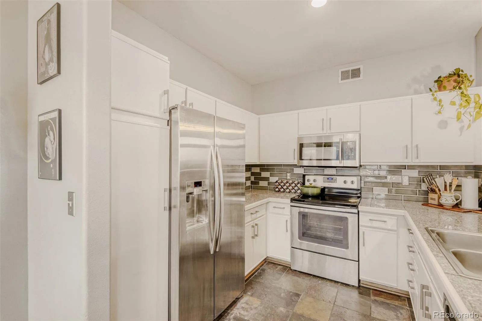 This charming Southern facing, ground floor condo in Tamaron features 2 bedrooms (each with a walk-in closet), 2 full bathrooms, living room, dining nook, kitchen and a detached single car garage (deeded #5 located just outside the front door). Pride of ownership shines throughout this charming unit. Perfect for yourself or as an investment property. Low maintenance living – just lock up and go! Updated and move in ready. Newer upgrades include windows, blinds, sliding door, furnace, central air conditioning and freshly painted kitchen cabinets. The energy efficient furnace and central AC keep this home comfortable all year long while the many windows allow the natural light to cascade in – bright and cheerful. Neutral tones make it easy to picture yourself calling this one home. Washer and dryer stay. Close to dining, shopping, entertainment and other amenities including parks and rec centers, Cherry Creek State Park, Whole Foods, easy access to light rail and the highway. Quick possession is available. Don’t miss your opportunity – this will get snapped up quickly. Welcome Home!