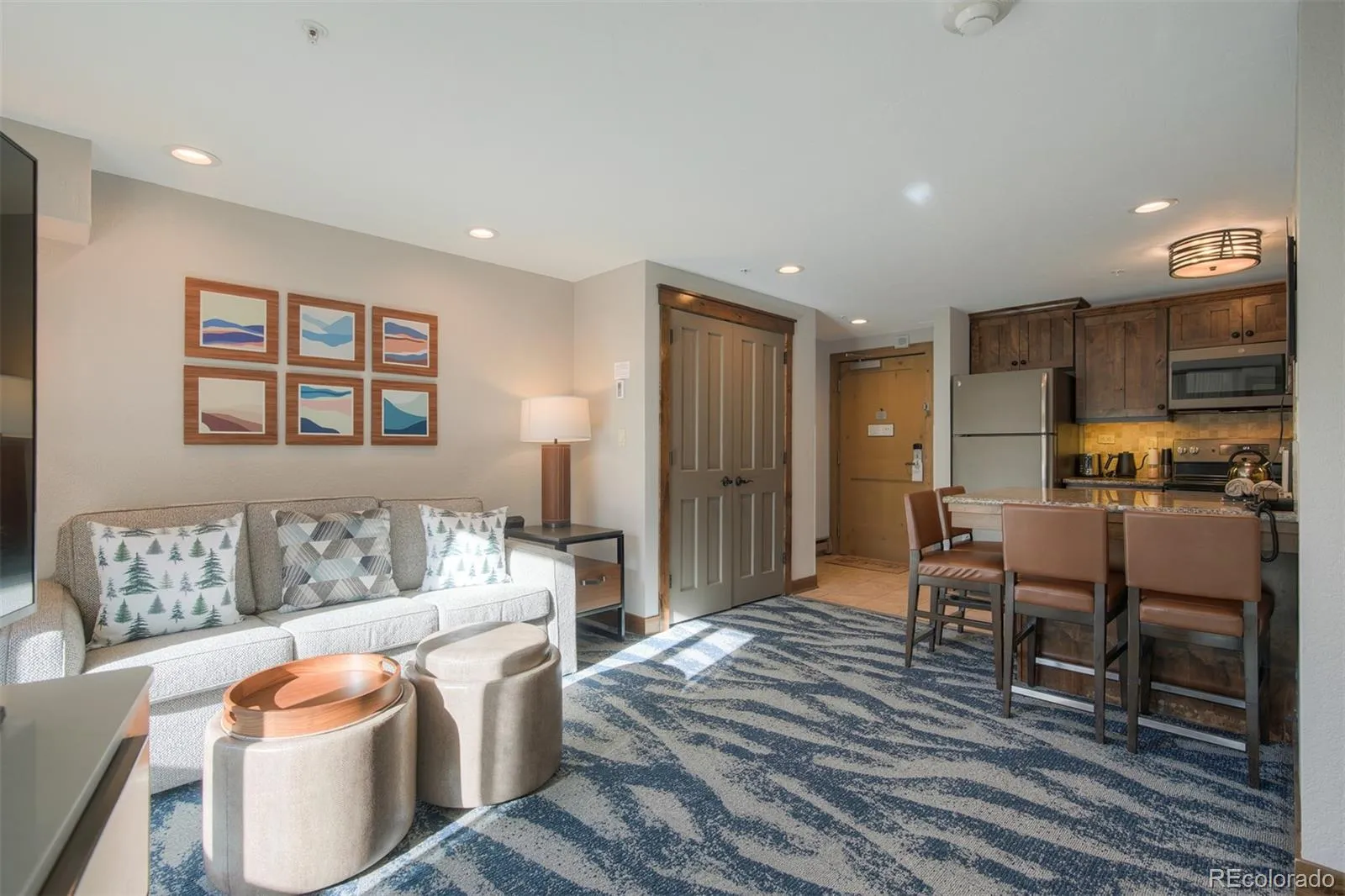 Welcome to a rare opportunity to own a wholly owned, ski-in/ski-out residence in the heart of Breckenridge at the sought-after Marriott Vacation Club. Overlooking the river, Maggie Pond, and the ski slopes, this beautifully updated deluxe studio offers an exceptional blend of location, lifestyle, and income potential. The bright, thoughtfully designed L-shaped studio features an oversized window with direct slope views, filling the space with natural light and mountain scenery. The efficient layout separates the kitchen and sleeping area and comfortably accommodates up to four guests with a premium Marriott queen sleeper sofa. Built to last, the unit features thick walls and no popcorn ceilings, highlighting quality construction rarely found in mountain properties. Offered fully furnished and accessorized, this turn-key condo boasts a strong rental history, including $58,683 in self-managed rental net income in 2025, with rents sufficient to cover HOA dues. Owners may choose hands-on management or enjoy effortless professional rental management through Marriott. This condo is located in Breckenridge’s Resort Zone, allowing for short-term rentals with no waiting list or licensing delay. Resort-style amenities include a full-size outdoor heated pool, four hot tubs, fitness center, 24/7 front desk and check-in, free unassigned owner parking, and laundry facilities conveniently located on the unit’s floor. Weekly activities for kids and adults enhance the resort experience. Situated in a quiet corner of the property next to Maggie Pond, the condo offers peaceful surroundings while remaining just steps from the slopes. A short walk via the garage pool exit leads directly to Main Street Breckenridge and the Village, placing dining, shopping, and entertainment within easy reach. Owners may also deposit weeks into Interval International for travel exchanges worldwide. A rare chance to own a true Breckenridge ski property with premier resort living!