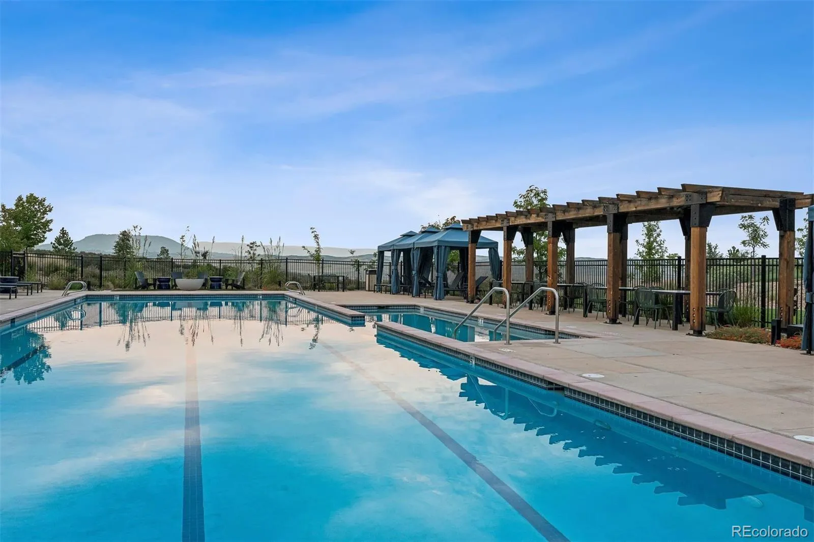Residents enjoy a lock-and-leave lifestyle with resort-style amenities including a pool and hot tub, fitness center, pickleball and tennis courts, clubhouse, and scenic trails—just minutes from downtown Castle Rock and I-25.