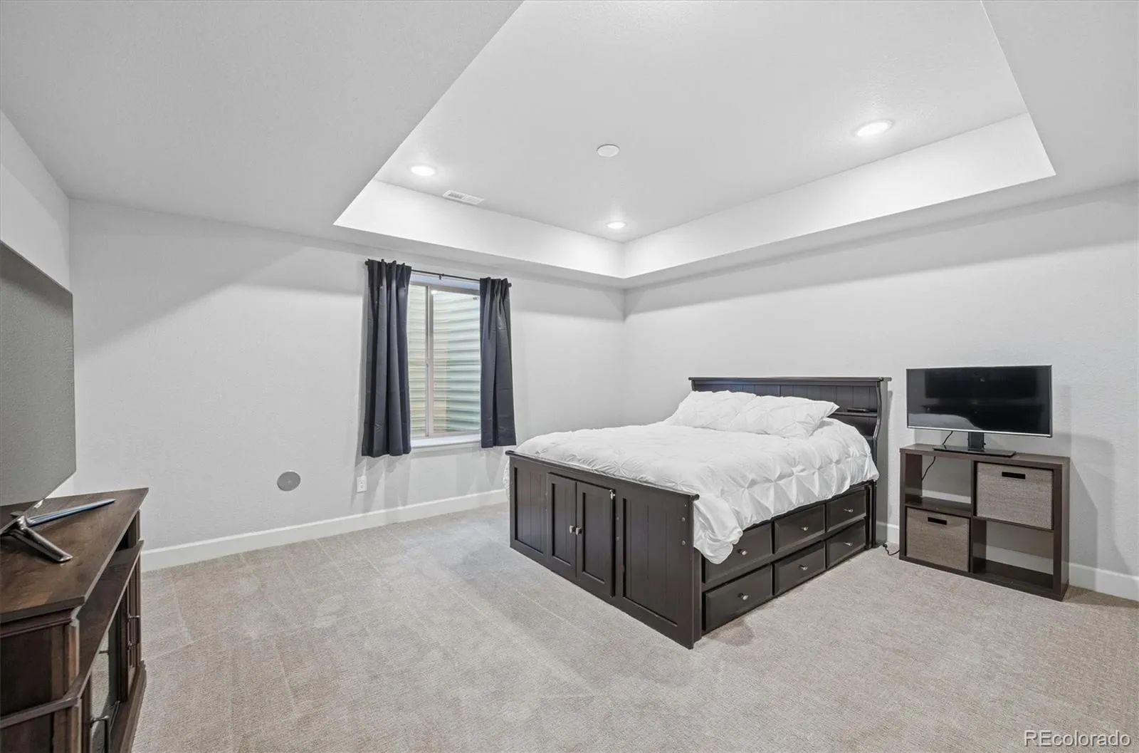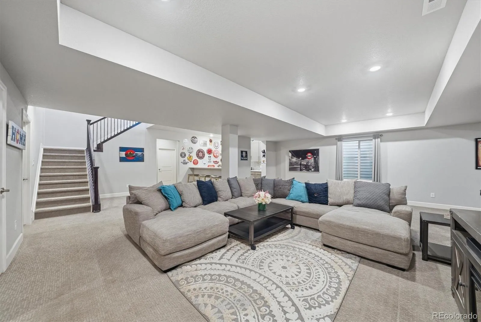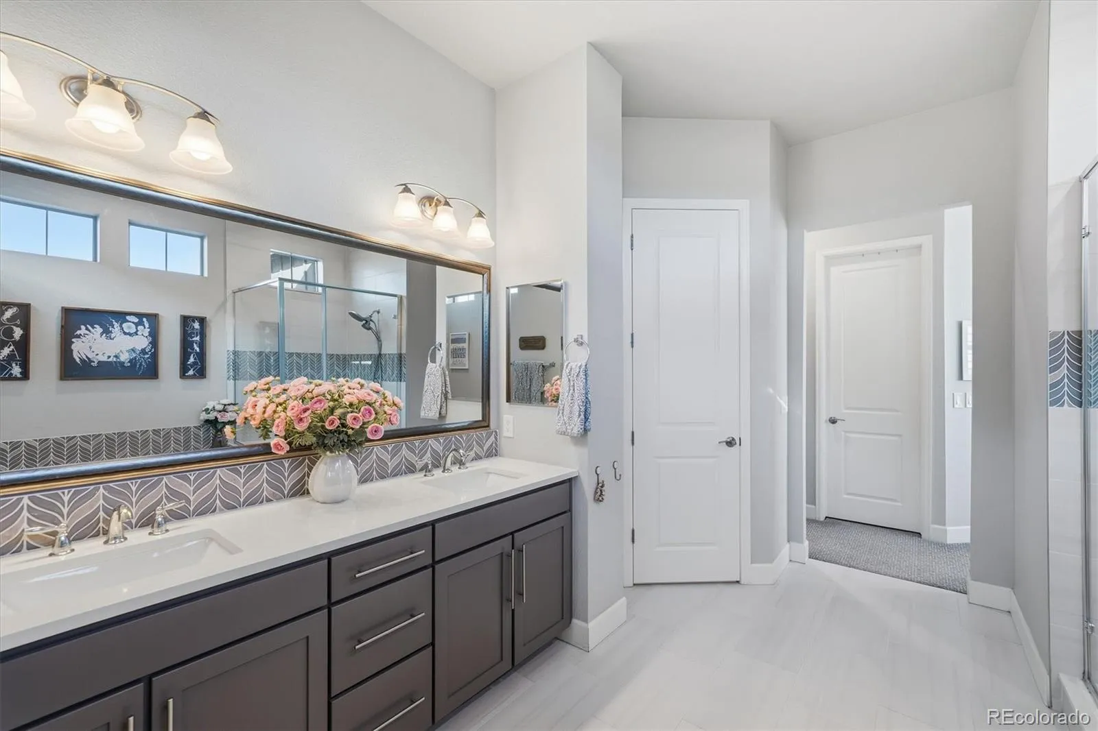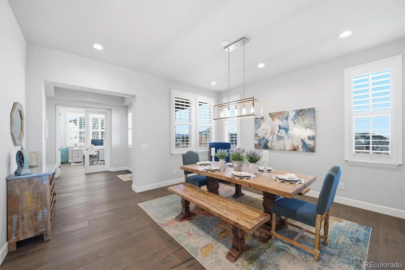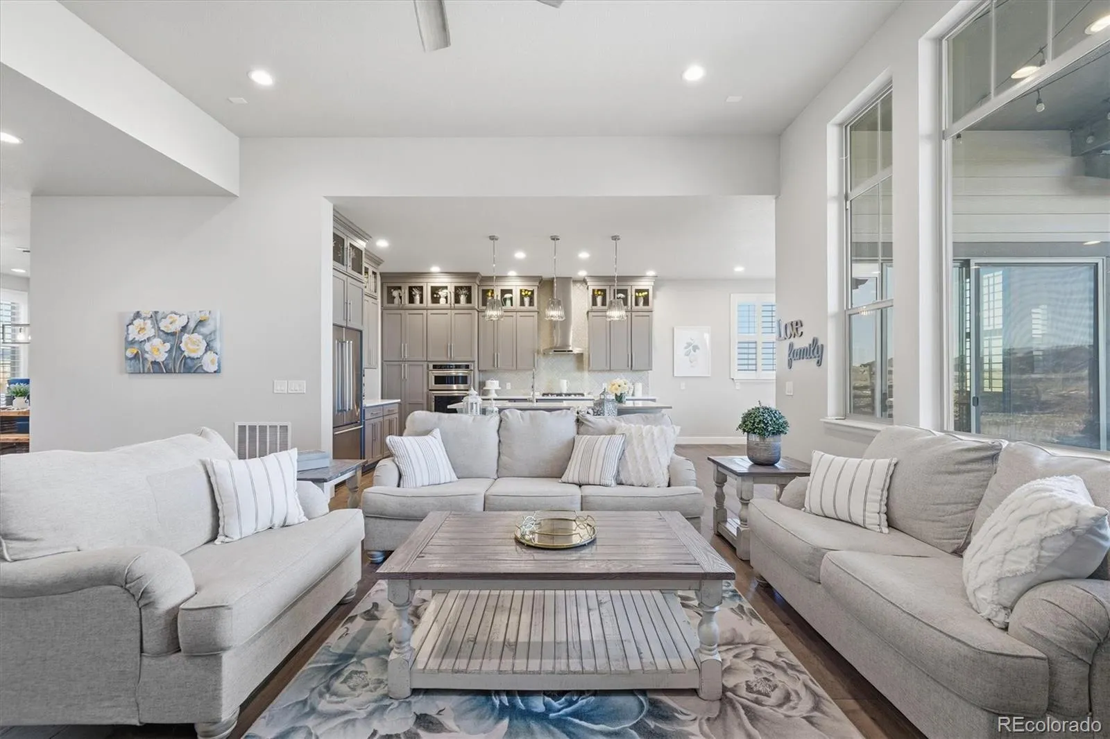 This beautifully designed ranch-style home blends comfort with timeless style & is ideally positioned backing to peaceful open space, offering privacy, tranquility & scenic views.. Thoughtfully upgraded throughout, the open-concept layout seamlessly connects the great room, kitchen, & breakfast nook. The great room is anchored by a striking gas fireplace & enhanced by wide-plank luxury vinyl flooring, upgraded lighting & fixtures, ceiling fans, & abundant natural light. The gourmet kitchen features quartz countertops, stainless steel appliances, soft-close cabinetry, a spacious pantry, & a butler’s pantry with wine fridge. Adjacent dining areas offer excellent flow for gatherings or relaxed evenings at home. The private primary suite is a true retreat, showcasing serene open-space views & a spa-inspired five-piece bath. Smart bedroom separation enhances privacy & versatility, including a front bedroom with en-suite ¾ bath—ideal for guests or multigenerational living—along with additional secondary bedrooms & flexible spaces perfect for a home office. 8ft-foot doors throughout add to the home’s elevated feel. The finished basement significantly expands the living space, featuring a wet bar with refrigerator, sink, & microwave, additional bedrooms with walk-in closets, a full bath, &exceptional storage. Outdoor living truly shines with a professionally landscaped backyard designed for year-round enjoyment. Highlights include a covered patio with ceiling fan, extended paver patio, built-in gas fire pit, paved walkways, all overlooking the open space. Additional features include a 3-car garage, mudroom/drop zone, laundry room with sink and extra cabinetry, plantation shutters. Located in the highly desirable Sterling Ranch community, residents enjoy miles of trails, parks, community amenities, & easy access to Chatfield Reservoir, Roxborough Park, golf courses, and a quick commute.