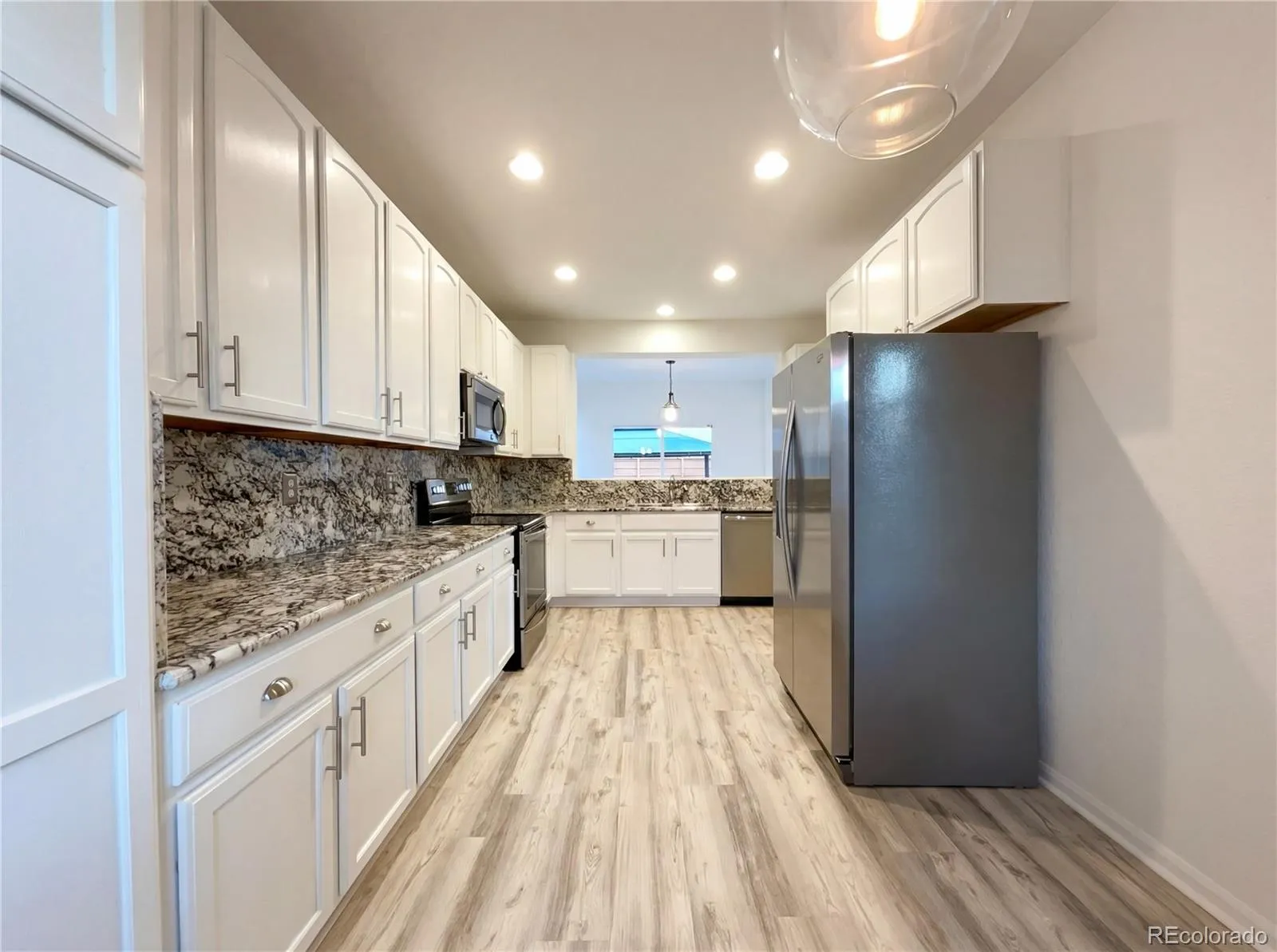 Step into the warmth of 10468 Olathe Way, where a cozy fireplace awaits you in the living room. The kitchen is a chef’s dream with all stainless steel appliances and an accent backsplash that adds a touch of elegance. The primary bathroom is a sanctuary with double sinks, a separate tub, and shower for ultimate relaxation. The home has been refreshed with fresh interior paint and partial flooring replacement, giving it a modern and clean look. Outside, a patio provides the perfect space for outdoor dining or relaxation, and a fenced-in backyard ensures privacy. This home is a perfect blend of comfort and style.. Included 100-Day Home Warranty with buyer activation