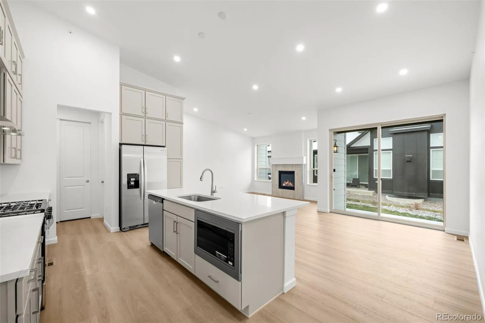and a cozy gas fireplace, great for entertaining or relaxing. The upgraded canopy kitchen features stainless steel
