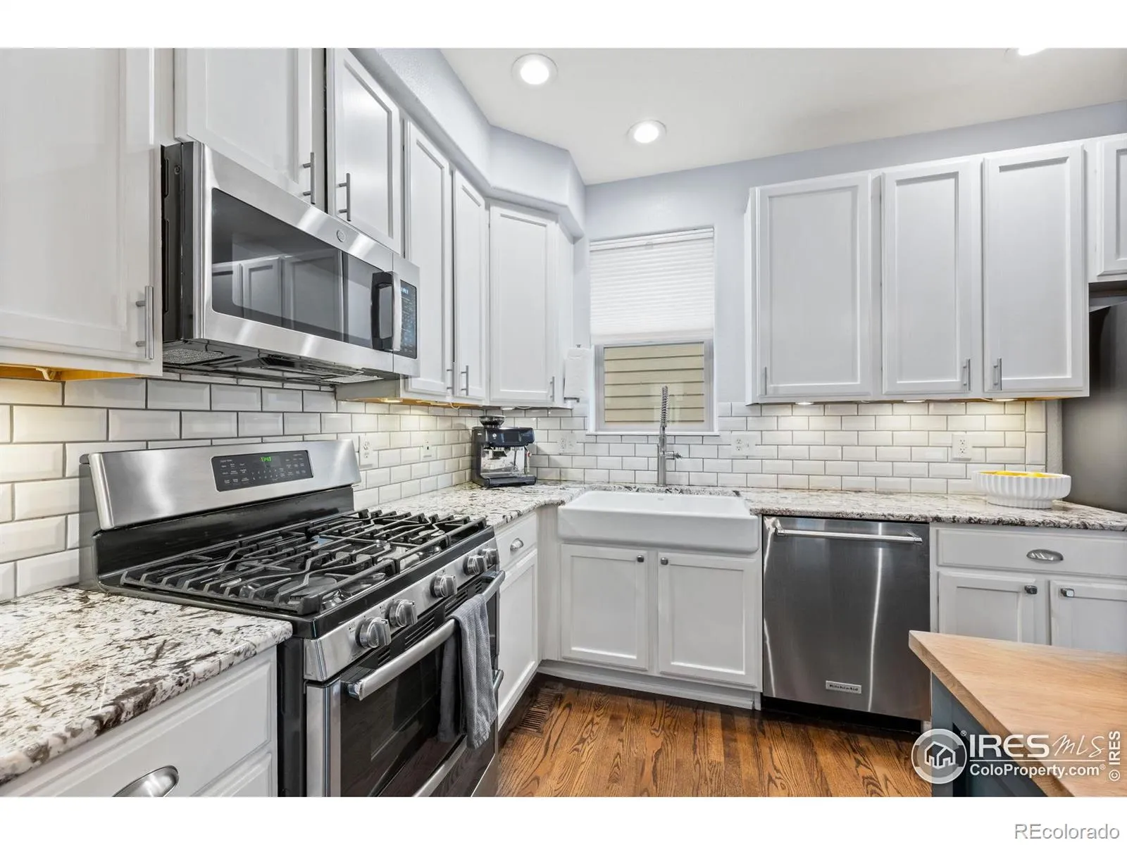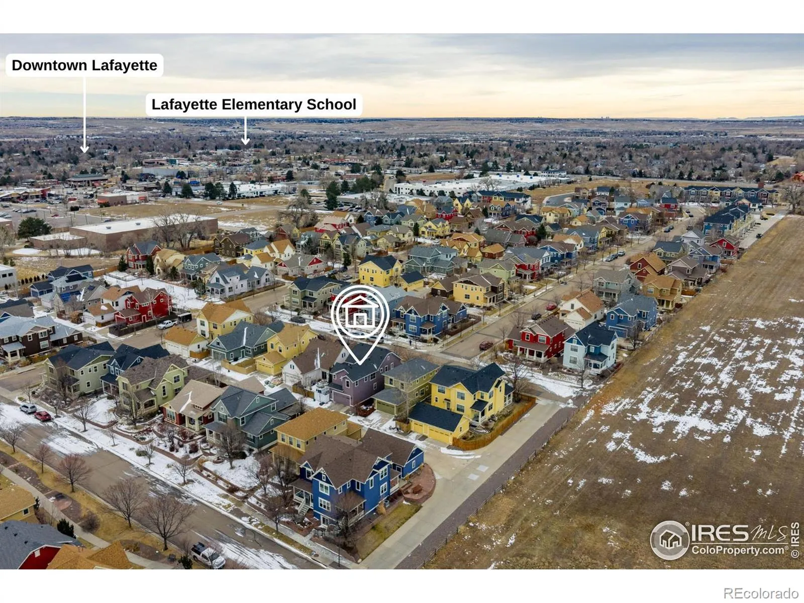 Set within Lafayette’s Anna’s Farm neighborhood, this home welcomes you with a charming covered front porch, gleaming hardwood floors, and a dramatic foyer featuring a wooden staircase. A separate office at the front of the home offers flexibility to serve as a private main-floor dining room, if desired. The layout is anchored by a lovely living room that flows seamlessly into the kitchen and eat-in area, while the adjacent patio invites easy outdoor dining and entertaining. Upstairs, the second level is highlighted by a primary suite with a walk-in closet and private bath, where views of Longs Peak truly stand out. Two secondary bedrooms share a nearby hall bath, while a fourth bedroom is thoughtfully set apart with its own ensuite bathroom. A central loft provides versatile space ideal for a play area or study zone. The finished basement expands the home’s nearly 3200 sqft of living space with a comfortable family room, a 5th bedroom and bathroom, plus additional storage. Ideally located with easy access east to Old Town Lafayette via Baseline Road, west to Boulder & Louisville, and south to the open space & trails surrounding Waneka Lake.