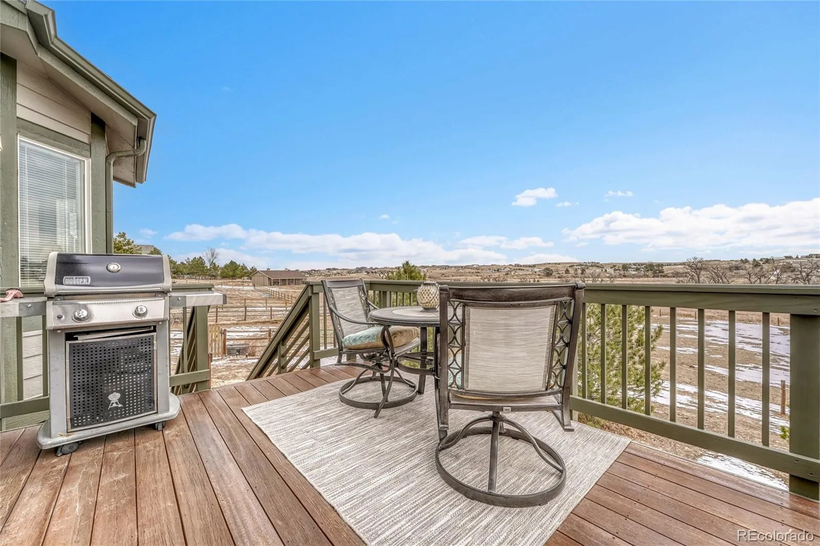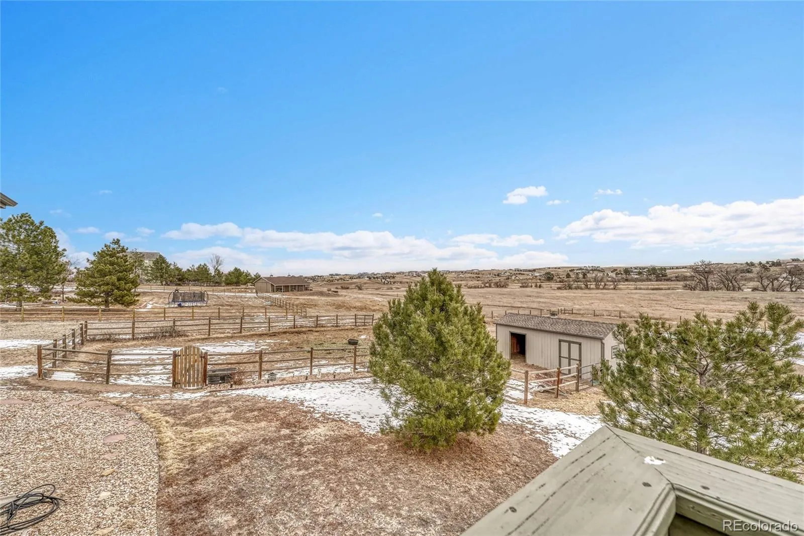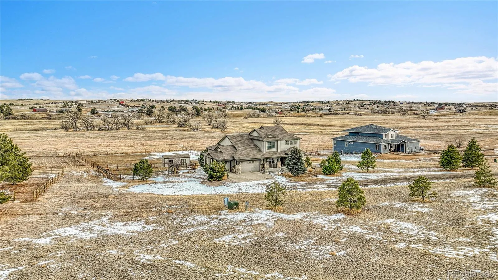 Premium 5-acre horse property that backs to a beautiful & dedicated 164 Acre Open Space, offering an exceptionally quiet setting rarely found this close to town…Ideal balance of privacy, open space, and convenience, allowing for true Colorado acreage living while remaining within easy reach of Parker, Aurora, and Centennial amenities…schools, shopping, and dining. This well-designed two-story home features a main-floor Primary Suite, offering comfort, accessibility, and ease for everyday living. The upper level includes 2 additional bedrooms along with a spacious loft, perfect for a study area/media room, that can adapt to a variety of needs, plus additional Full Bath. The heart of the home is the large kitchen, which opens seamlessly to the great room, creating an inviting and functional layout ideal for entertaining, gatherings, or relaxed daily living. Generous room sizes, abundant natural light, and a practical floor plan provide a comfortable living environment. An oversized three-car garage offers ample room for vehicles, recreational equipment, tools, and additional storage. One of the standout features of the property is the huge walk-out basement, offering nearly 2,000 square feet of unfinished space. This expansive lower level presents outstanding potential for future expansion, whether for additional bedrooms, a recreation room, home gym, theater, guest suite, or custom workshop, significantly enhancing the home’s long-term value and versatility. The 5.018-acre parcel offers wide-open space and flexibility, ideal for horses, outbuildings, gardens, or simply enjoying the natural surroundings and open skies. The land provides a rare sense of seclusion and tranquility while still being part of an established and sought-after acreage community. Properties of this size, location, and setting are increasingly difficult to find. Experience the quiet, freedom, and lifestyle that Elkhorn Ranch is known for in one of Parker’s most desirable rural neighborhoods.
