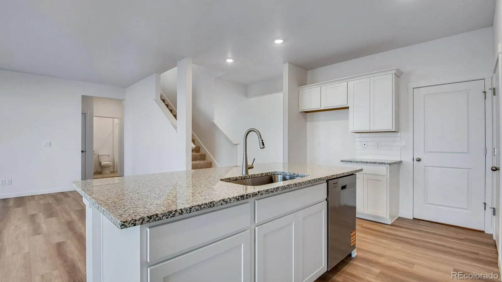 Contact builder today about Special Financing for this home – terms and conditions apply. Spacious 5 Bedrooms, 3 baths, Loft, Study + 2 Car! Prestigious Douglas County Schools! Open flow between great room, dining, and kitchen. Light and bright decor features including classic white cabinetry with crown molding, beautiful granite kitchen counters with subway tile back splash, stainless appliances, tile bath floors & quartz bath countertops. This home offers an extensive list of features including 8′ front door, 2 panel interior doors and craftsman style trim, A/C, front yard xeriscape, 8′ tall garage doors, plus Smart home features: keyless entry, video doorbell, Smart lighting, thermostat, and Smart speaker! Deako customizable lighting switches! Come enjoy the open space and peace and quite of of our community! ***Estimated Delivery Date: April. Photos are representative and not of actual property***