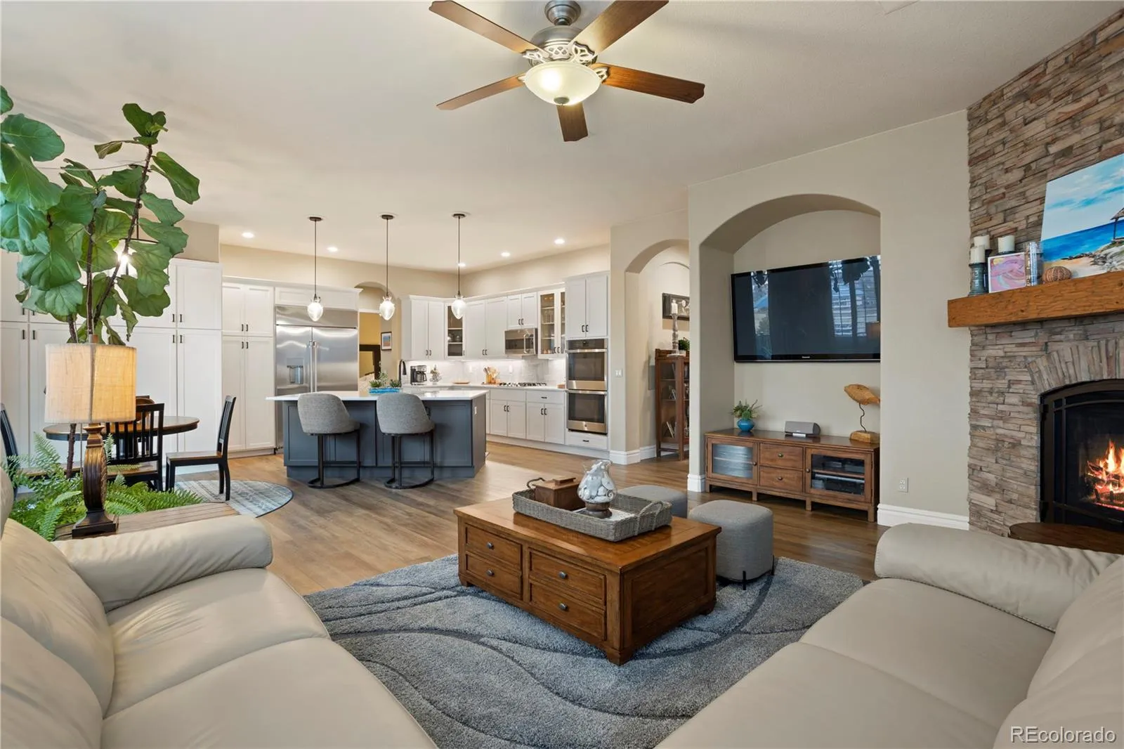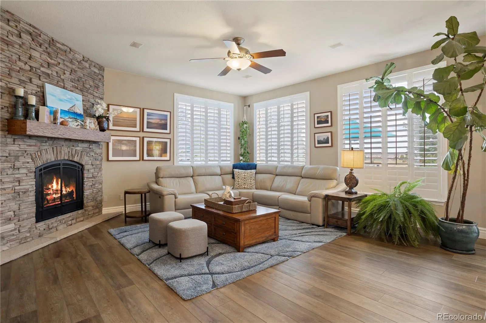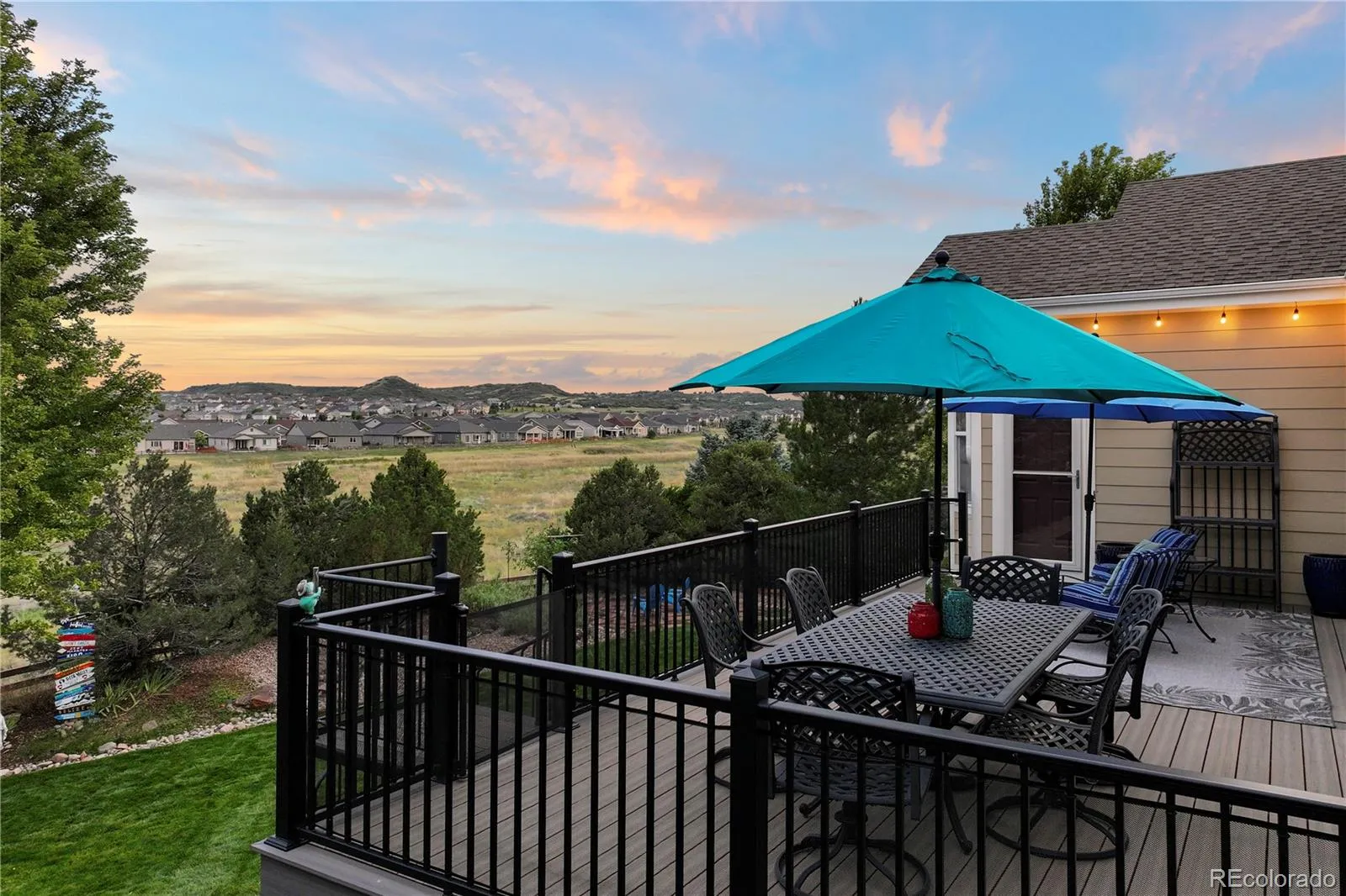 Welcome to this beautiful ranch style, 3 bedroom, 3 bath home in the highly sought-after Pradera Golf Community in Parker! This gorgeous home offers an amazing location with open space behind where you can enjoy peaceful surroundings and frequent wildlife sightings. This popular neighborhood is a premier golf community with a private golf club, known for its stunning landscapes and challenging course, and also boasts a variety of amenities, including a neighborhood pool. Inside, the home features a thoughtfully updated gourmet kitchen with a built-in refrigerator and double ovens, a remodeled brick fireplace, newer patio door, luxury vinyl flooring, plantation shutters throughout the first floor, and the added comforts of a whole-house water filtration system and soft water system. A fantastic newer deck with a spiral staircase creates the perfect outdoor retreat to relax and take in the serene surroundings. Conveniently located close enough to both Denver and Colorado Springs, this home offers easy access to shopping, dining, and entertainment while providing a peaceful escape from the hustle and bustle of city life.