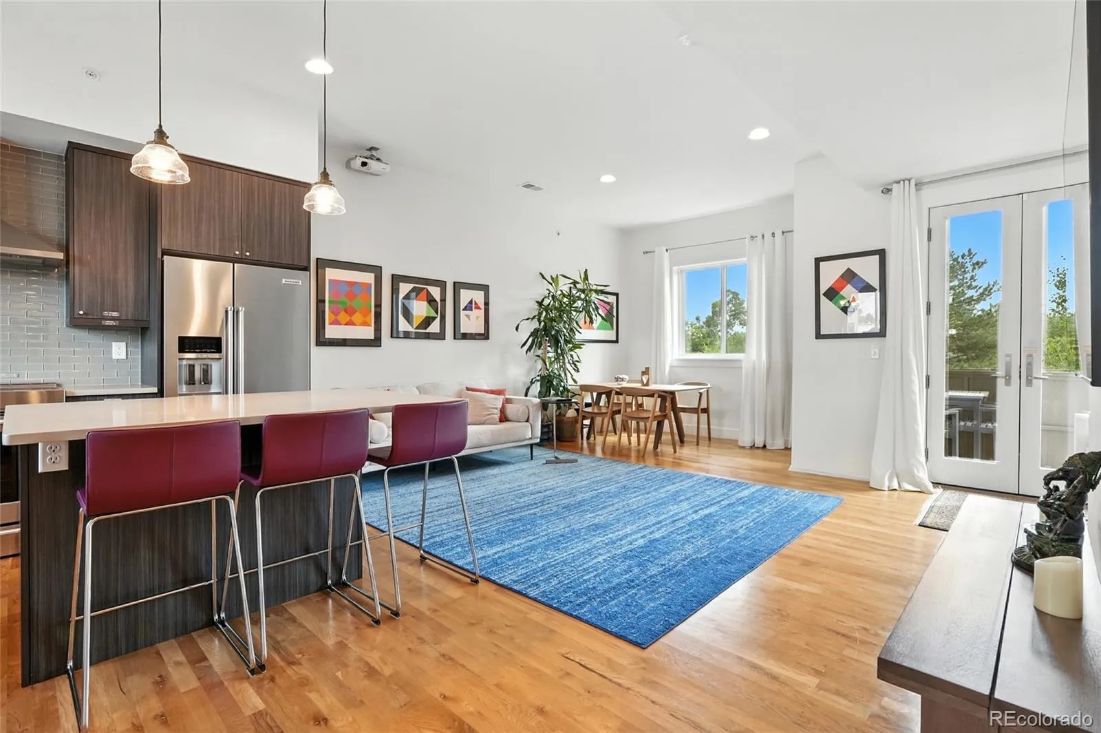 Centrally located, self-powered, ultra modern masterpiece awaits in this sleek and stylish Boulder townhome that brings virtually no maintenance needs. Thirteen cutting-edge solar panels (and 13 independent micro-inverters!) supply all your energy needs and make you money for most of the year in this tightly-built, all-electric energy efficient home. Walking for a minute or two on the Goose Creek Greenway takes you to Whole Foods, two climbing gyms, restaurants, tech offices and so much more, and yet it feels totally secluded – while staying in the home is whisper quiet (with some of the highest R-value insulation you can get). In the winter, the hassle-free whole-home humidifier brings health and well-being to any resident or guest, especially when coupled with an air exchange unit and a powerful whole-home water filter (and double filtration from the fridge). || As you enter, eyes are drawn up to lofty vaulted ceilings, and down to hand-crafted flooring, all flowing together in an open and airy floor plan. Enjoy cooking on the high-end induction stove (making for seamless cleanups!), in a stunning kitchen that will impress anyone with its modern finishes, including a glass-tiled backsplash, quartz countertops and stainless-steel KitchenAid appliances. The kitchen seamlessly connects with a spacious living room, illuminated with an abundance of natural light. French doors lead to an outdoor South-facing balcony where you can enjoy sipping morning coffee while admiring the Flatirons, or even build little gardens in, as plants grow abundantly there. Two spacious bedrooms are complemented by two updated bathrooms, including a conveniently-situated washer and dryer set. An attached garage with bike storage offers even more shelves, racks, and plenty of space for keeping essentials. A commercial restaurant sink allows you to easily wash pets, shoes or dirty gear after your typical Colorado outdoor adventure. SOLAR ARRAY: not included in the sale (seller will negotiate)