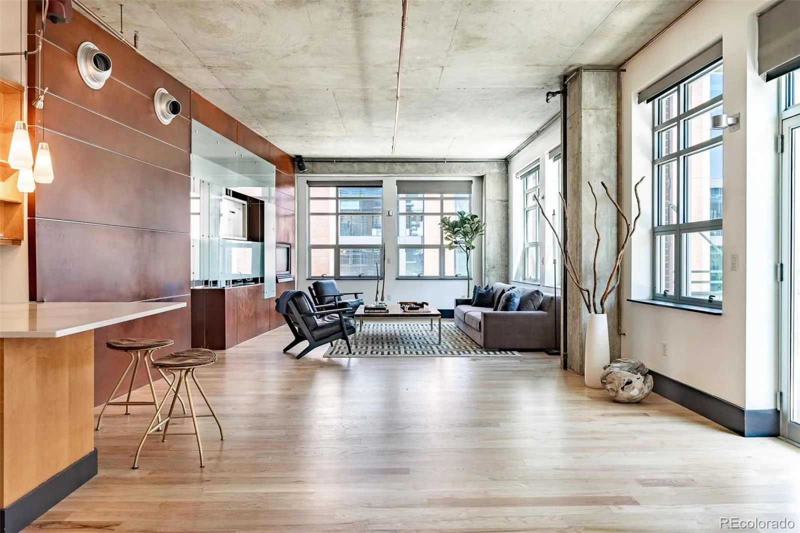 Luminous downtown living awaits in this stylish LoDo escape. One of only 18 residences in the building and positioned in a corner placement, this residence is striking w/ industrial-chic design. Abundant natural light floods an open and airy layout through vast windows. Handsome hardwood flooring extends gracefully underfoot, from a sun-filled dining area to a sleek kitchen. The home chef is treated to marbled white granite countertops, tech pendant lighting and stainless steel appliances including a double oven, gas range and hood. A living area is grounded by a dual-sided fireplace opening to the primary suite w/ dual walk-in closets. Adding an artistic statement, a custom leather wall w/ glass paneling features a built-in TV mount and TV. Tranquil relaxation awaits in a five-piece bath complete w/ heated floors and a soaking tub. An additional bedroom and a den or office complete this functional layout. Residents enjoy an ideal location w/ proximity to Union Station and Coors Field.