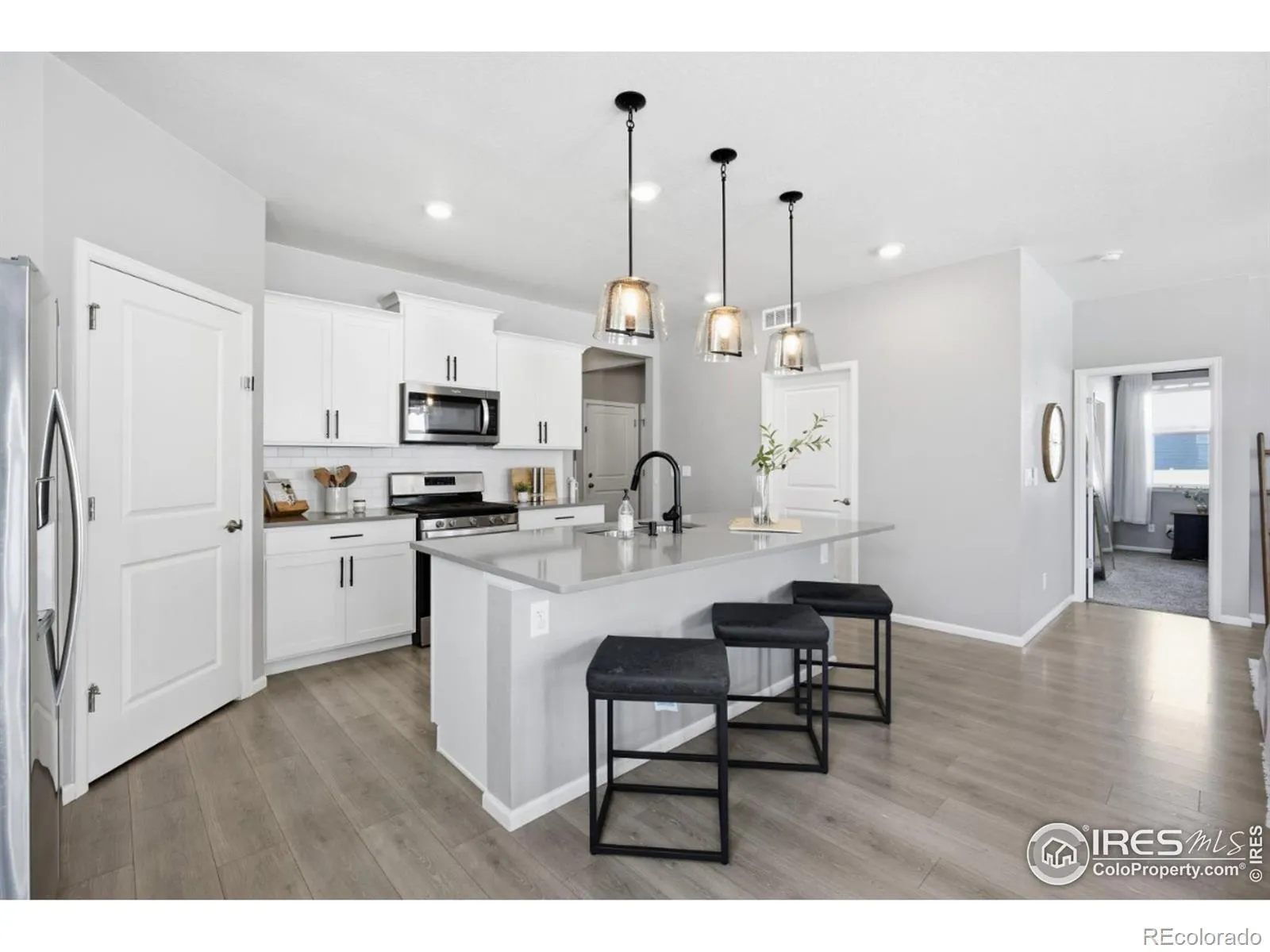 Welcome to 1572 Illingworth Drive an upgraded and move-in ready ranch in a convenient Windsor location with easy access to Fort Collins, I-25, Costco, shopping, and amenities. The thoughtful single level layout offers 3 bedrooms and 2 baths with an open main living space anchored by a warm yet modern electric fireplace with built in storage. Quartz counters, upgraded lighting, cabinet hardware, laminate flooring, and added hallway board-and-batten detail introduce warmth and character throughout, making this home feel better than new. The unfinished basement with rough-in provides room to grow, ideal for future living space, storage, or hobby areas, while the 3 car garage includes a built-in bench for added storage and functionality. Step outside to a nice backyard retreat complete with a full privacy fence, privacy wall, and patio cover with removable mesh enclosure for extended seasonal enjoyment. A neighborhood park just down the street adds convenience and outdoor recreation close to home. Additional features include an new active radon system and sump pump for peace of mind. With no HOA, a low metro fee $150 annually, and all the big upgrades already done, this home blends convenience, style, and value ready for its next owner to simply move in and enjoy.