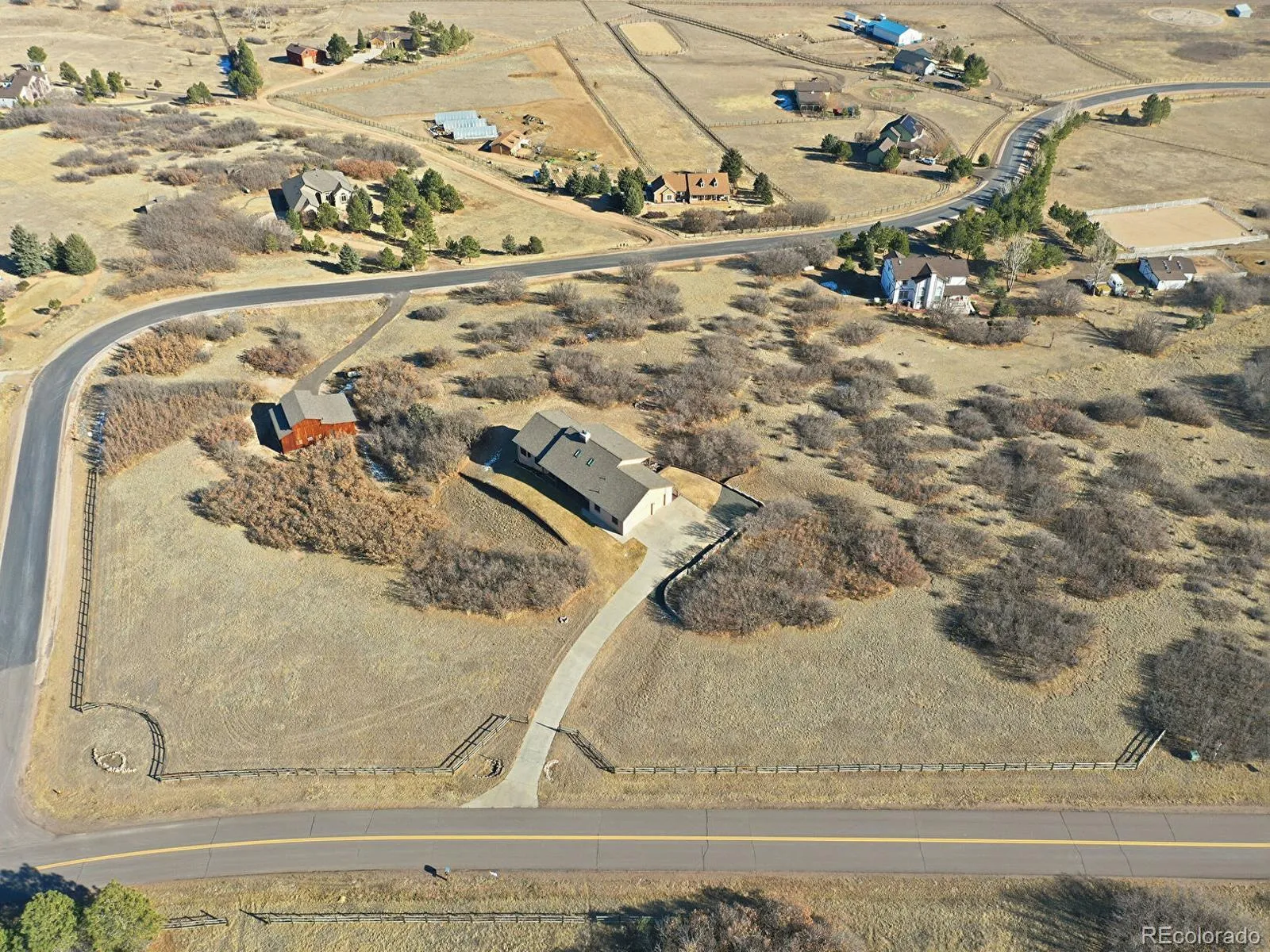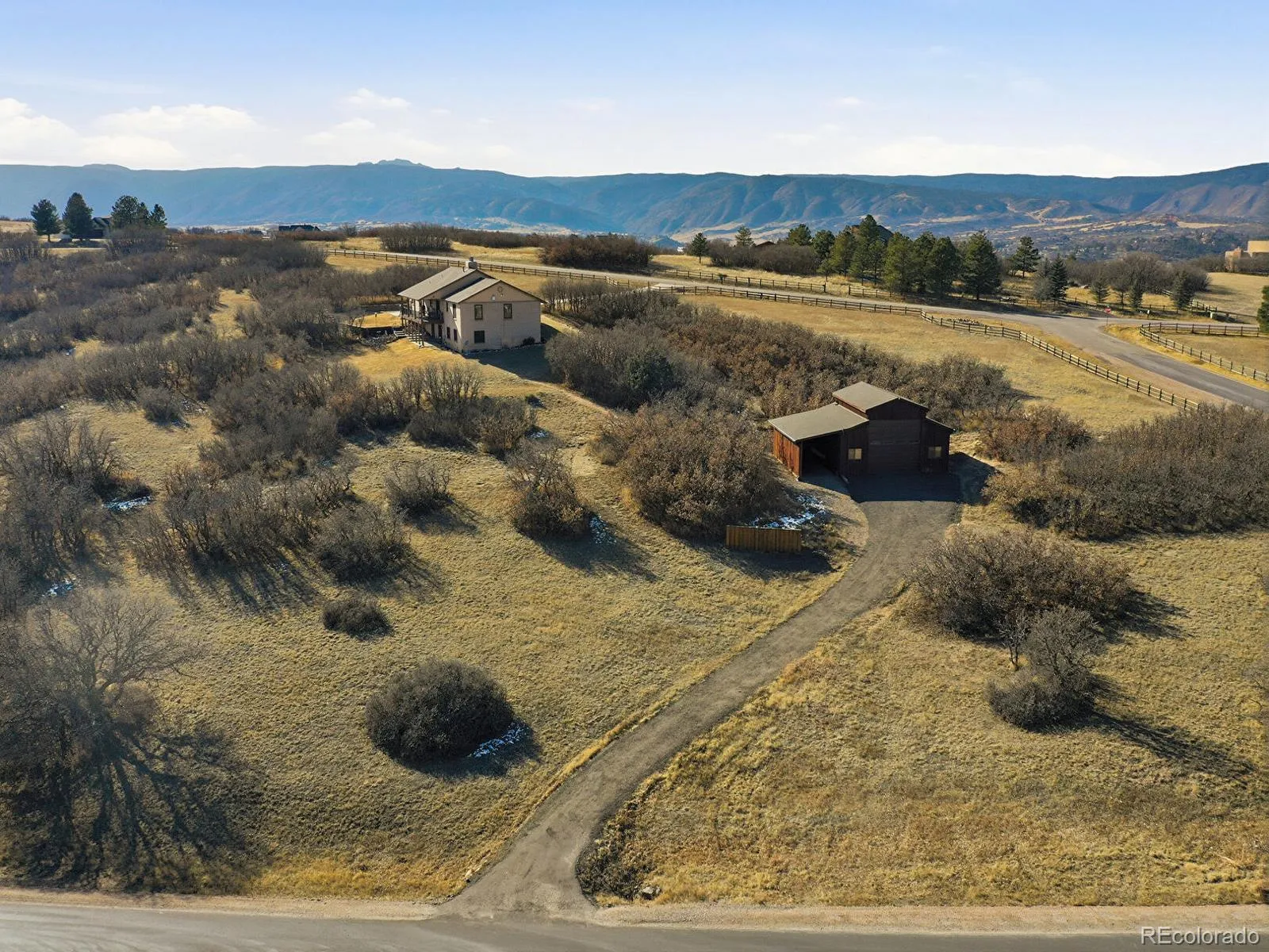 *OPEN HOUSE Sunday 2/1 10-12* Welcome home to your dream property with nearly 6 acres in the heart of Christy Ridge, Sedalia! With a whopping 3-car attached garage PLUS an oversized barn and workshop featuring its own separate driveway and dedicated RV storage, you’ll have plenty of room for all your toys—whether it’s cars, campers, or gear for adventures in the great Colorado outdoors. This classic brick ranch offers wide-open space views at every turn, featuring 3 bedrooms, 4 baths, and a sprawling walkout basement for next-level entertaining. Hardwood floors, dual gas fireplaces and warm wood trim offer a cozy feel to the main level, while skylights, bay windows and sweeping views bring a bright-and-airy feel to everyday living. The kitchen features stainless-steel appliances including a gas range, stunning granite countertops, and a spacious breakfast bar, while the adjacent family room basks in the glow of French doors leading out to the generous covered deck. The home’s open floorplan is perfect for hosting with a formal living room and dining room, while three-main level bedrooms keep loved ones close at hand. The basement shines with room for an office, multiple gaming spaces, a workout area, an oversized family room, wet bar with full-size fridge and a spacious built-in bar! With a laundry room, full bath and loads of storage, this extended living space is second to none. Step outside to a covered patio, perfect for hosting summer barbecues or sharing a beverage while soaking up the sights of your land. With nearly 6 acres to enjoy framed by stunning mountain and open space views, the sky is the limit on building your dream! Live off the grid with propane heating. Just 20 minutes to Castle Rock and 30 minutes to DTC, this one-of-a-kind property won’t last. Schedule your tour today!