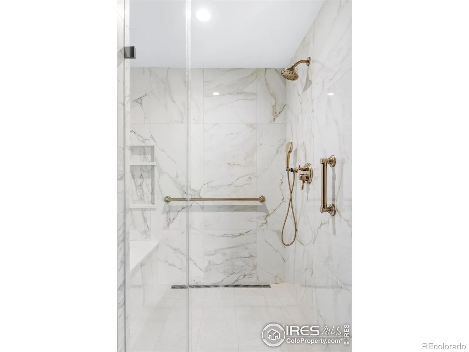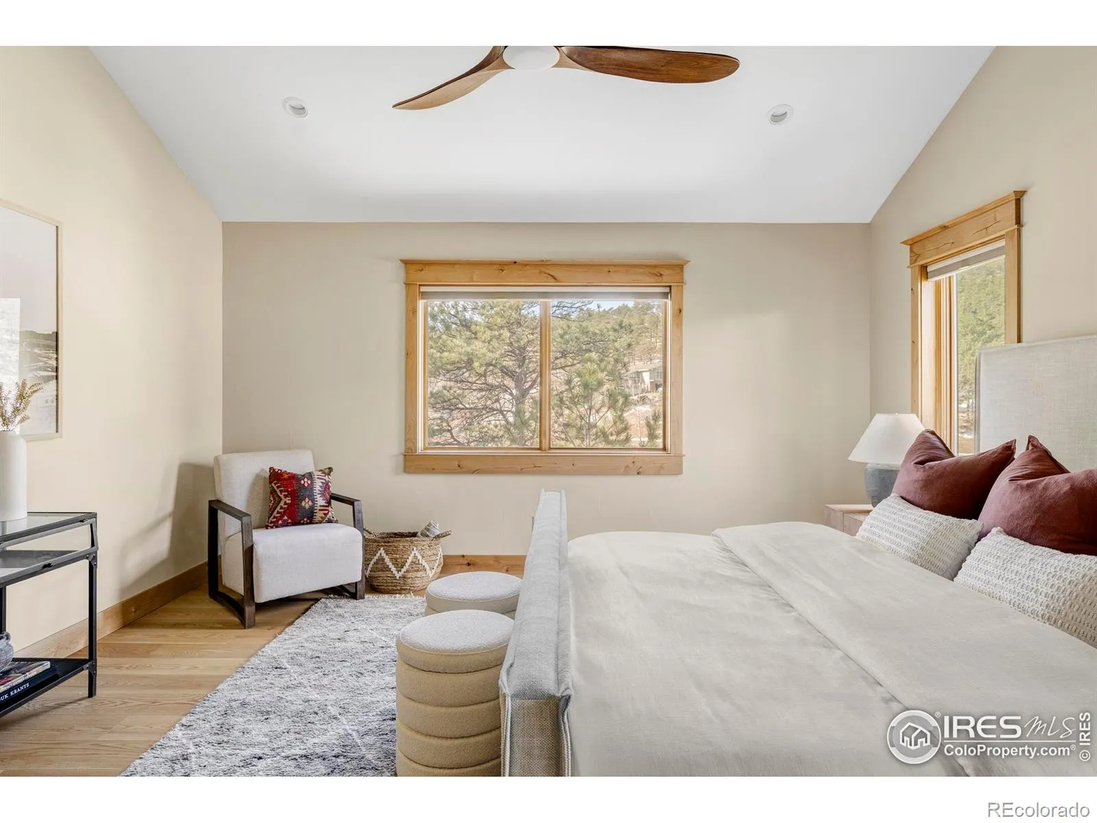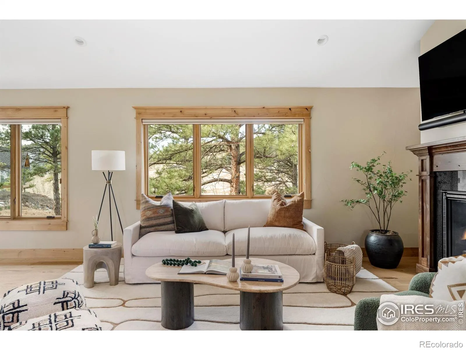 Tucked in Boulder’s Lake of the Pines, the city’s only gated community, this newly rebuilt waterfront retreat pairs modern luxury with timeless design. Completely reconstructed in 2024-2025, the home showcases meticulous craftsmanship, all-new systems, and thoughtful design. Set on 1.25 wooded acres with 60 feet of private water frontage on Allens Lake, this rare offering captures lakeside serenity minutes from downtown Boulder. Inside, sunlit interiors feature open-concept design with rich natural materials and refined finishes. A custom spiral staircase and elevator access both levels. The chef’s kitchen boasts Tharp custom cabinetry, large island, walk-in pantry, and Wolf, Sub-Zero, and Miele appliances, complemented by elegant stone and wood accents. The main-level primary suite offers serene lake views, spacious walk-in closet with knotty alder, and spa-inspired bath with ADA-accessible dual vanity and zero-clearance shower. A secondary bedroom and powder room complete this level.The walk-out lower level features three bedrooms, large recreation room, and well-appointed laundry with smart GE appliances. The upper level provides a private office with treetop views.Every detail reflects new-build quality: solid knotty alder doors and trim, hardwood and Calacatta Paonazzo tile, handmade cabinetry, and integrated smart home system with Echo Hubs, Ring security, and Sonos sound. All-new mechanicals, Bosch heat pumps, Generac generator, and all-electric design deliver modern comfort. Fire-resistant paver patios and towering evergreens provide privacy, while gentle slope leads to private lake access, perfect for kayaking or paddleboarding. Lake of the Pines residents share scenic Allens Lake, volleyball court, gazebo, grills, and watercraft storage, all near Boulder’s downtown and trailheads. Waterfront homes here are rarely available, a once-in-a-lifetime opportunity combining new construction, seclusion, and connection to nature.
