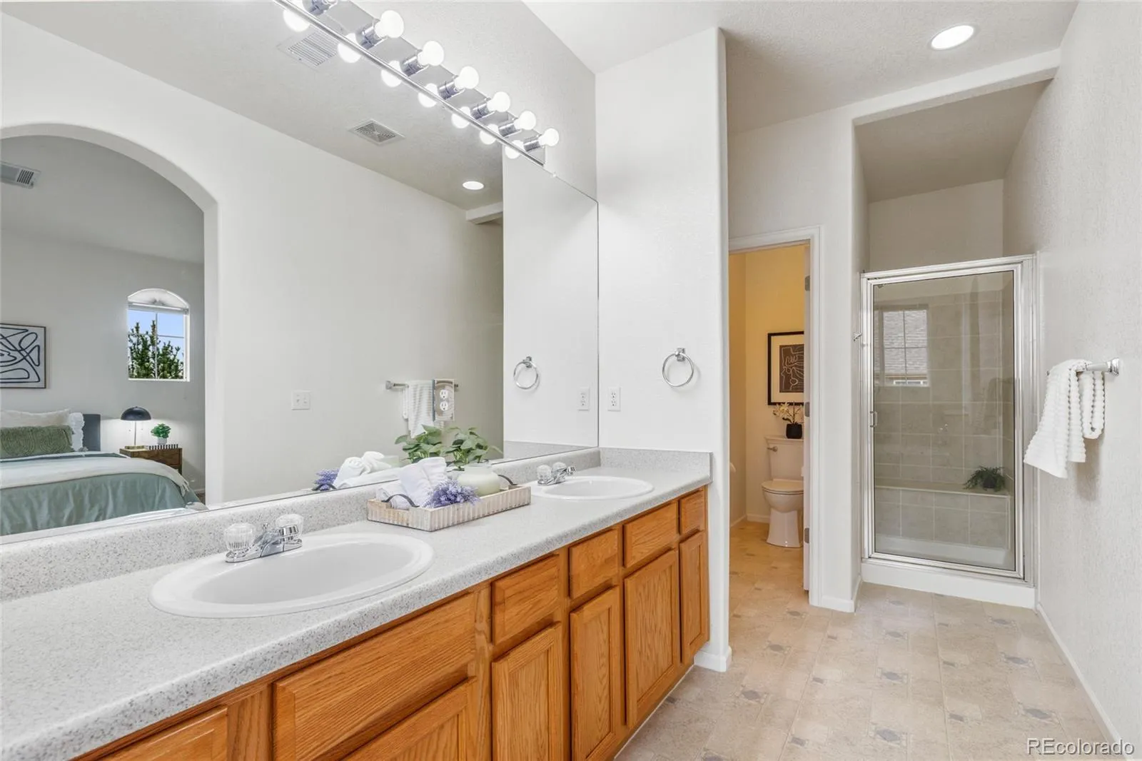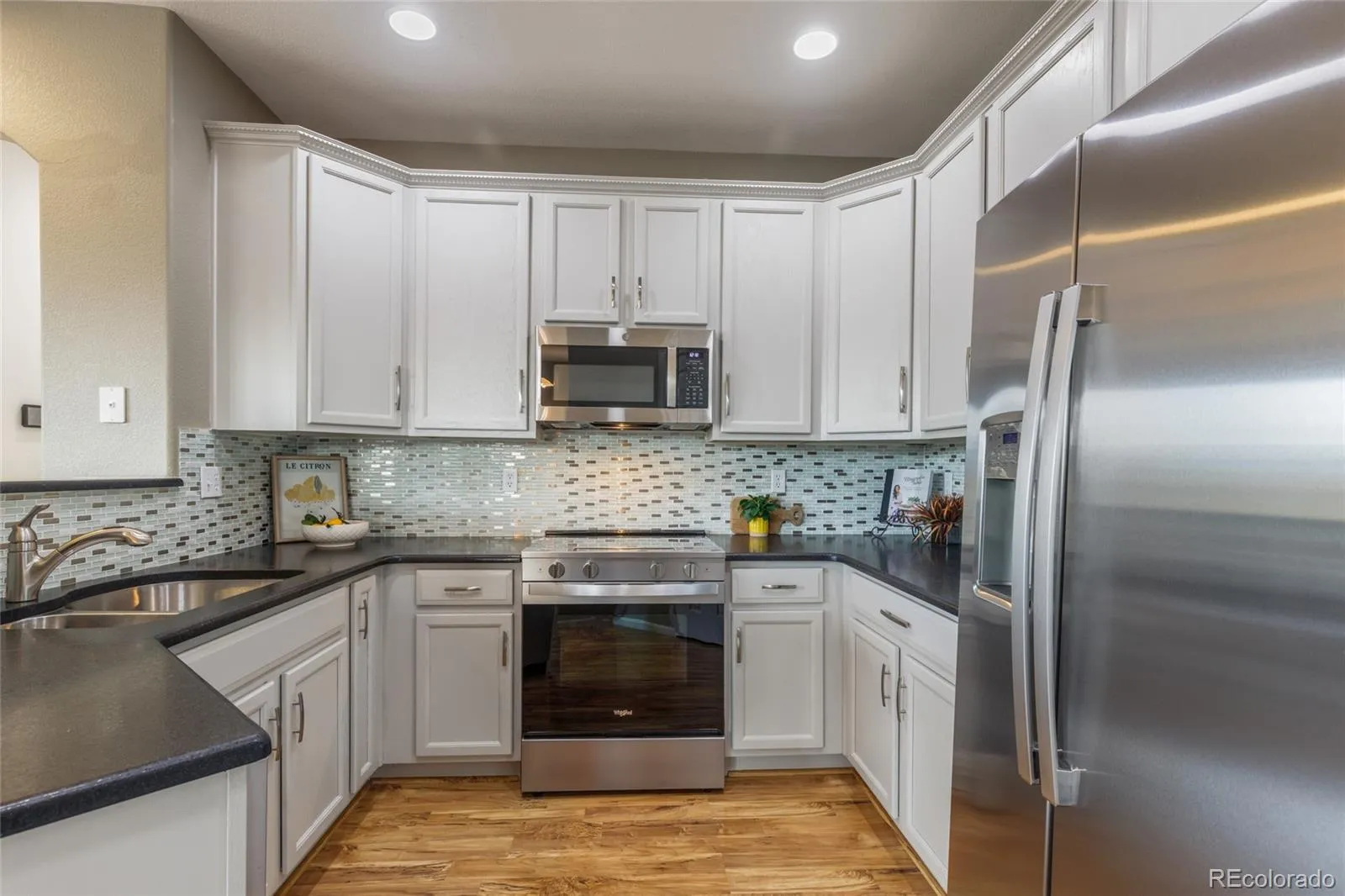 Welcome to this sunny, beautifully maintained 2-bedroom, 2-bath condo with an open layout and high ceilings that create a light, airy feel throughout. The kitchen opens seamlessly to the living space and offers stone countertops, a designer backsplash, a brand-new oven, and stainless steel appliances approximately two years old. This corner unit overlooks the park and playground, providing exceptional privacy along with open mountain views. Step outside to the spacious balcony—perfect for morning coffee or relaxing with evening sunsets. The spacious primary bedroom features a large, picturesque window with abundant natural light and includes a 5-piece en-suite bath and a large walk-in closet. A second bedroom and full bath offer flexibility for guests, while a bonus room provides ideal space for a home office, art studio, or workout area. The home has brand-new carpet throughout and is truly move-in ready. Other major updates include a high-efficiency, two-stage furnace and air conditioning system installed in 2020 with a smart thermostat, along with upgraded Marvin Infinity windows across the front of the home. Enjoy the ease of one-level living, a large two-car garage, and additional nearby parking. Community amenities include a pool and hot tub, clubhouse, shared gazebo, and tennis courts—all in a convenient, park-side setting. Ideally located in Westminster near parks, trails, shopping, dining, and with easy access to I-25 for commuting to Denver or Boulder. You’ll love being part of this welcoming community and enjoying easy, turnkey living. **OPEN HOUSE SATRUDAY 1/31/26 11am – 2pm **