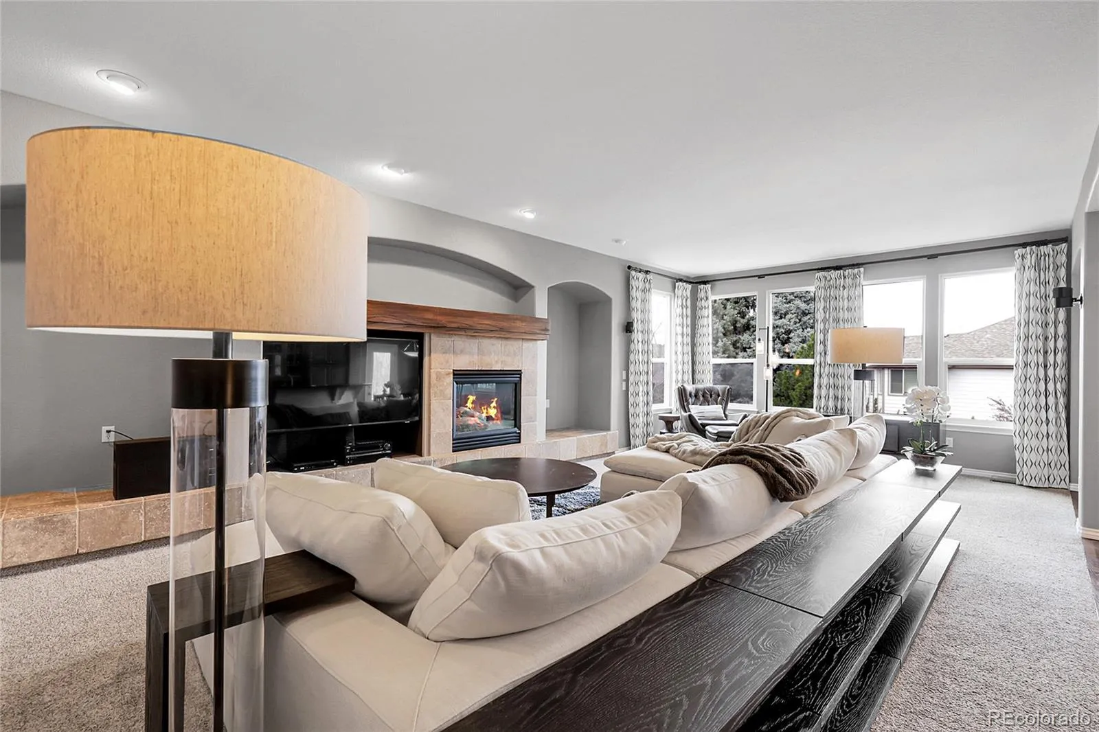 cozy gas fireplace, serves as an ideal gathering place. Completing this level are a powder bath and a mudroom with