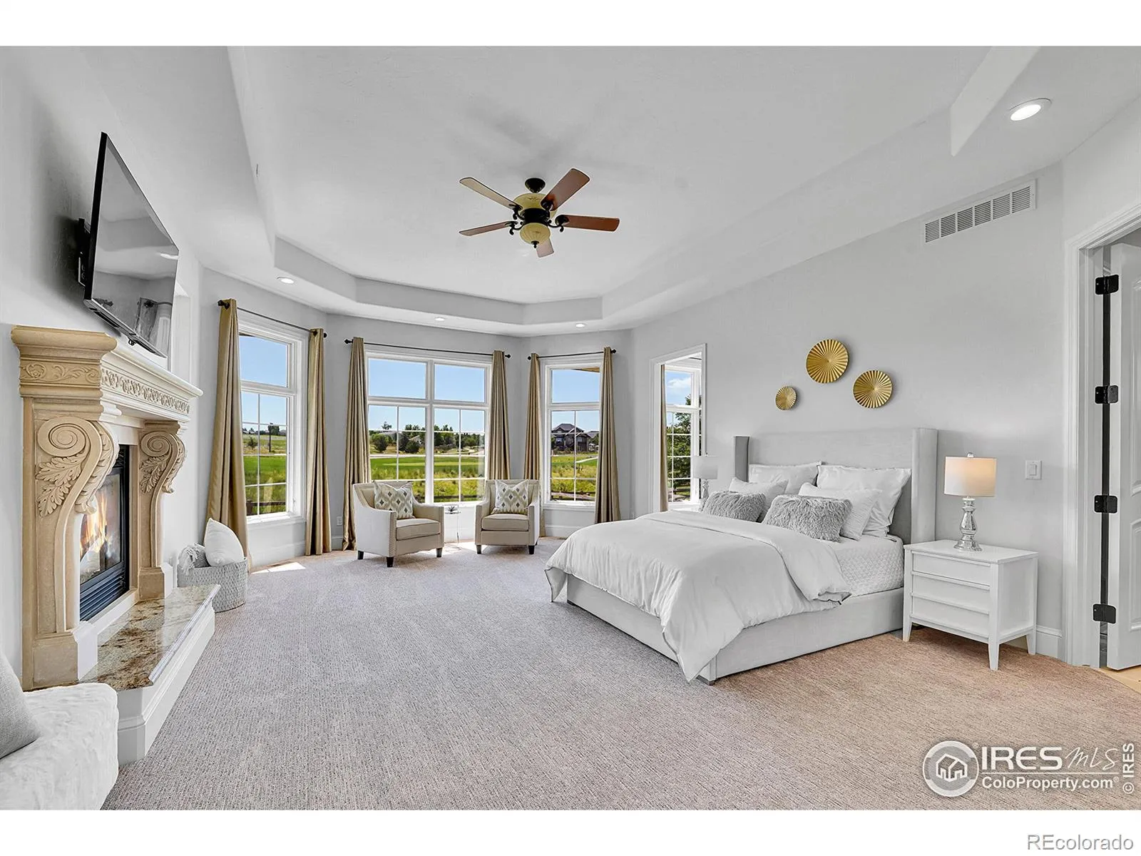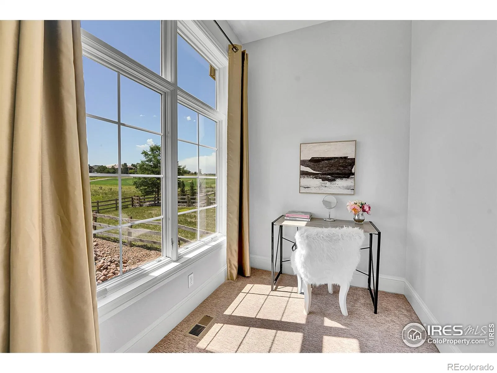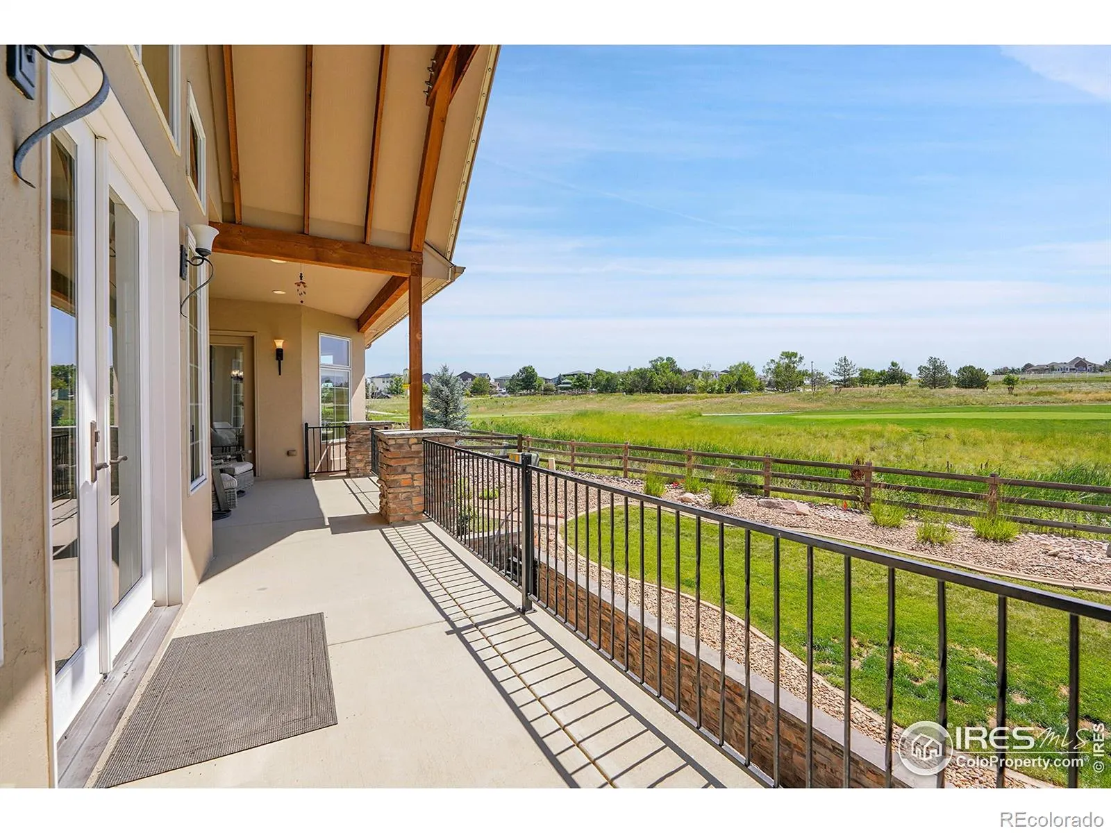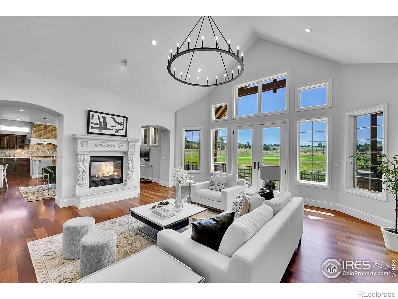Welcome to 2131 Drive Lane, a masterfully crafted custom ranch home nestled within the exclusive Enclave at Vista Ridge. Perched on the 4th tee box of the Colorado National Golf Course, this residence was thoughtfully designed to capture panoramic views in every direction-from tranquil horse ranches and pristine fairways to breathtaking, unobstructed mountain vistas. Step into a grand, sun-drenched living room where expansive windows invite the outdoors in, setting a dramatic backdrop to the refined interiors. A dual-sided fireplace anchors both the elegant living space and the warm, inviting family room-perfectly adjoining the chef’s kitchen, which features a generous center island, charming breakfast nook, and a spacious walk-in pantry. The luxurious primary suite is a true retreat, complete with its own fireplace, an intimate reading nook, and a lavish 5-piece bath boasting dual vanities, a jetted soaking tub, and two walk-in closets. A second main-level bedroom-ideal as a guest room or office-offers serene mountain views and opens onto a private front patio. The expansive, walk-out basement is ideal for multi-generational living, with a stylish kitchenette, three additional bedrooms and three bathrooms. A flexible bonus space offers endless possibilities for a gym, studio, or additional office. Enjoy seamless indoor-outdoor living with two covered patios that invite alfresco dining and sunset lounging. Don’t miss the vintage golf cart, included with the property! Located in the vibrant Vista Ridge community, you’ll have access to premier amenities including a pool, clubhouse, scenic trails, and lush parks.