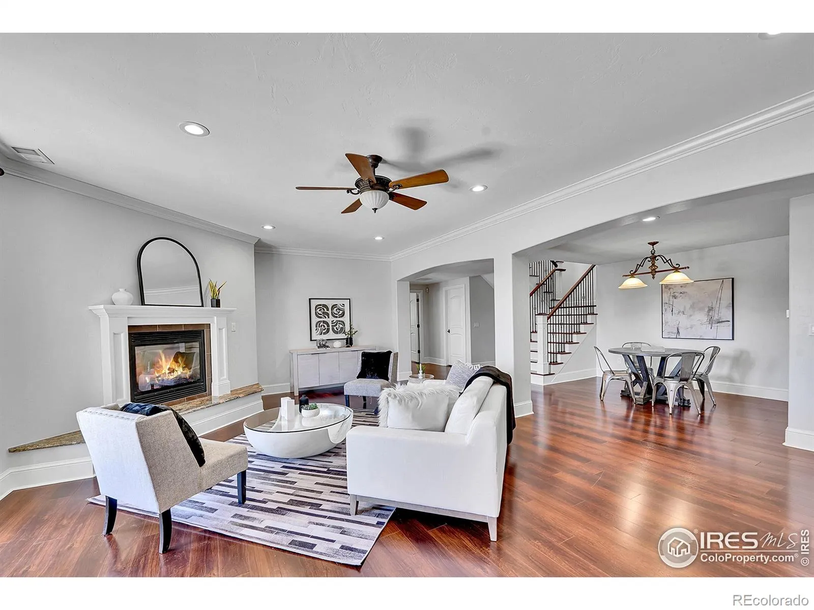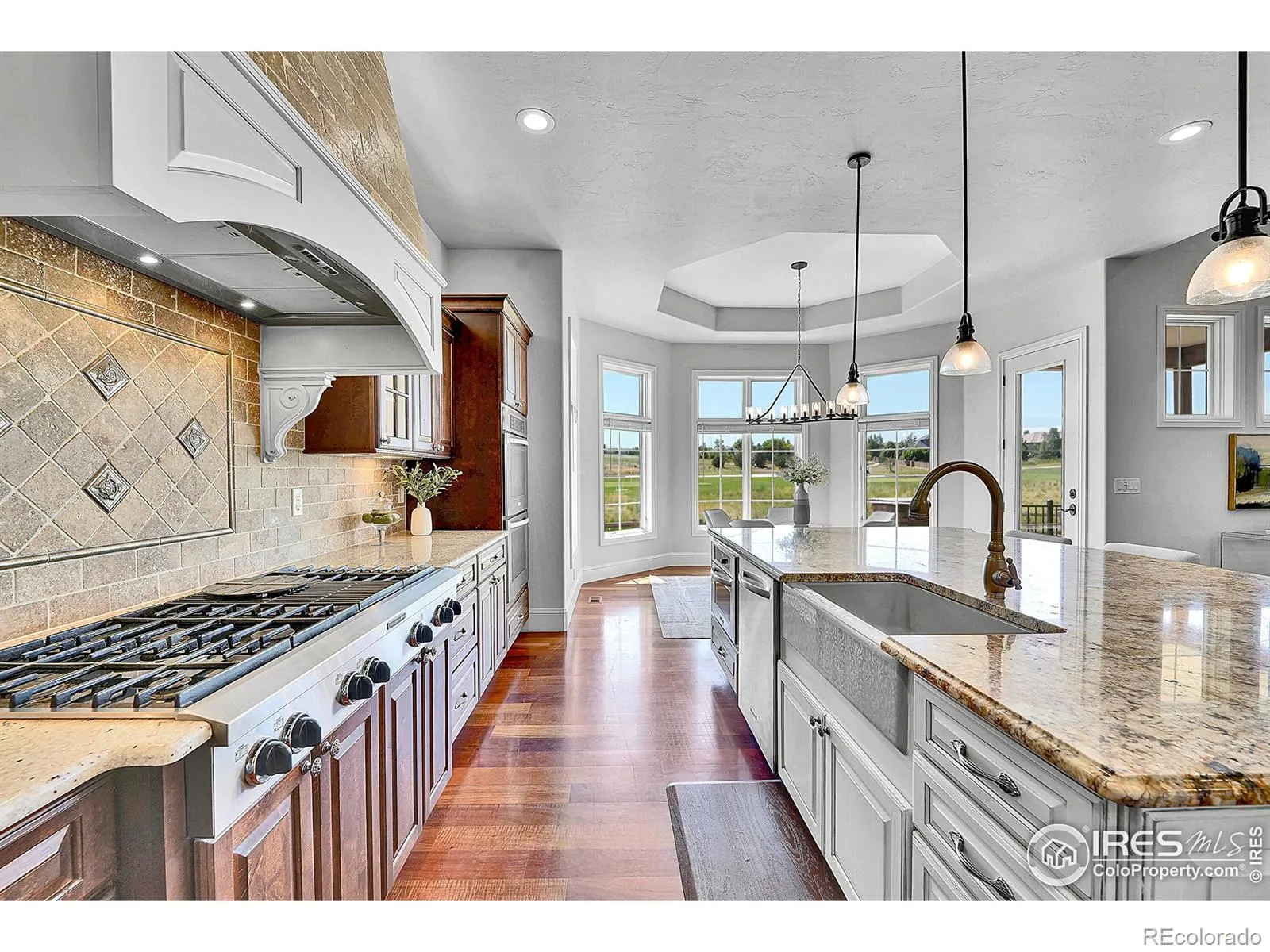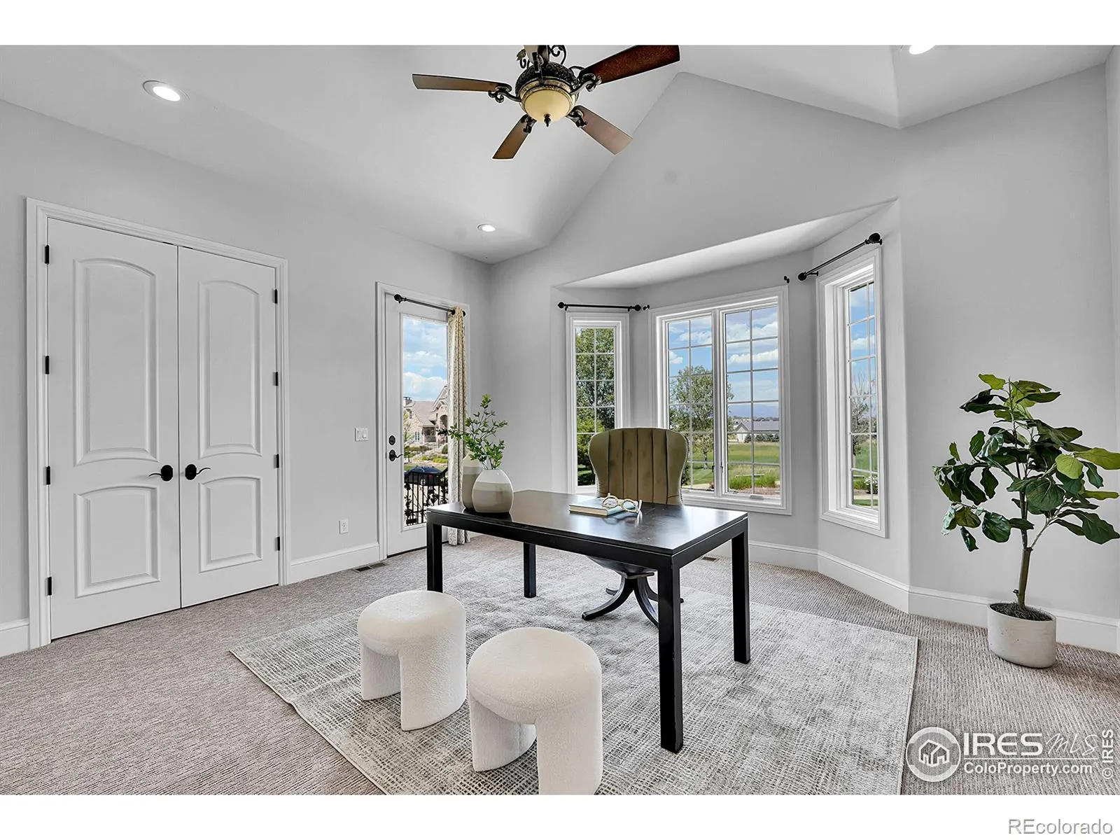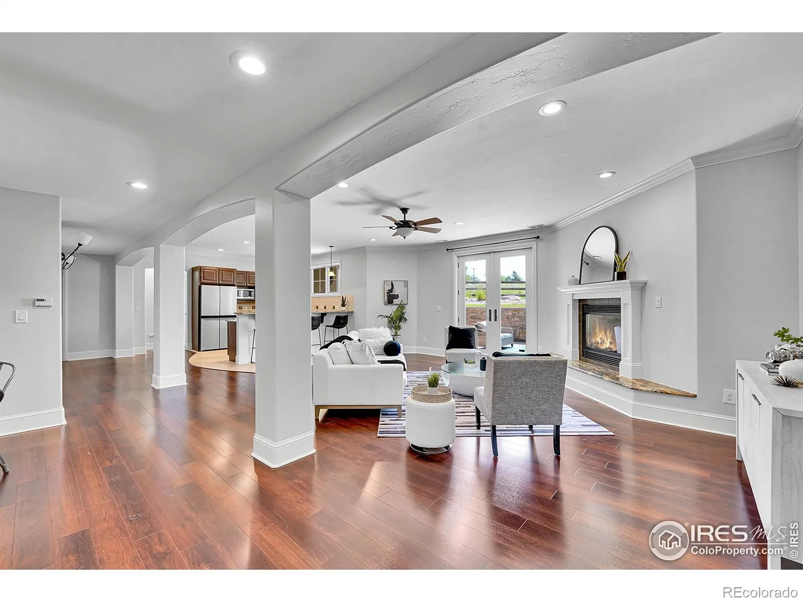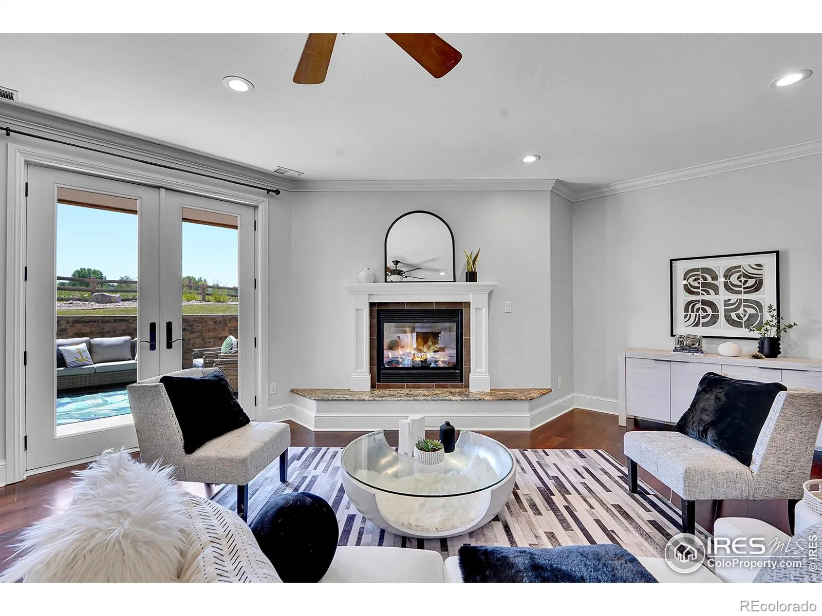 Welcome to 2131 Drive Lane, a masterfully crafted custom ranch home nestled within the exclusive Enclave at Vista Ridge. Perched on the 4th tee box of the Colorado National Golf Course, this residence was thoughtfully designed to capture panoramic views in every direction-from tranquil horse ranches and pristine fairways to breathtaking, unobstructed mountain vistas. Step into a grand, sun-drenched living room where expansive windows invite the outdoors in, setting a dramatic backdrop to the refined interiors. A dual-sided fireplace anchors both the elegant living space and the warm, inviting family room-perfectly adjoining the chef’s kitchen, which features a generous center island, charming breakfast nook, and a spacious walk-in pantry. The luxurious primary suite is a true retreat, complete with its own fireplace, an intimate reading nook, and a lavish 5-piece bath boasting dual vanities, a jetted soaking tub, and two walk-in closets. A second main-level bedroom-ideal as a guest room or office-offers serene mountain views and opens onto a private front patio. The expansive, walk-out basement is ideal for multi-generational living, with a stylish kitchenette, three additional bedrooms and three bathrooms. A flexible bonus space offers endless possibilities for a gym, studio, or additional office. Enjoy seamless indoor-outdoor living with two covered patios that invite alfresco dining and sunset lounging. Don’t miss the vintage golf cart, included with the property! Located in the vibrant Vista Ridge community, you’ll have access to premier amenities including a pool, clubhouse, scenic trails, and lush parks.
