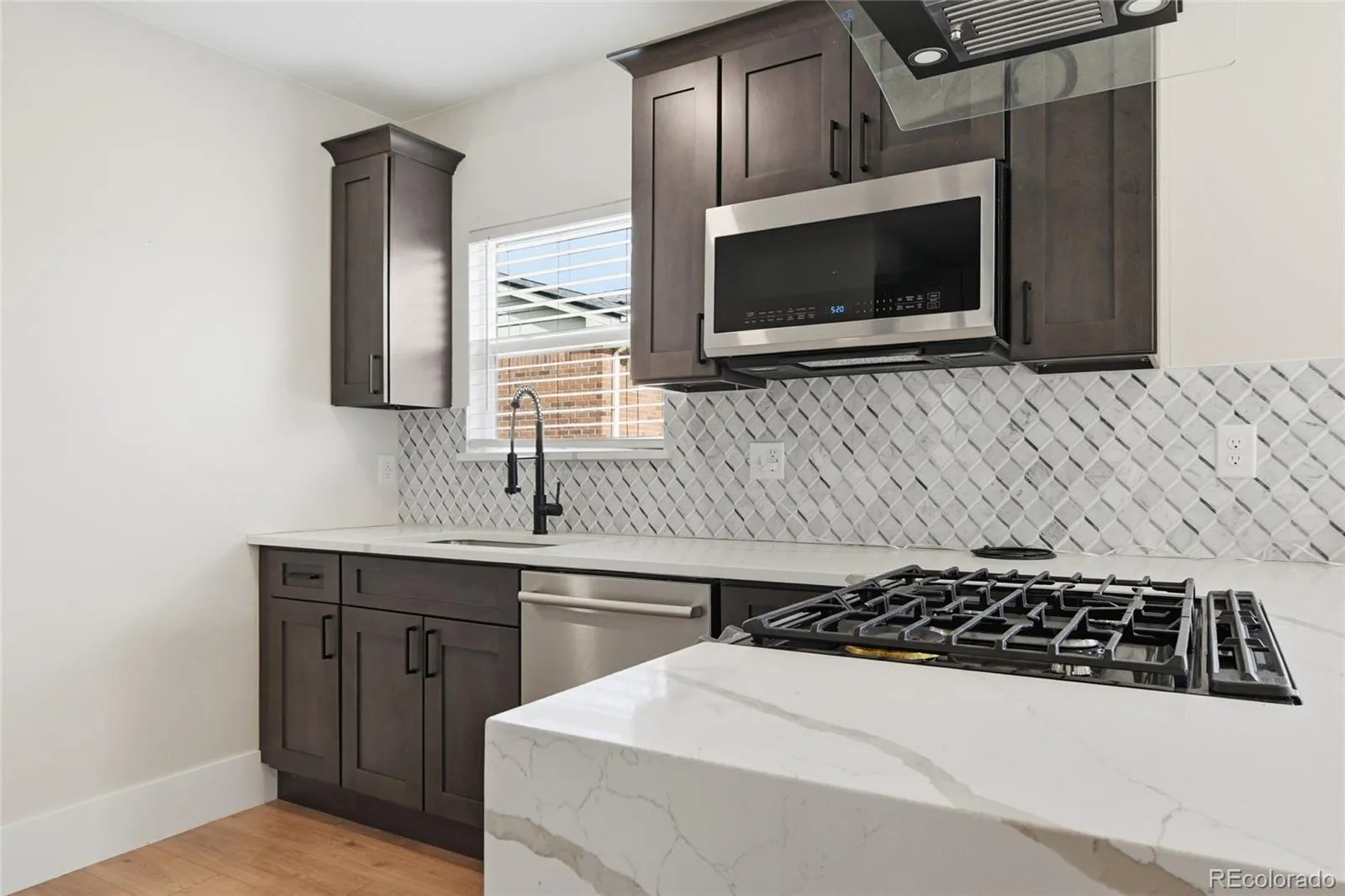 This updated single-family home features a custom kitchen with waterfall granite countertops, stainless steel appliances, and new cabinetry—ideal for entertaining and daily living. New flooring throughout and remodeled bathroom, fresh interior and exterior paint, and a tankless water heater deliver comfort, efficiency, and modern style.