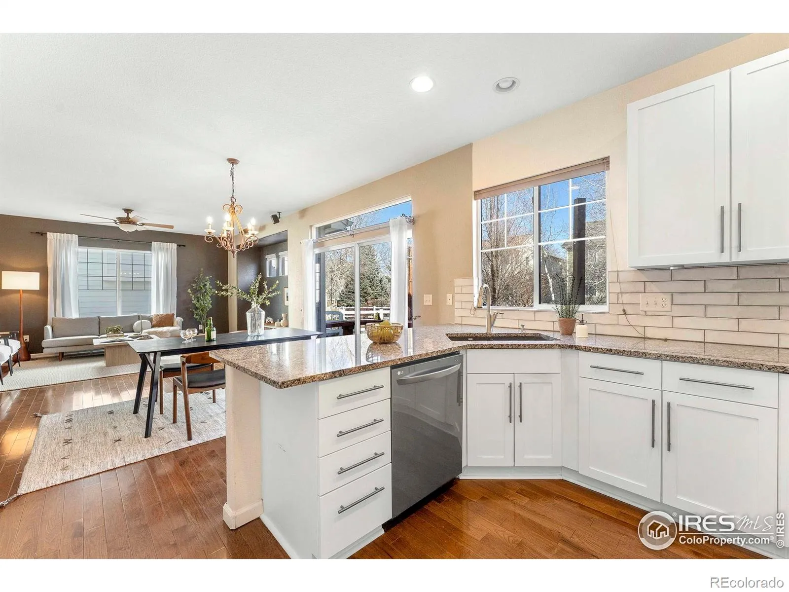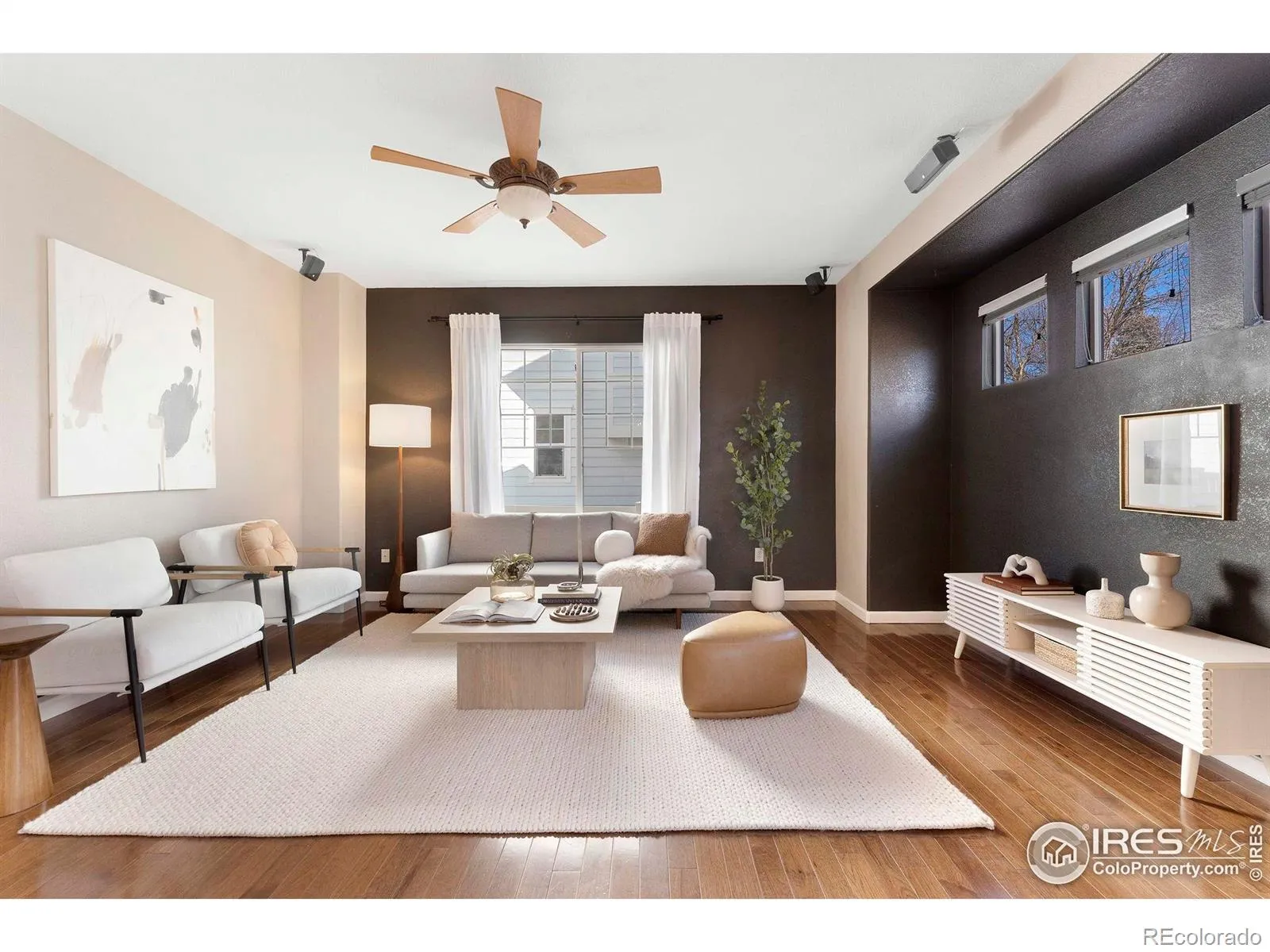 Hoping to find a place in SW Longmont to call your own? We’ve got just what you are looking for. This charming home in the coveted Renaissance neighborhood is filled with natural light and features an open floor plan, 9-ft ceilings, and hardwood floors on the main level. The beautiful remodeled kitchen has on-trend white cabinets, granite countertops, a peninsula with seating, a dedicated pantry, and stainless steel appliances. Sliding glass doors provide wonderful indoor/outdoor access and open the home onto a spacious deck that flows into a manicured backyard with mature trees. Upstairs you will find a huge primary suite with attached 5-piece bath, complete with soaking tub and walk-in closet, as well as two generously sized secondary bedrooms. Down below, the unfinished basement has multiple egress windows and is ready for your personal vision. Finally, newer dual HVAC systems, a new roof in 2024, and new exterior paint in 2025 complete the picture. Come see this delightful home located in a truly special neighborhood that incudes multiple parks, walking paths, and highly rated public schools as well as convenient access to Boulder, shopping/restaurants, and the mountains to the west.