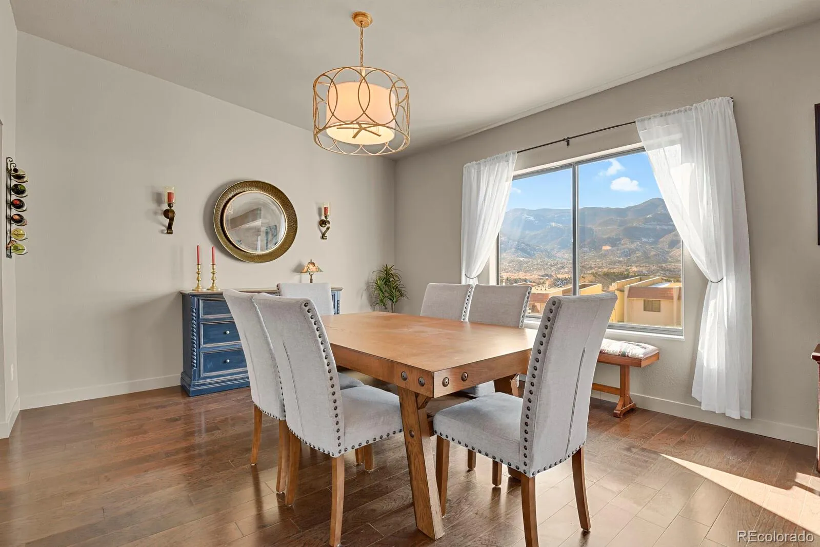 Spectacular breathtaking views of Pikes Peak & Garden of the Gods, right from your living and dining room!! Welcome home to this immaculate 2-bedroom, 2-bath condo offering 1,509 sq ft of stylish, living in the highly desirable, gated Villa Sierra community on the west side. This beautiful home has vaulted ceilings throughout that add a spacious, airy feel, while engineered hardwood floors bring a natural texture and warmth to the living areas and bedrooms. This home blends with modern updates such as a brand new electric Davinci GreenSmart fireplace insert with heat and polished finishes, along with modern lighting and ceiling fans throughout. The kitchen features stainless steel appliances and newer quartz countertops, perfectly complemented by updated quartz surfaces and new hardware in both bathrooms. Enjoy the custom-fitted laundry area with a new washer/dryer, more updates include a newer water heater, and built-in shelving. Enjoy an extra long 1 car detached garage, balcony storage closet and other surprises that are sure to delight you. Indulge in resort-style living with access to immaculate maintained grounds, boasting amenities such as a swimming pool, clubhouse, and pickle ball courts. Prime location near Cheyenne Mountain Zoo, RedRock Canyon, Old Colorado City, and numerous hiking trails. A Perfect Blend of comfort, convenience, and Colorado lifestyle!!