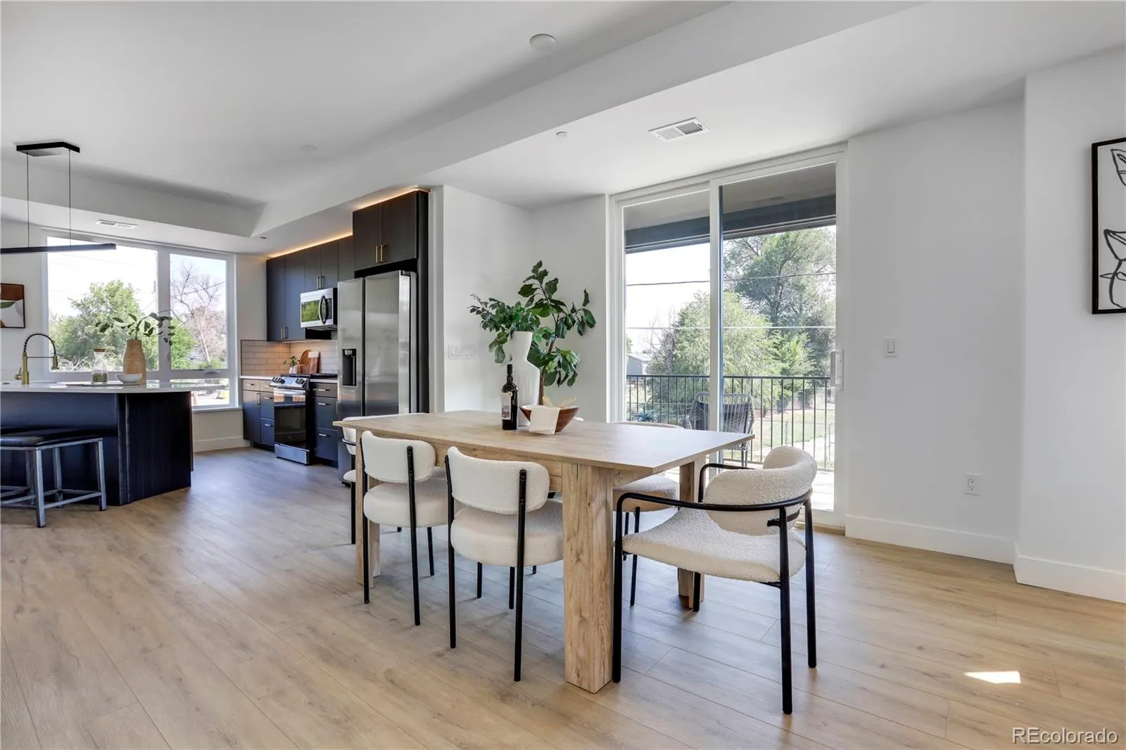 This is one of the END UNIT Townhomes with 2 balconies off the main floor and a larger corner fully fenced in private yard plus many more windows! The main floor features a large living and dining area perfect for relaxing or entertaining guests. The gourmet eat-in kitchen is equipped with high-end finishes, custom cabinetry, quartz countertops, stainless steel appliances, farmhouse sink and a generous island . The dining area will comfortably seat 6-8, and the living room is so large the layout possibilities are endless.